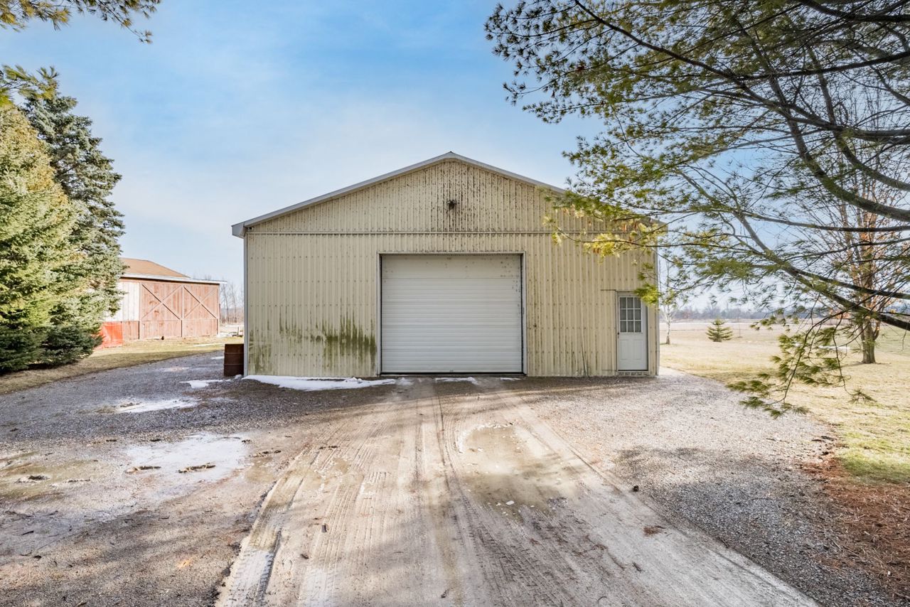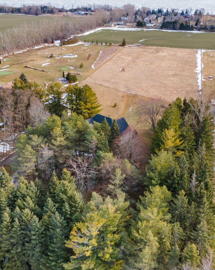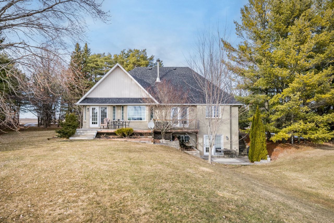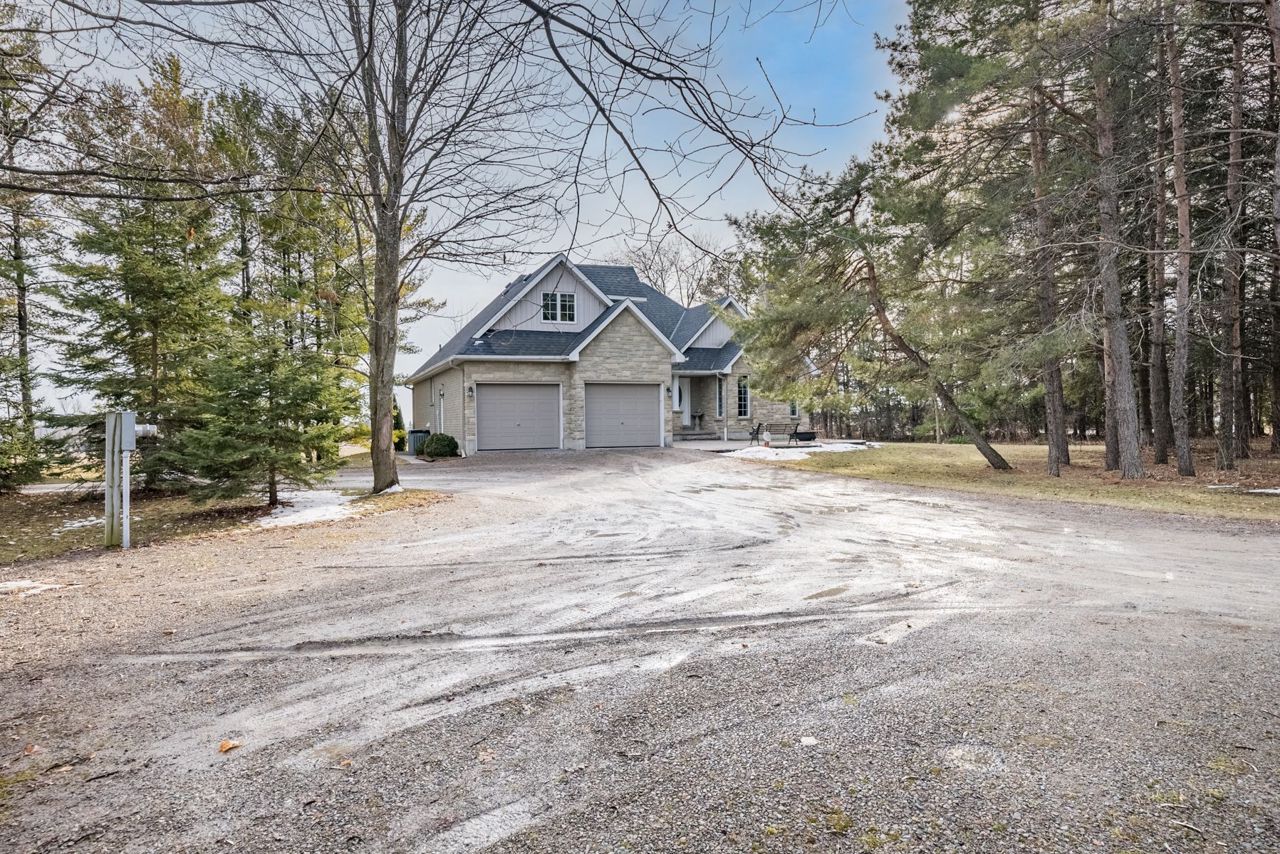 In-Law Suite; Bungaloft; Detached Workshop! Steps to Lake Scugog with a Great View! 5 acres! An outstanding custom built bungaloft on 5 acres overlooking Lake Scugog on a hard top road! An accommodating floor plan with hardwood floors throughout, updated open concept kitchen & eating area open to living room with woodstove insert with b/i cabinets/shelves; dining room, main floor primary bedroom, 2nd bedroom and laundry room with direct entry to garage; crown molding in principal rooms; great views to the lake; 3rd bedroom in loft; rec room & 4th BR/office in basement with 1 bedroom in-law apartment with w/o to rear yard & w/up to garage; Plus a 34' x 40'shop with concrete floor, electricity, water & 12' ceilings; partially insulated;Current owner had this home custom built in 2001;updates include:roof shingles in 2020 w/35 yr fibreglass shingles;FA propane furnace +/- 6-7 yrs; insulation added in attic 2023;200 amp elec breakers w/100 amp in shop;220 v at house garage
