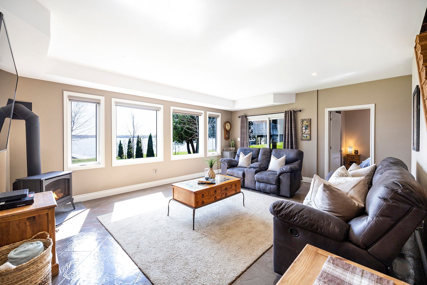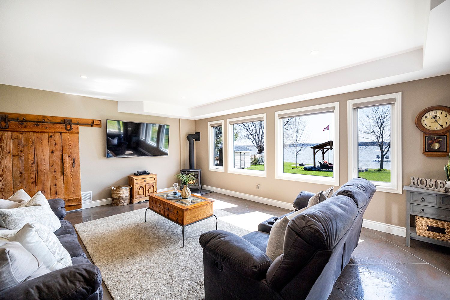 Lake Scugog Live The Dream! Work, Play, Boat & Fish On The Trent System! Custom Built 2015 Executive Craftsman-Style Waterfront Home/Cottage. No Details Overlooked In This Quality Built Home Featuring Vaulted Ceilings In The Open Concept Living Room W/ Floor To Ceiling Windows For Sensational Lake Vistas, Granite-Stone Gas Fireplace & 8" Distressed Oak Hardwood Floors. Office Loft Overlooks Living Rm. Dining Rm W/ Walk-Out To Covered Deck. Kitchen W/Soft Close Custom Cabinets and Leathered Granite Counters and Centre Island. Primary Bedroom Overlooks the Lake With En-Suite & Walk-in Closet. Main floor Laundry.Lower Level features Recreation Room with Walk-out Sliding Doors To The Covered Patio & Lake, 3 Additional Bedrooms & 4 Pc Bathroom. 2.5 Car Garage. 60' Dock. Gradual Walk-In Swimmable Shoreline. Approx 1 Hr To Gta, Markham, Thornhill