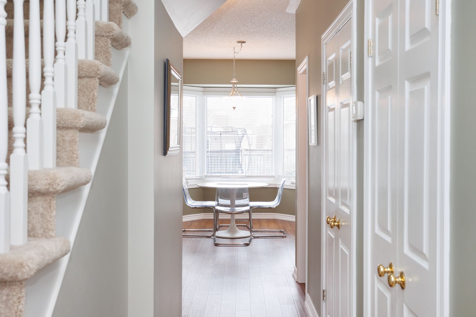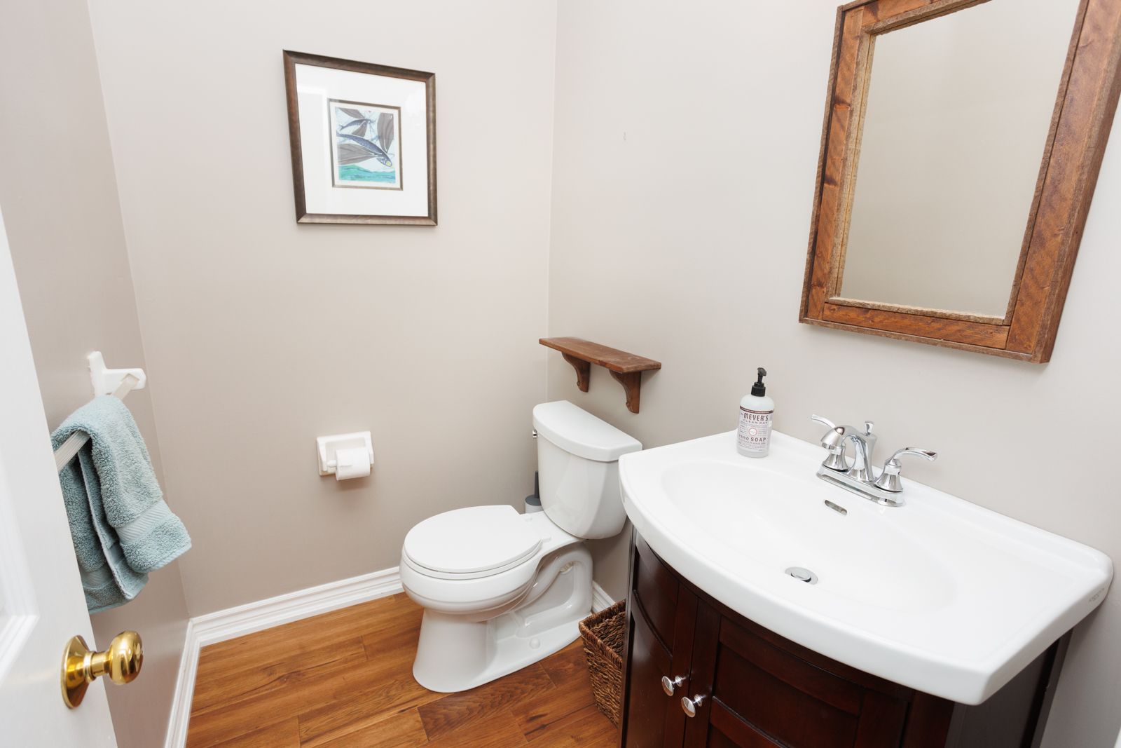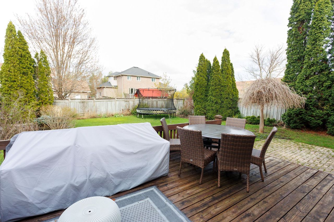 Meticulously Maintained 2 Storey Home Welcomes You With Long Interlocking Driveway, 2 Car Garage, Landscaping & Brand New Front Door. Bright & Spacious Main Level W/Luxury Engineered Hardwood Flooring Throughout. Foyer Features 3 Closets Plus Powder Room. Eat-In Kitchen Boasts Quartz Countertops, Ss Appliances, Plenty Of Cupboard Space, Bay Window & Built-In Work Station. Family Room W/Stone Fireplace & W/O To Fully Fenced Backyard W/Deck, Gardens & Natural Gas Bbq Hook-Up. Formal Living/Dining W/Tons Of Natural Light & Space To Entertain. Staircase To Upper Level Is Well Illuminated W/Sizeable Skylight. Primary Bdrm W/Spacious W/I Closet & 4Pc Ensuite W/Additional Skylight. Down The Hall Are 3 More Bdrms W/Closets, Along W/Another 4Pc Bth. Bsmt Features Laundry Area & Cold Cellar. Blank Canvas For An Incredible Rec Room/Additional Living Space W/Plumbing Roughed In For Additional Bth. Electrical Roughed In For Recessed Lighting. Situated Close To Parks, Trails, Schools & Shopping!