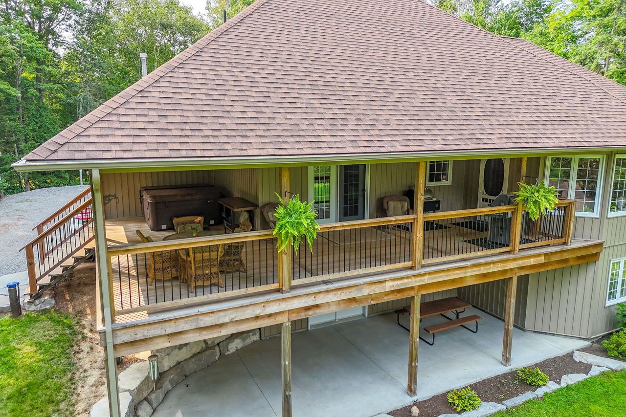 Welcome home to the highly sought after Black Bear Estates. This custom-built bungalow offers an idyllic waterfront lifestyle on the serene Black Bear Pond, with direct access to the renowned Trent Waterway system. Situated on over an acre this exquisite 3 bedroom & 3 bath home boasts an open floor plan with large windows that bathes the home in natural light, a well-appointed kitchen with a convenient breakfast bar & nook overlooking your large yard, water & greenspace opposite your shoreline. Off the kitchen opens onto your large deck where you can enjoy the serenity & luxury of your waterfront oasis while BBQing, enjoying a drink or embracing the relaxing waters of your covered hot tub! The primary bedroom, offering a spacious layout, walk-in closet, ensuite bathroom & double doors onto the back deck with a view. The lower level features a large bathroom, ample storage space, access to the garage & a walkout. The rec room possibilities are endless. Create an entertainment area, homegym, or a versatile space. Oversize 3 car garage, one bay heated with a separate entrance & multi-use car hoist. Black Bear Estates offers a serene & private setting. Don't miss your chance to own a piece of paradise!
