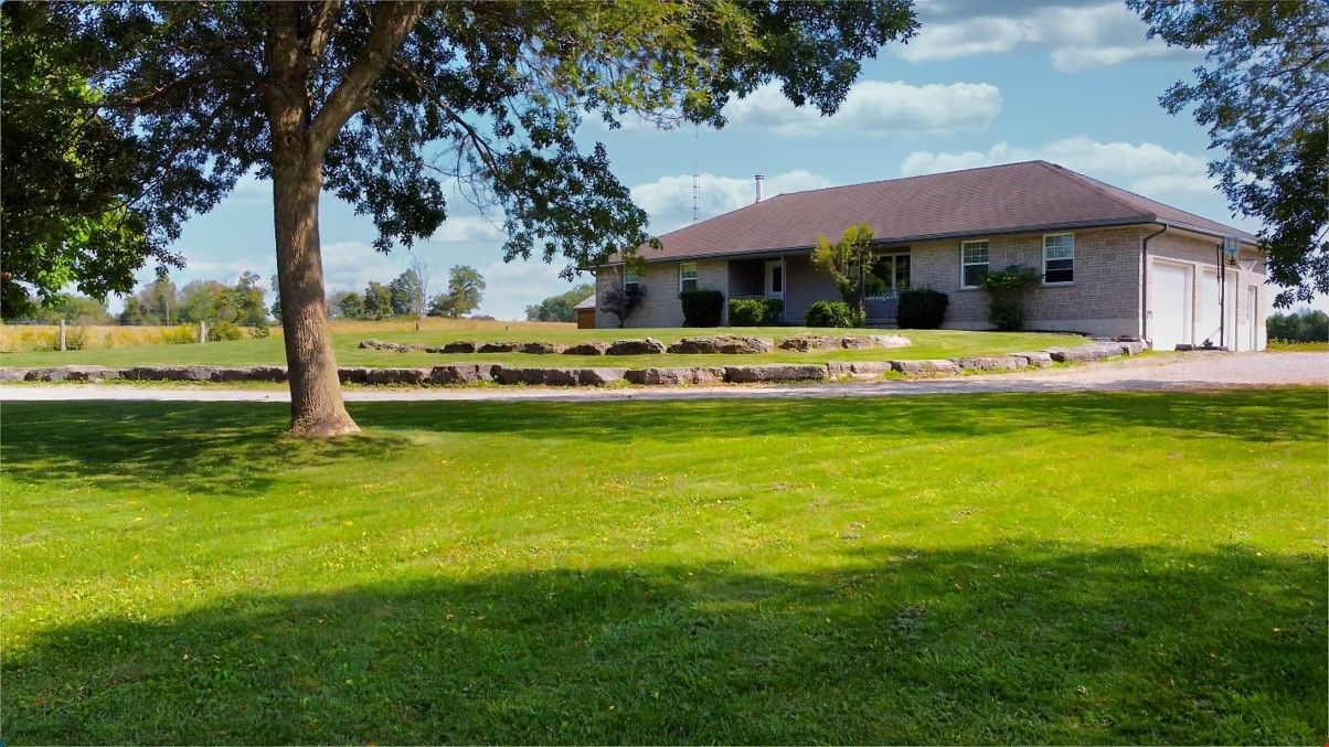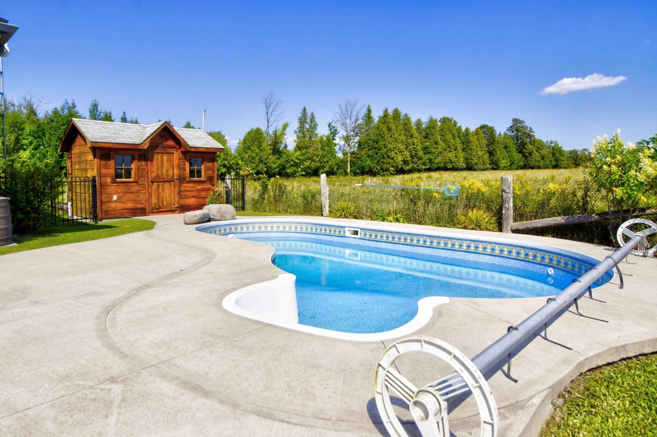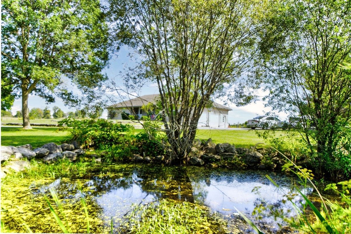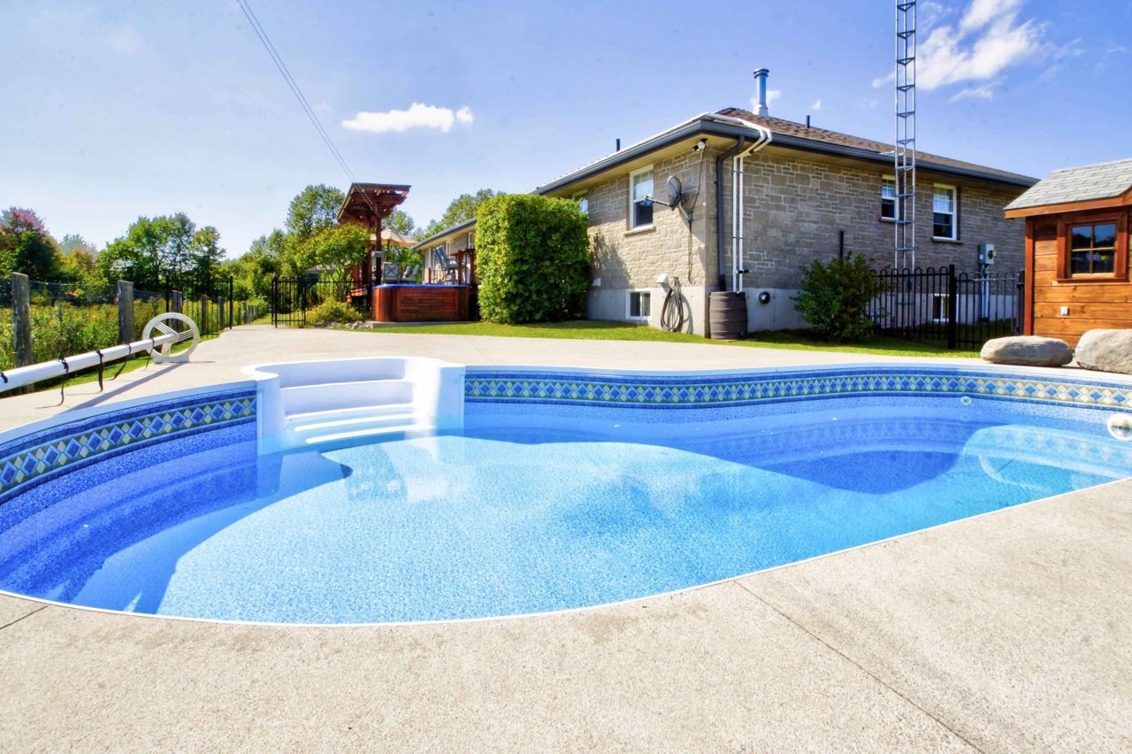 **Totally private 1.24 acre lot with mature trees and a scenic pond - surrounded by farm fields - great location - mins to Fenelon Falls & Lindsay**custom built home by respected local builder in 2001 - stone bungalow with fully finished bsmt* 3+ bdrms and 3 full baths* hardwood floors with vaulted ceiling - open concept* hand crafted cherry kitchen with center island with butcher block top and breakfast bar with walk-out to sun deck overlooking open farm land* sky lights* huge family rm with woodstove and bar* 26' Inground pool with 12'x 8' cabana* 43' sundeck* Extensive limestone landscaping plus 150' spring fed pond and mature evergreens* 2 garden sheds* Oversized attached garage measuring 33'x 21' with entry into house and separate entrance to finished basementRecently updated oil tank