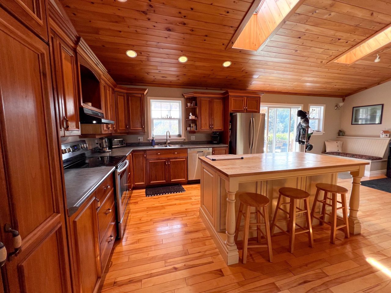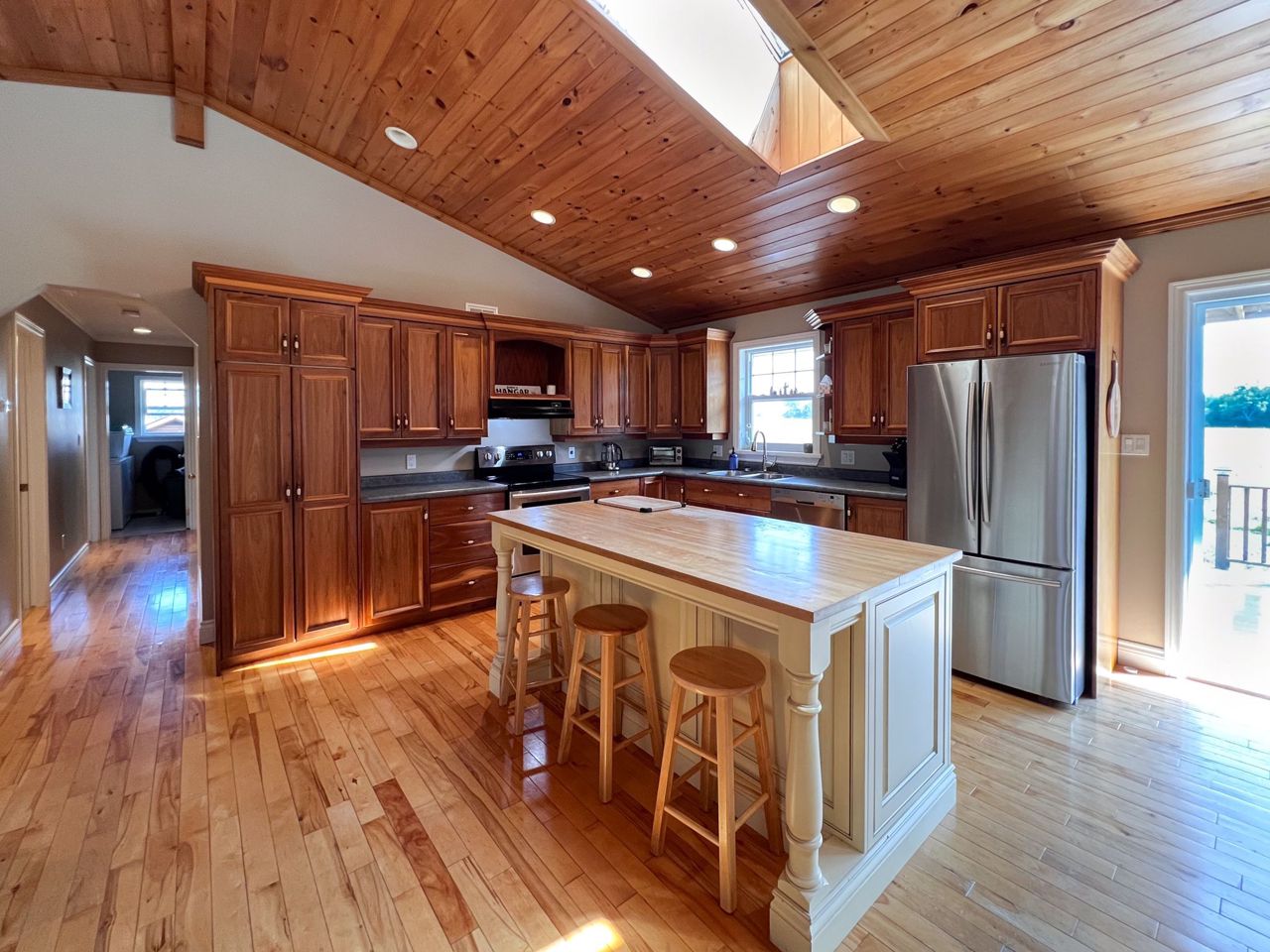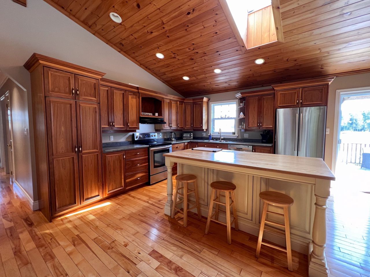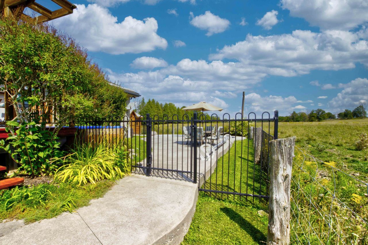 **Totally private 1.24 acre lot with mature trees and a scenic pond - surrounded by farm fields - great location - mins to Fenelon Falls & Lindsay**custom built home by respected local builder in 2001 - stone bungalow with fully finished bsmt* 3+ bdrms and 3 full baths* hardwood floors with vaulted ceiling - open concept* hand crafted cherry kitchen with center island with butcher block top and breakfast bar with walk-out to sun deck overlooking open farm land* sky lights* huge family rm with woodstove and bar* 26' Inground pool with 12'x 8' cabana* 43' sundeck* Extensive limestone landscaping plus 150' spring fed pond and mature evergreens* 2 garden sheds* Oversized attached garage measuring 33'x 21' with entry into house and separate entrance to finished basementRecently updated oil tank