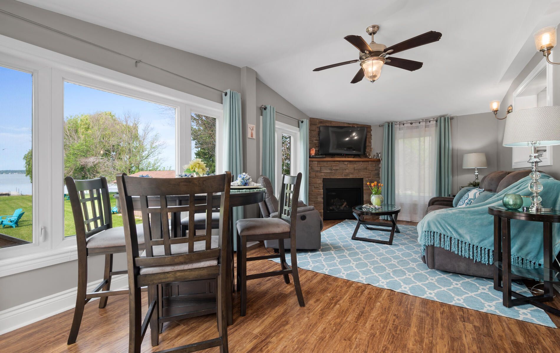 Welcome to Waterfront Living! Breathtaking Sunsets! Tranquil setting with east and west views of Lake Scugog. This beautiful bungalow sits on a little over 1/2 acre lot and provides you with 3 updated washrooms, 2 propane fireplaces for cozy nights/ambiance, updated kitchen with stainless steel appliances and walk-out to double car garage. A finished basement features new tiled flooring in laundry area, closet, linen closet for new washroom, and walk-up from rec room to spacious garage with high ceilings and new garage doors. As you walk the through family room sliding doors onto the large deck, you catch the stunning view of the spectacular waterfront at the end of the deep lot. You'll notice a drive through shed with electricity for all your toys, she-shed or man-cave. . Come to see this Move-in Ready Home that offers you serenity, a place to invite your friends for a BBQ, and a dock to do some fishing.20 - 25 minutes to Port Perry or Lindsay for all your conveniences.1