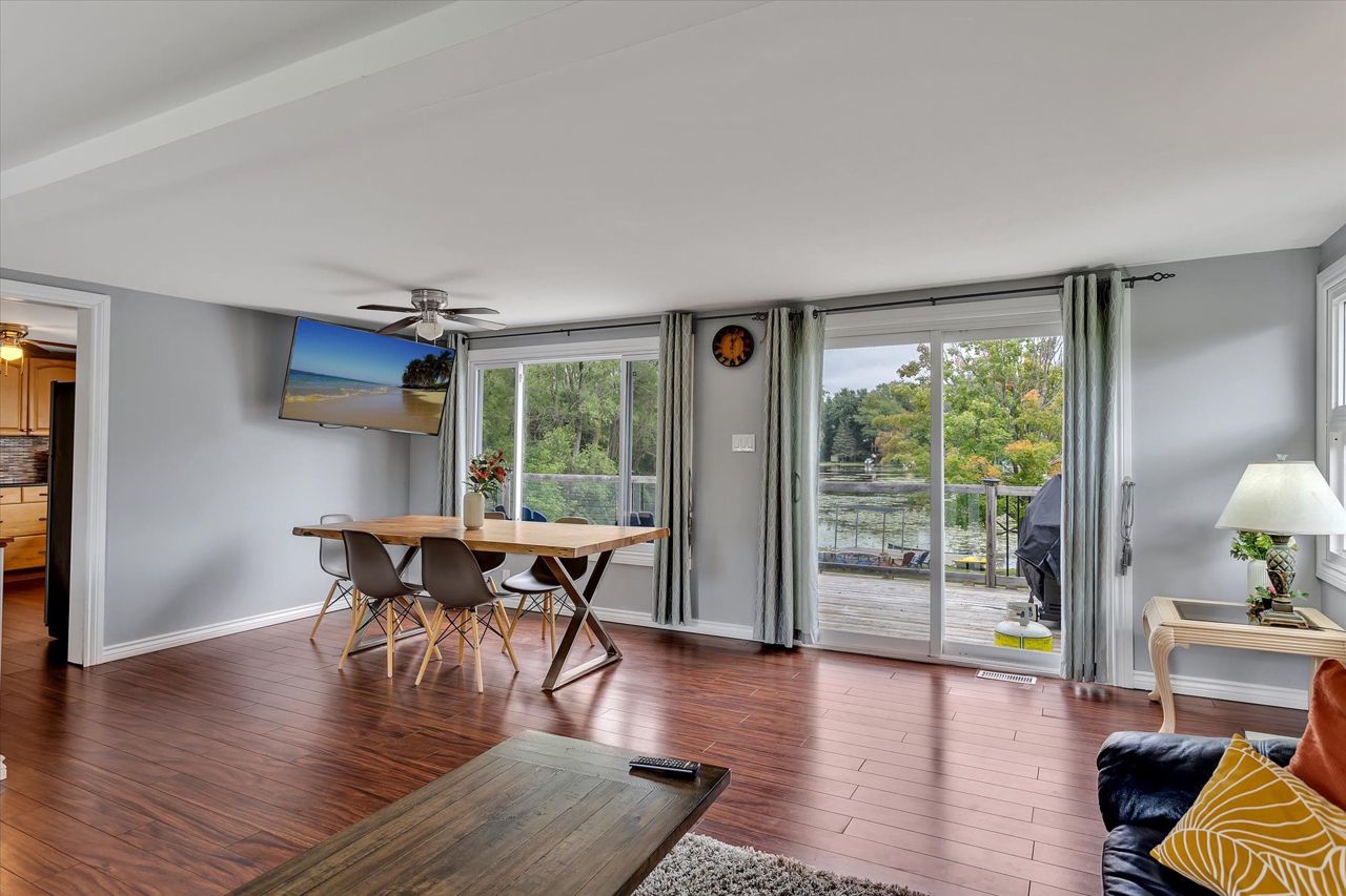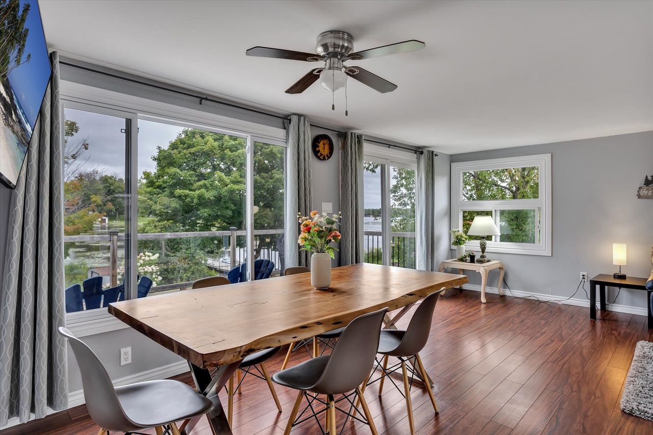 Chemong Lake waterfront home with easy access to Highway 115 for commuters. This home is bright and airy and offers views of the waterfront from most rooms. A raised bungalow with a full walkout basement the house features 4 bedrooms ( 2 on each level), Bright living and dining area with walkout to the large deck. Full ty finished lower level with 2 bedrooms, extra bath, rec room with walkout to covered patio. Large yard with a stone firepit and docking at the waterfront. Natural gas heat, steel roof, ample parking. Neat and clean and ready to move in.