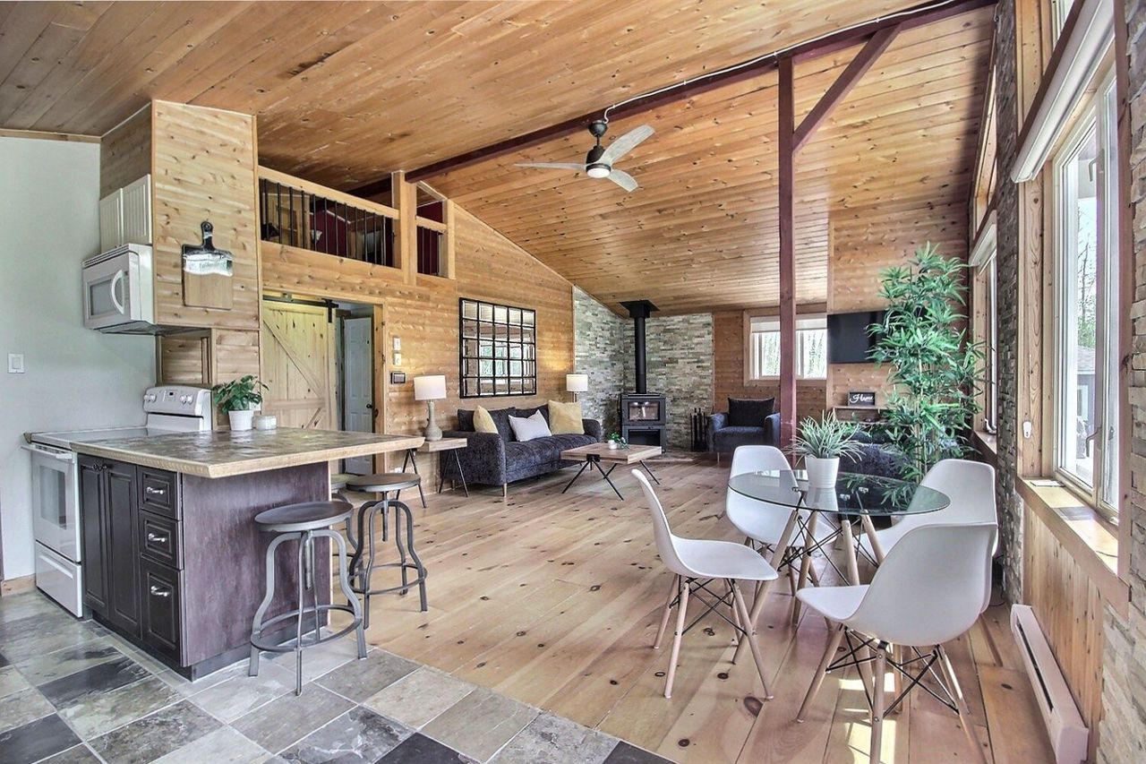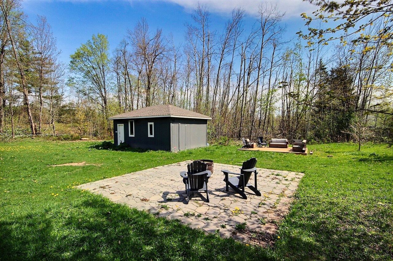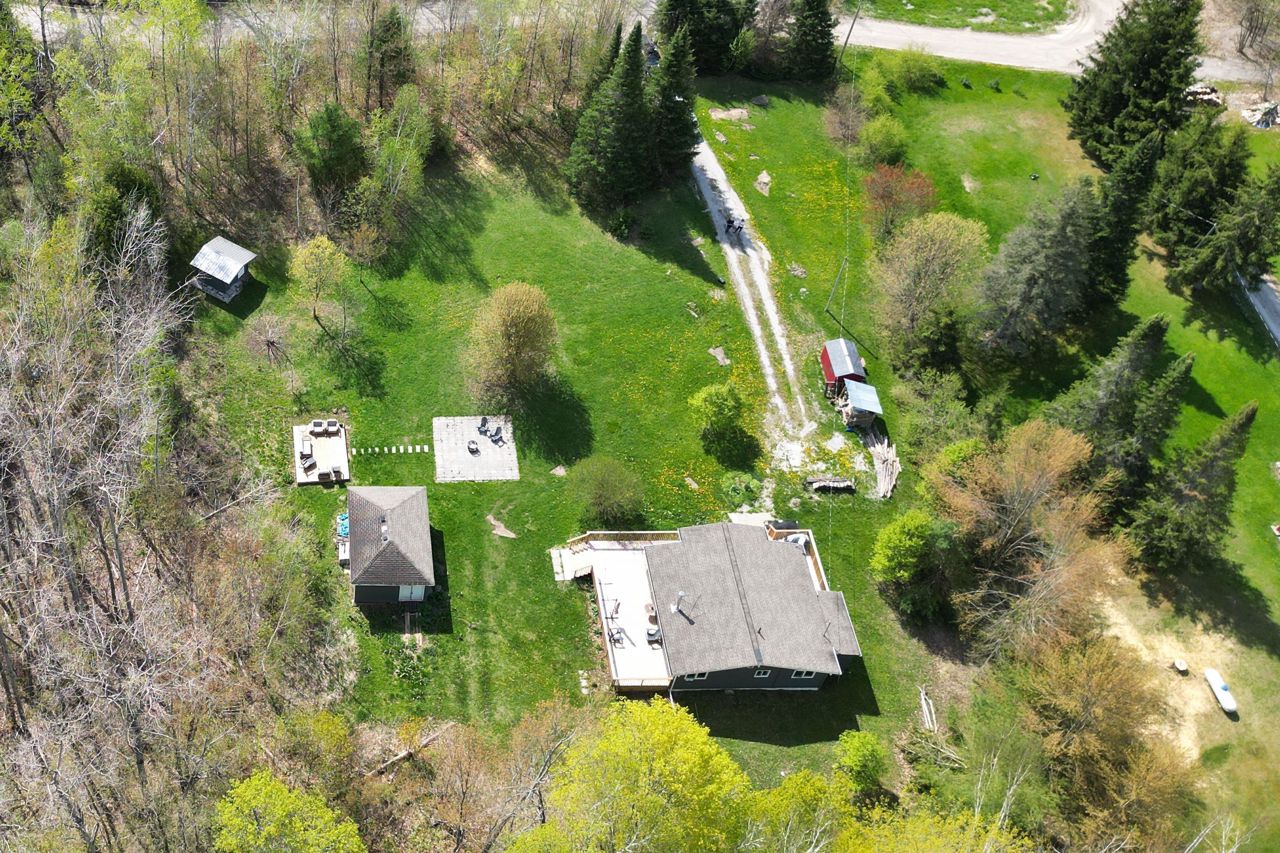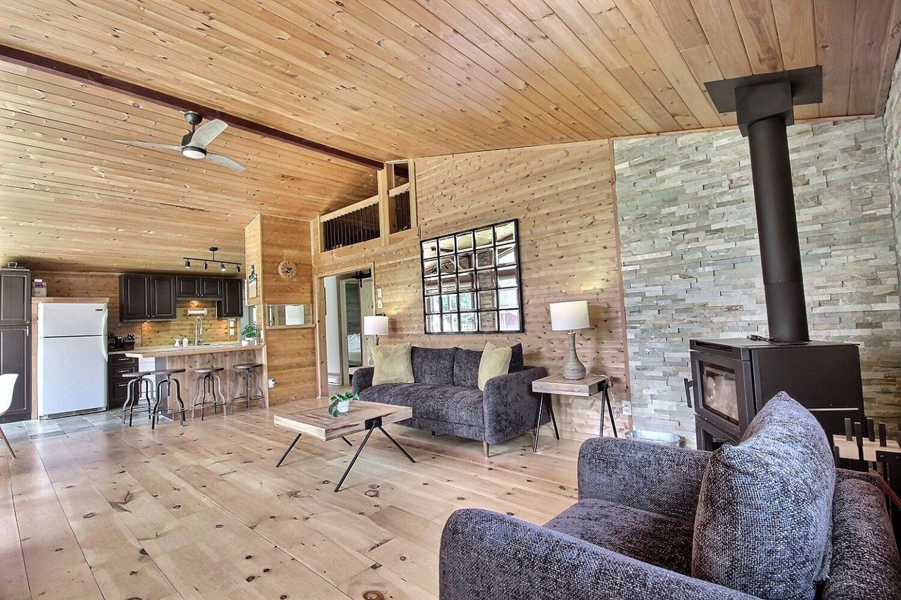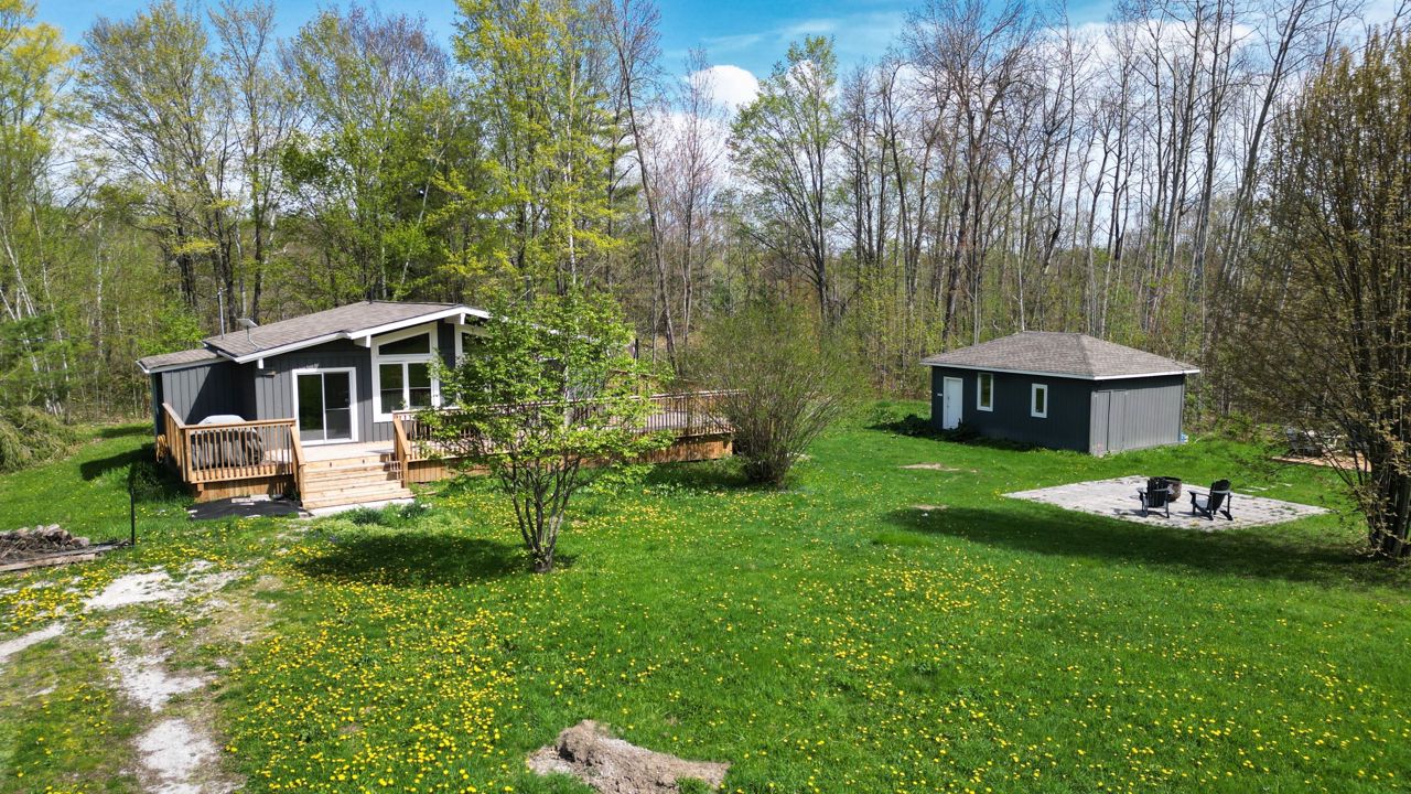 This fabulous and cozy retreat offers tons of charm on over 2 acres of private land with 214 feet of river frontage. Inside, you'll love the cathedral ceilings, warm wood floors and walls, and an open-concept main living space perfect for gathering with family and guests. The kitchen comes fully equipped with modern conveniences, including a dishwasher, built-in microwave, pantry space, and durable slate floors and countertops. A wood stove adds ambiance and warmth on those chilly nights, while two bedrooms, a den, and a cute kids' loft ensure there's plenty of space for everyone. Outside, you'll have lots of room to relax and entertain on the massive deck, outdoor fire pit area, or hike along the shores of the Black River. The property also features a large 24 x 16 workshop for hobbies or storage. Enjoy deep water swimming and miles of boating, plus nearby snowmobile trails for winter fun. Conveniently located just 30 minutes from Orillia, this peaceful and well-maintained home is ready for you to move in and while you'll love the privacy, you'll also have the most incredible neighbours! New Bosch washer and dryer in 2023, new deck and side deck (by fire pit), new well pump in 2024, bathroom reno 2024, new bunkie (2024), new eavestroughs (2024), new wood burning fireplace (2021), new windows/blinds and front door (2022), new hot water tank (2022).