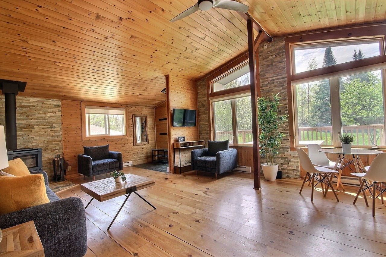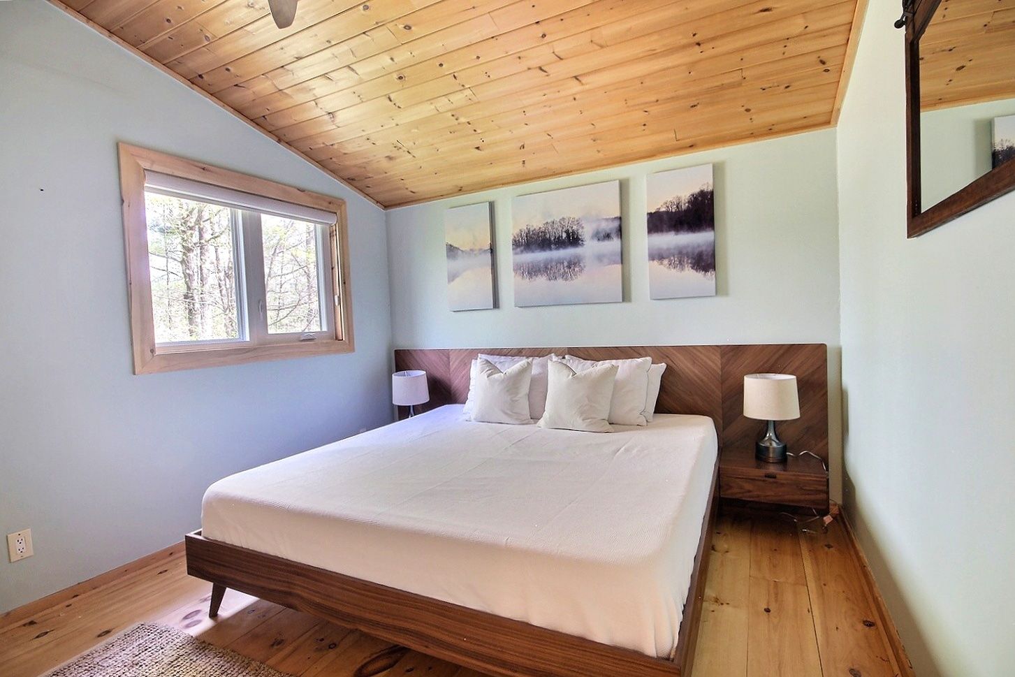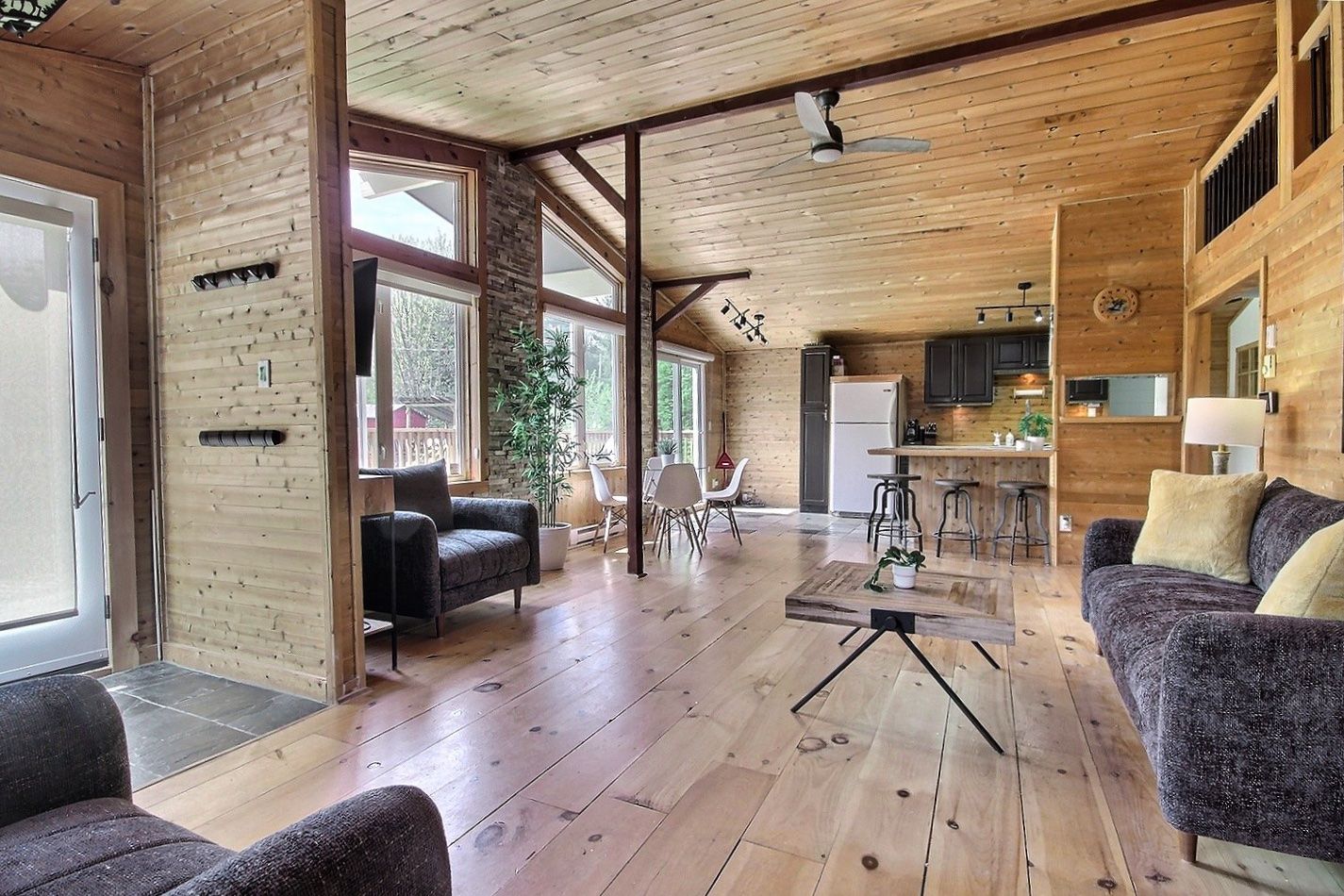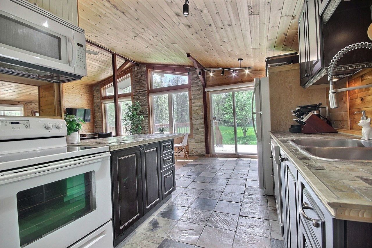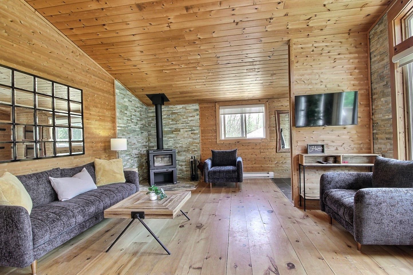 This fabulous and cozy retreat offers tons of charm on over 2 acres of private land with 214 feet of river frontage. Inside, you'll love the cathedral ceilings, warm wood floors and walls, and an open-concept main living space perfect for gathering with family and guests. The kitchen comes fully equipped with modern conveniences, including a dishwasher, built-in microwave, pantry space, and durable slate floors and countertops. A wood stove adds ambiance and warmth on those chilly nights, while two bedrooms, a den, and a cute kids' loft ensure there's plenty of space for everyone. Outside, you'll have lots of room to relax and entertain on the massive deck, outdoor fire pit area, or hike along the shores of the Black River. The property also features a large 24 x 16 workshop for hobbies or storage. Enjoy deep water swimming and miles of boating, plus nearby snowmobile trails for winter fun. Conveniently located just 30 minutes from Orillia, this peaceful and well-maintained home is ready for you to move in and while you'll love the privacy, you'll also have the most incredible neighbours! New Bosch washer and dryer in 2023, new deck and side deck (by fire pit), new well pump in 2024, bathroom reno 2024, new bunkie (2024), new eavestroughs (2024), new wood burning fireplace (2021), new windows/blinds and front door (2022), new hot water tank (2022).