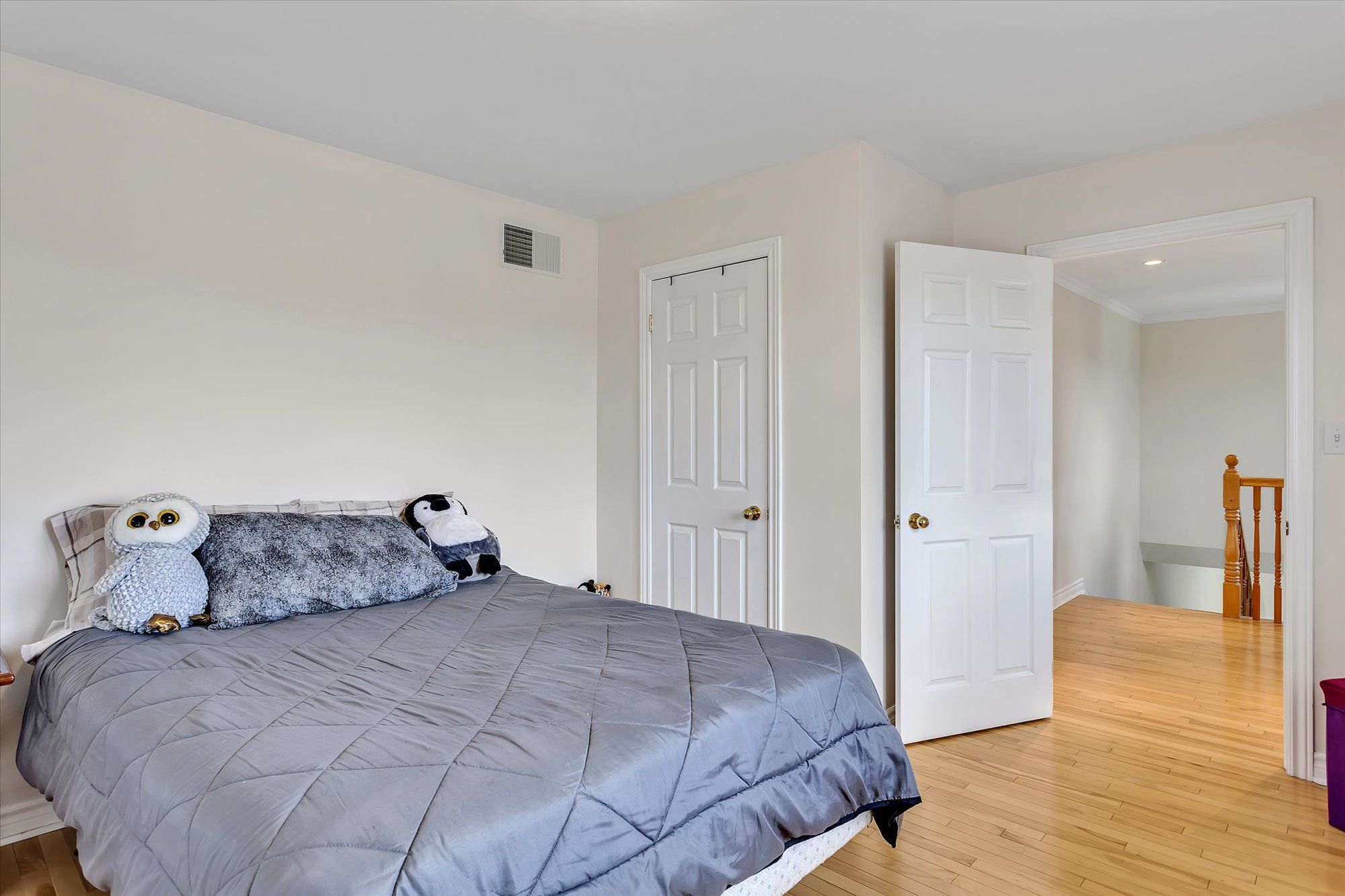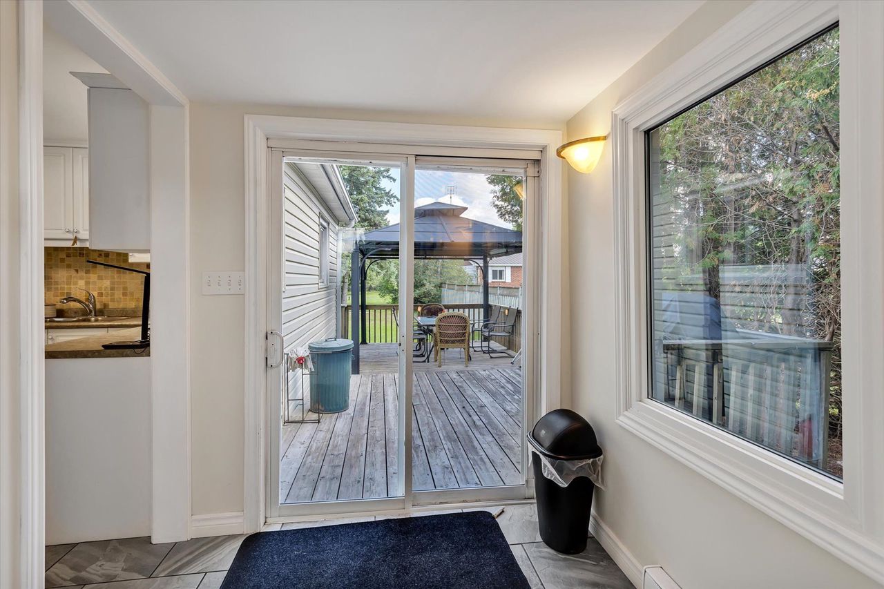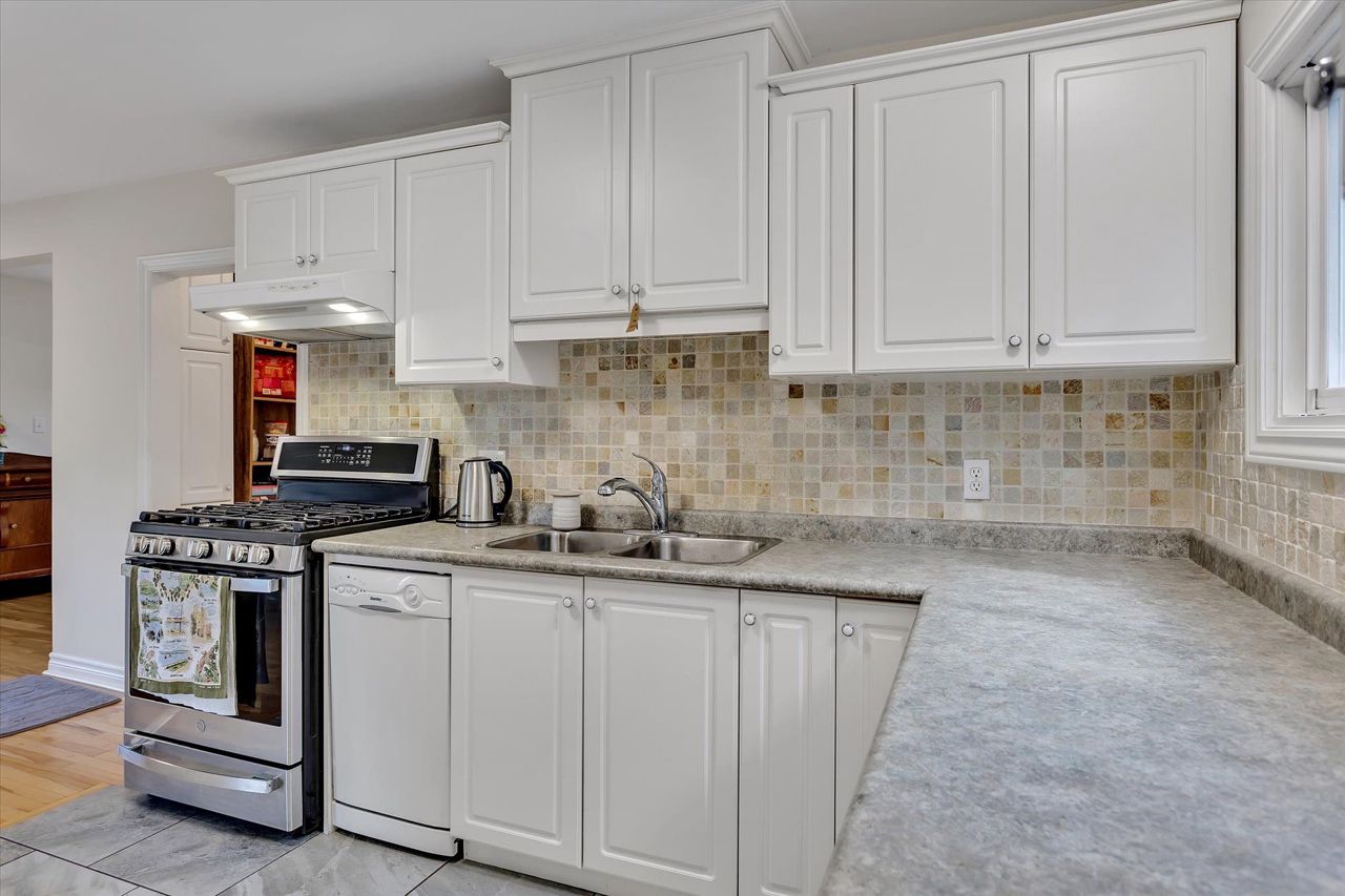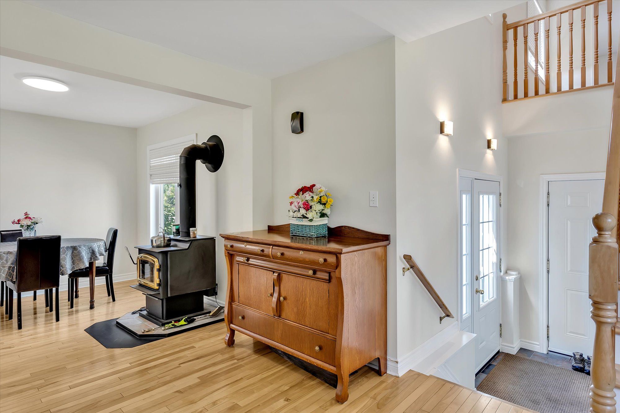Escape the ordinary and embrace country living in this well appointed bungaloft nestled on over an acre, surrounded by farm fields. With direct highway exposure, this property offers both serenity and convenience for the commuter who can park in the heated oversized double garage. As you step inside, a beautiful foyer guides you to an immense primary suite that redefines luxury. Pamper yourself in the private ensuite featuring an air tub, glass shower and 2 walk-in closets, storage should never be a concern. The updated kitchen boasts ample cupboards and counter space, catering to the needs of any culinary enthusiast. The large, open concept kitchen and dining area also features a cozy wood stove to curl up by. The living room is thoughtfully designed with a built-in bookshelf, combining functionality and style. A sunroom beckons, offering a seamless connection to the outdoors and leading to a deck where you can savor the views of your landscaped lot, complete with stamped walkway.A fully finished detached workshop stands ready to be you. Updated windows, roof, furnace, central air, baths, kitchen, doors, wiring, plumbing, flooring the list goes on and on.