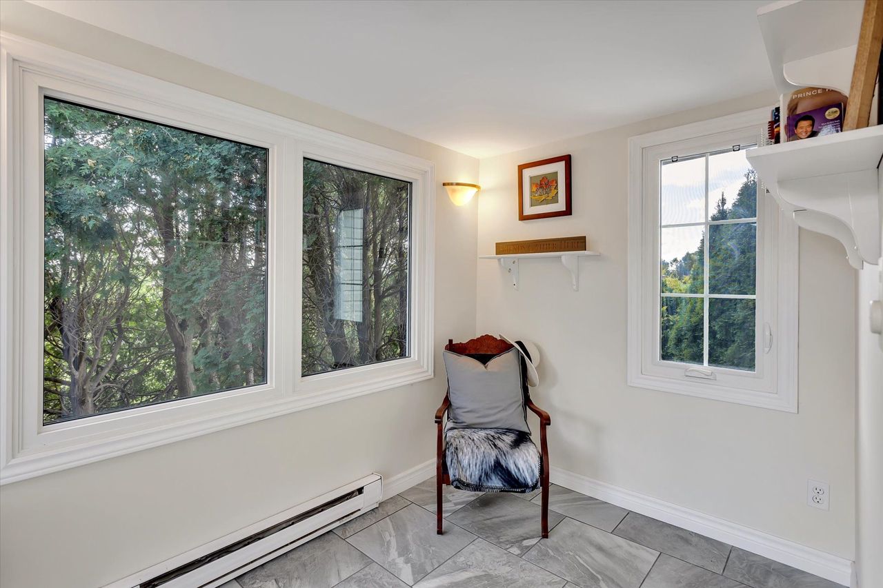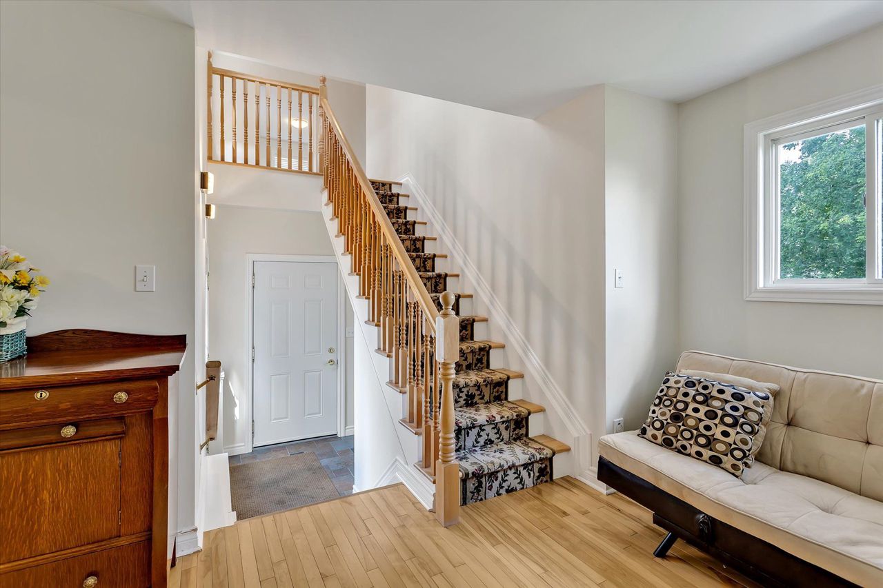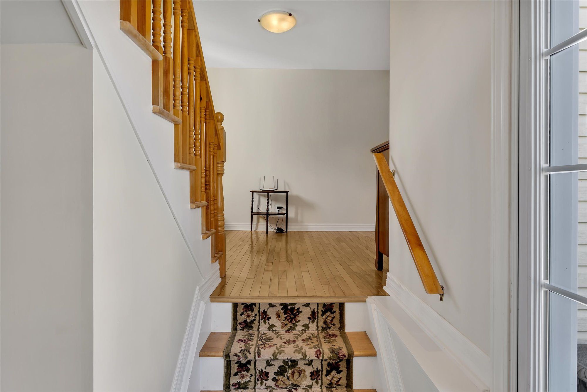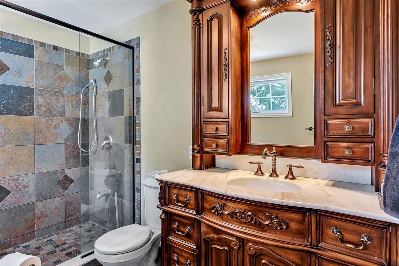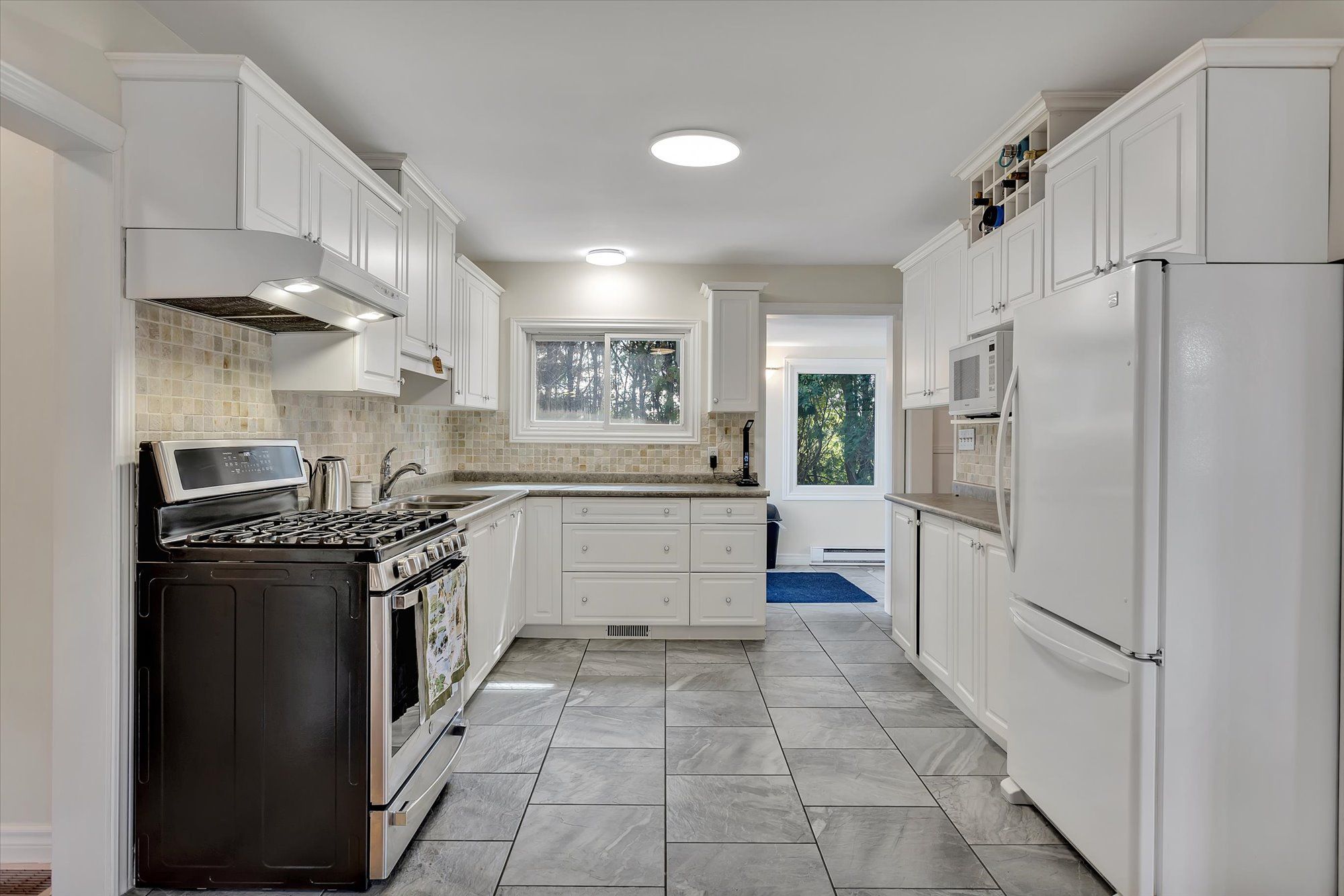 Escape the ordinary and embrace country living in this well appointed bungaloft nestled on over an acre, surrounded by farm fields. With direct highway exposure, this property offers both serenity and convenience for the commuter who can park in the heated oversized double garage. As you step inside, a beautiful foyer guides you to an immense primary suite that redefines luxury. Pamper yourself in the private ensuite featuring an air tub, glass shower and 2 walk-in closets, storage should never be a concern. The updated kitchen boasts ample cupboards and counter space, catering to the needs of any culinary enthusiast. The large, open concept kitchen and dining area also features a cozy wood stove to curl up by. The living room is thoughtfully designed with a built-in bookshelf, combining functionality and style. A sunroom beckons, offering a seamless connection to the outdoors and leading to a deck where you can savor the views of your landscaped lot, complete with stamped walkway.A fully finished detached workshop stands ready to be you. Updated windows, roof, furnace, central air, baths, kitchen, doors, wiring, plumbing, flooring the list goes on and on.