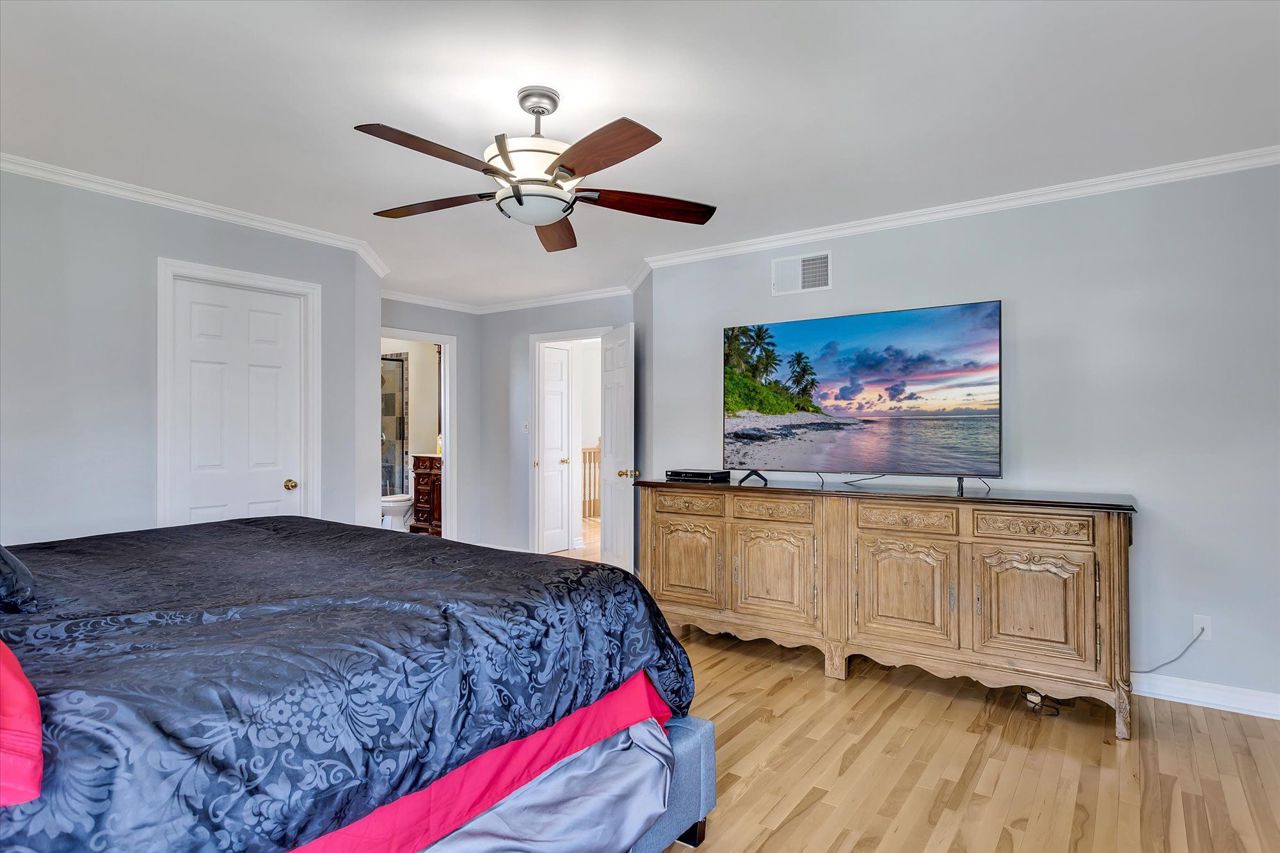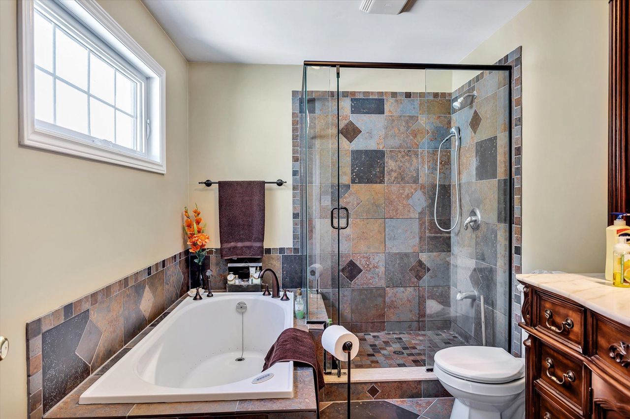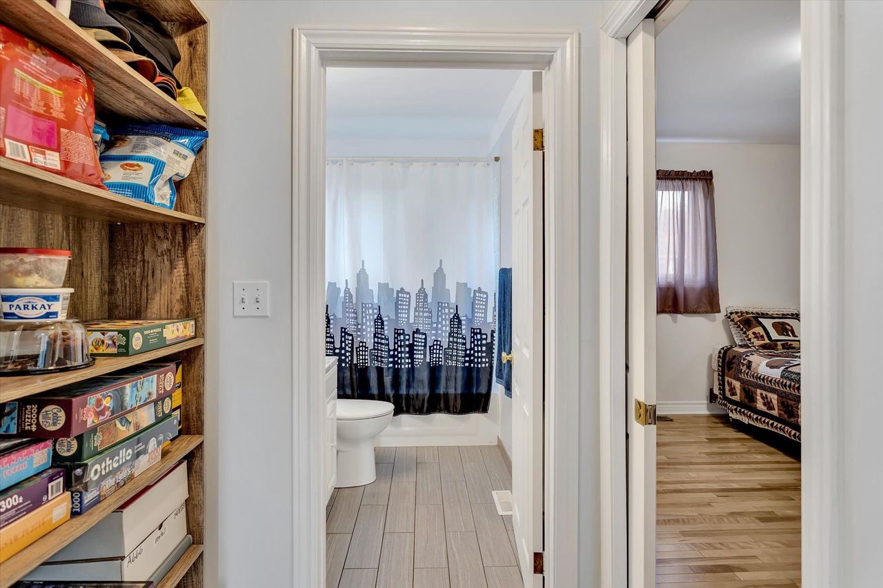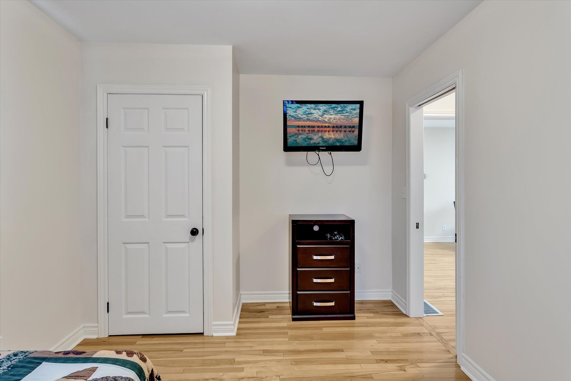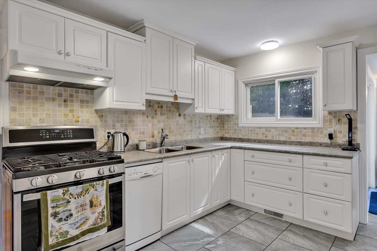 Escape the ordinary and embrace country living in this well appointed bungaloft nestled on over an acre, surrounded by farm fields. With direct highway exposure, this property offers both serenity and convenience for the commuter who can park in the heated oversized double garage. As you step inside, a beautiful foyer guides you to an immense primary suite that redefines luxury. Pamper yourself in the private ensuite featuring an air tub, glass shower and 2 walk-in closets, storage should never be a concern. The updated kitchen boasts ample cupboards and counter space, catering to the needs of any culinary enthusiast. The large, open concept kitchen and dining area also features a cozy wood stove to curl up by. The living room is thoughtfully designed with a built-in bookshelf, combining functionality and style. A sunroom beckons, offering a seamless connection to the outdoors and leading to a deck where you can savor the views of your landscaped lot, complete with stamped walkway.A fully finished detached workshop stands ready to be you. Updated windows, roof, furnace, central air, baths, kitchen, doors, wiring, plumbing, flooring the list goes on and on.