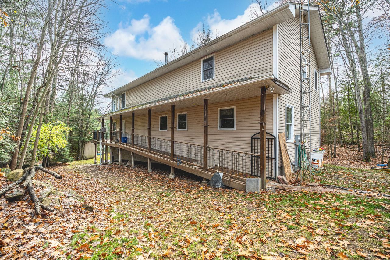 1.61 ACRE WATERFRONT LOT FEATURING 140' OF SOUTHERN EXPOSURE ON CREGO LAKE IN THE KAWARTHAS! This property is conveniently located just 2 hours from the GTA, and a short drive from Kinmount, Bobcaygeon, and the Trent System. The 4-season direct waterfront home or cottage offers 140' of beautiful waterfront on a 1.61-acre lot with no neighbours in sight, ensuring the utmost privacy. Step inside to discover a bright interior highlighted by five skylights and a charming Juliette balcony facing the lake, perfect for enjoying stunning sunsets. The home's layout can be easily configured with 5-7 A/G bedrooms. The three-season sunroom is ideal for morning coffee or evening relaxation, while two fireplaces add a cozy touch to your living space. The walkout basement includes a snooker table and ping pong table for immediate enjoyment. This property boasts modern conveniences, including two laundries, an oversized two-car garage, a 10x16 workshop, and a 6x8 shed. The dock is included, making it easy to enjoy all the water activities Crego Lake offers. The home features LED lighting and appliances; most furnishings are conveniently included. The association dues are only $300 annually for 2024, and the private road is maintained year-round. This road separates the 51 lakefront cottages from 600 acres of Cottage Association land, offering approximately 20 km of walking trails. Beyond this, you can explore the expansive 4800-acre Somerville Forest. The landlocked smaller lake has a 10hp motor limit, ensuring a peaceful environment with loons, deer, and moose nearby. Heating is efficient, using 4-5 bush cords of firewood supplemented with about $300 in propane, and hydro costs range from $65-120/month. New septic system in 2007 & fibre optic internet available. VTB financing options are available. Your waterfront #HomeToStay awaits!