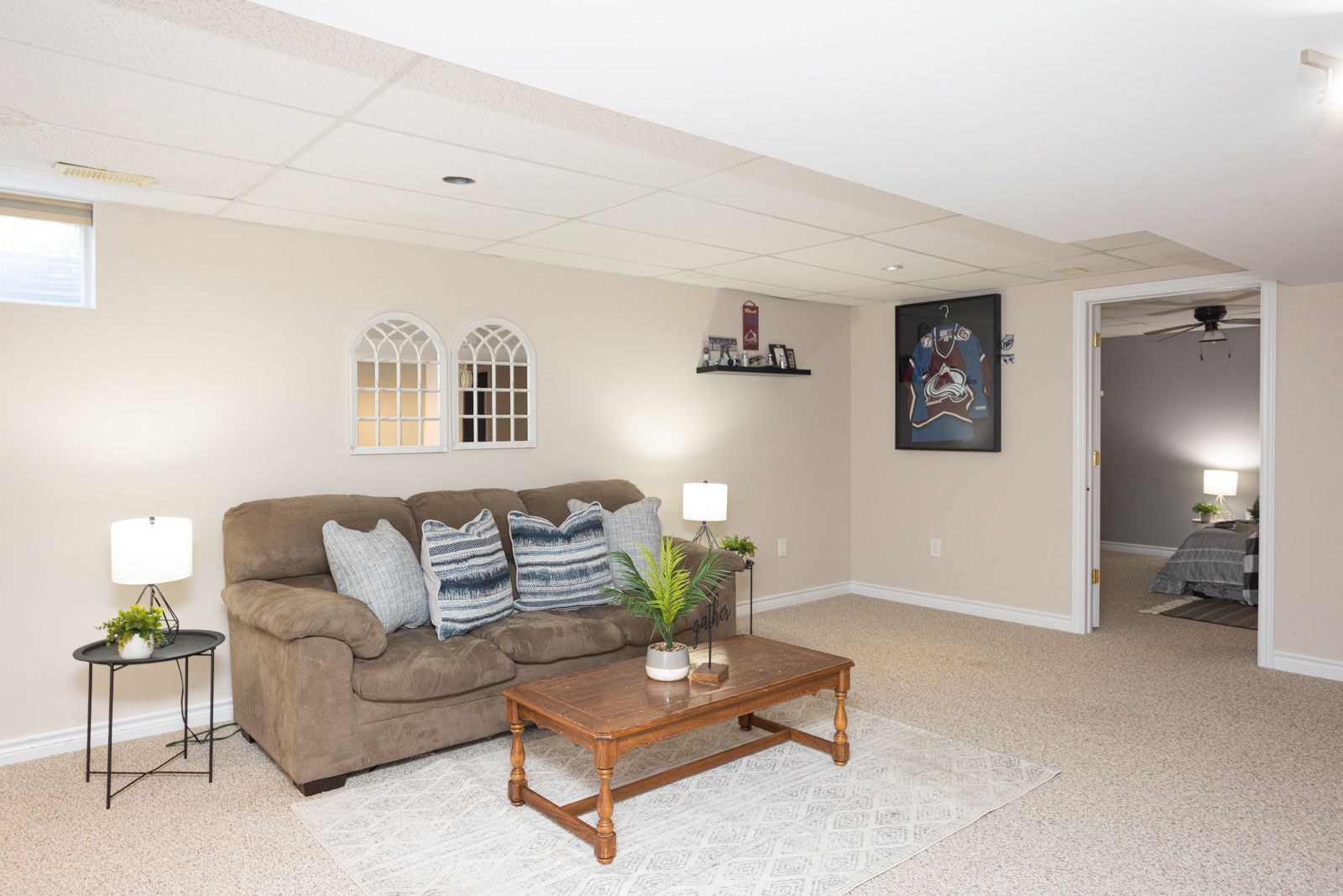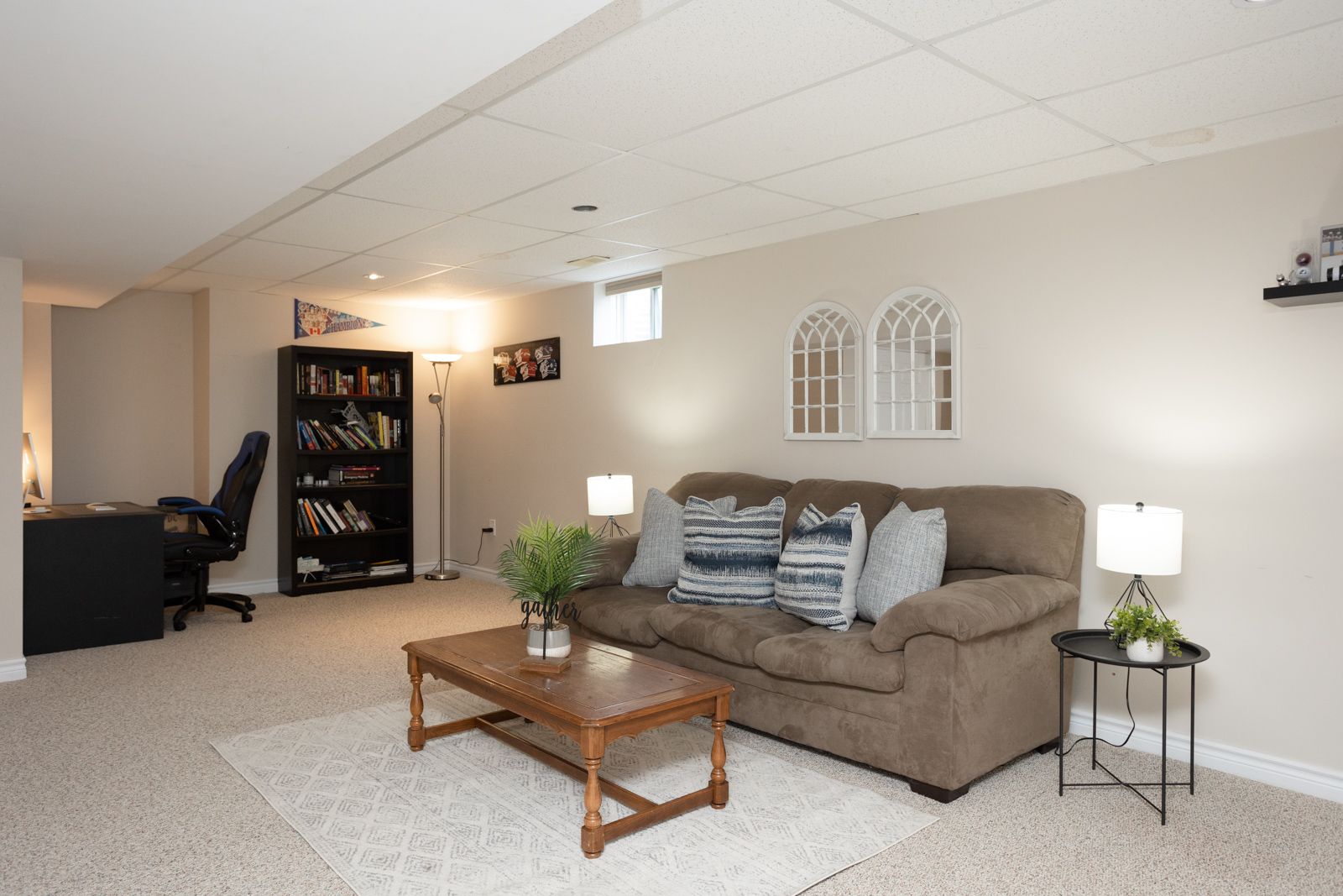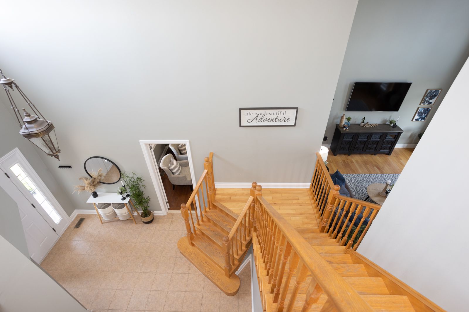 Executive all brick, 3+1 bedroom, 3.5 bath, two storey home in desirable Lindsay community. This large home features a grand entry with 18' ceiling in foyer, hardwood staircase and flooring throughout main level, spacious formal dining room, eat-in kitchen with rock countertops and breakfast nook + walkout to private and fenced backyard with BBQ gazebo and patio area great for entertaining. This gorgeous homes also features a stunning great room with 18 foot ceiling, main floor laundry area + office / den. This open concept home has 4 large bedrooms, with the primary bedroom boasting a 4 piece ensuite and walk-in closet. Spacious fully finished lower level has large recreation room, 4th bed, den / workout space, kitchenette and 3 piece bath + storage area. Attached double car garage, covered front patio, New Roof (2023), Gas Furnace & A/C (2020), new fridge. Steps from neighbourhood park and playground, close to walking trails, Logie Street Park and the Scugog River.
