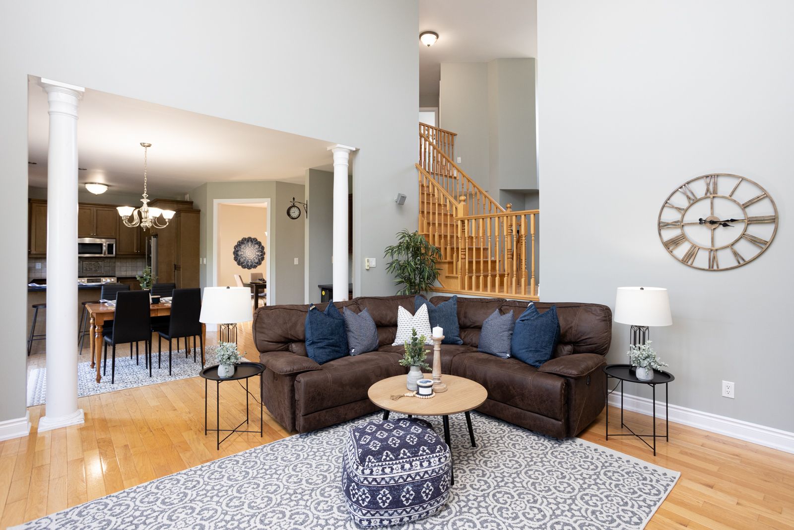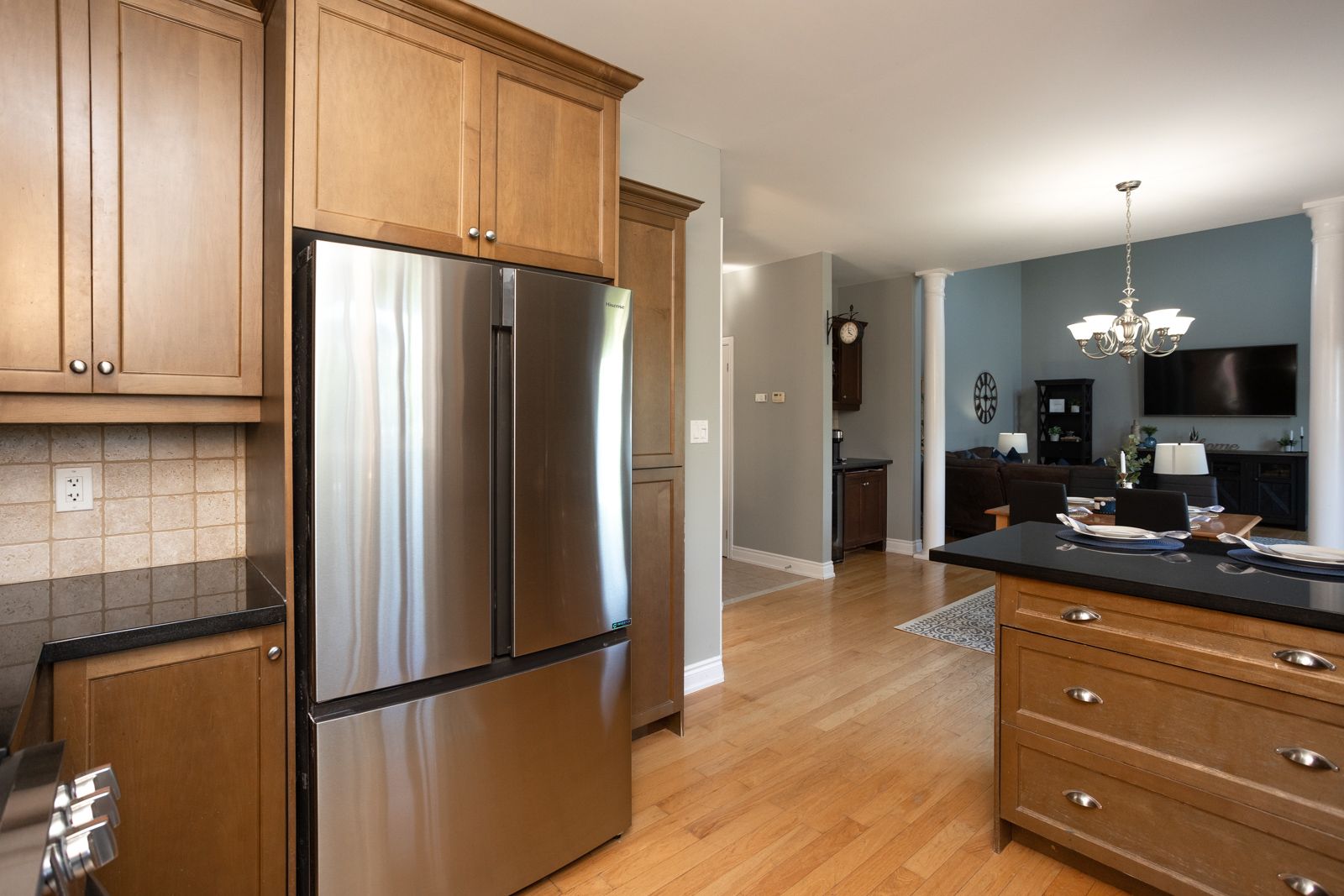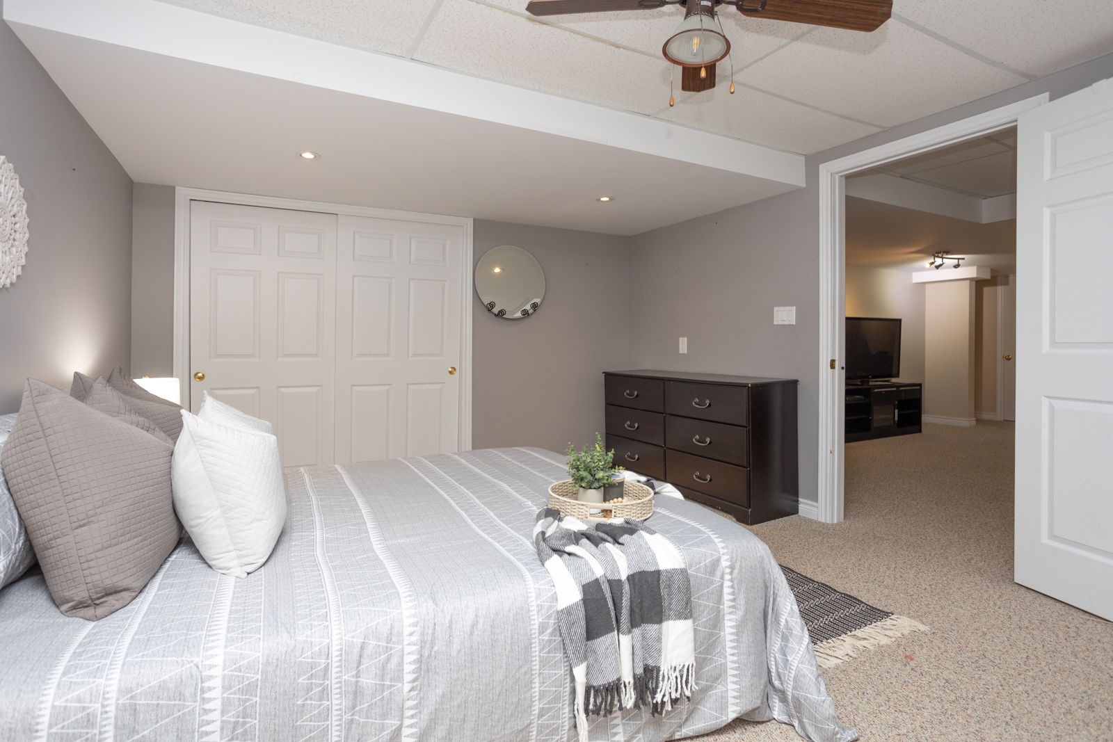 Executive all brick, 3+1 bedroom, 3.5 bath, two storey home in desirable Lindsay community. This large home features a grand entry with 18' ceiling in foyer, hardwood staircase and flooring throughout main level, spacious formal dining room, eat-in kitchen with rock countertops and breakfast nook + walkout to private and fenced backyard with BBQ gazebo and patio area great for entertaining. This gorgeous homes also features a stunning great room with 18 foot ceiling, main floor laundry area + office / den. This open concept home has 4 large bedrooms, with the primary bedroom boasting a 4 piece ensuite and walk-in closet. Spacious fully finished lower level has large recreation room, 4th bed, den / workout space, kitchenette and 3 piece bath + storage area. Attached double car garage, covered front patio, New Roof (2023), Gas Furnace & A/C (2020), new fridge. Steps from neighbourhood park and playground, close to walking trails, Logie Street Park and the Scugog River.
