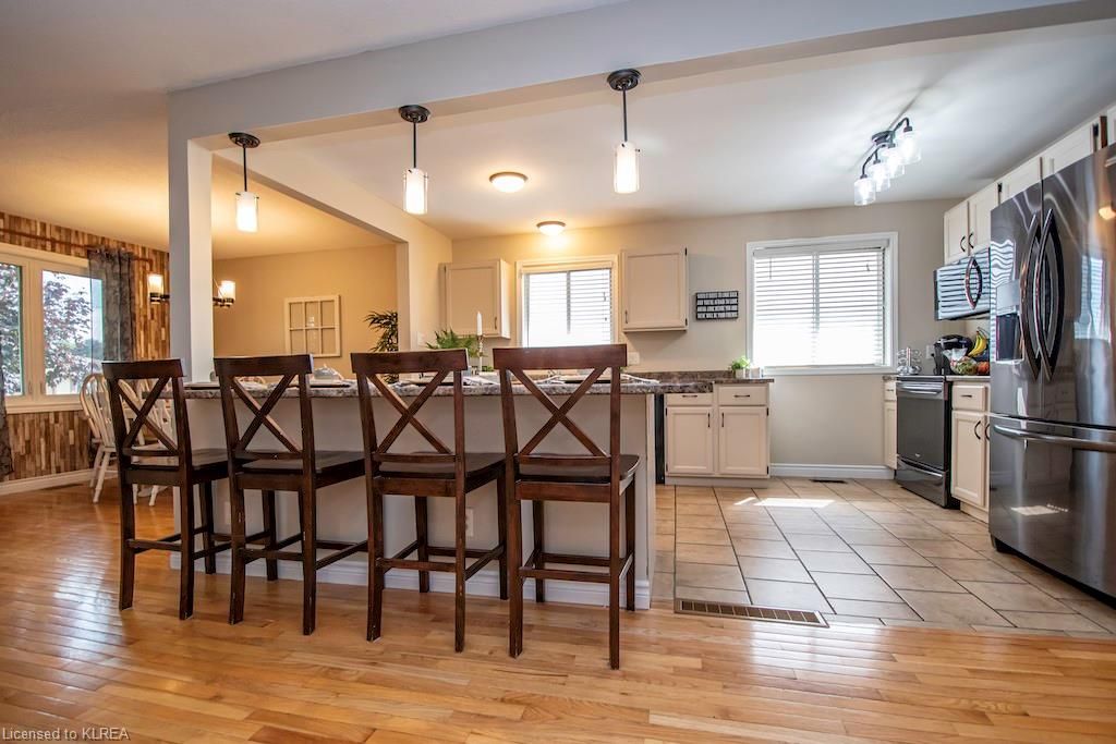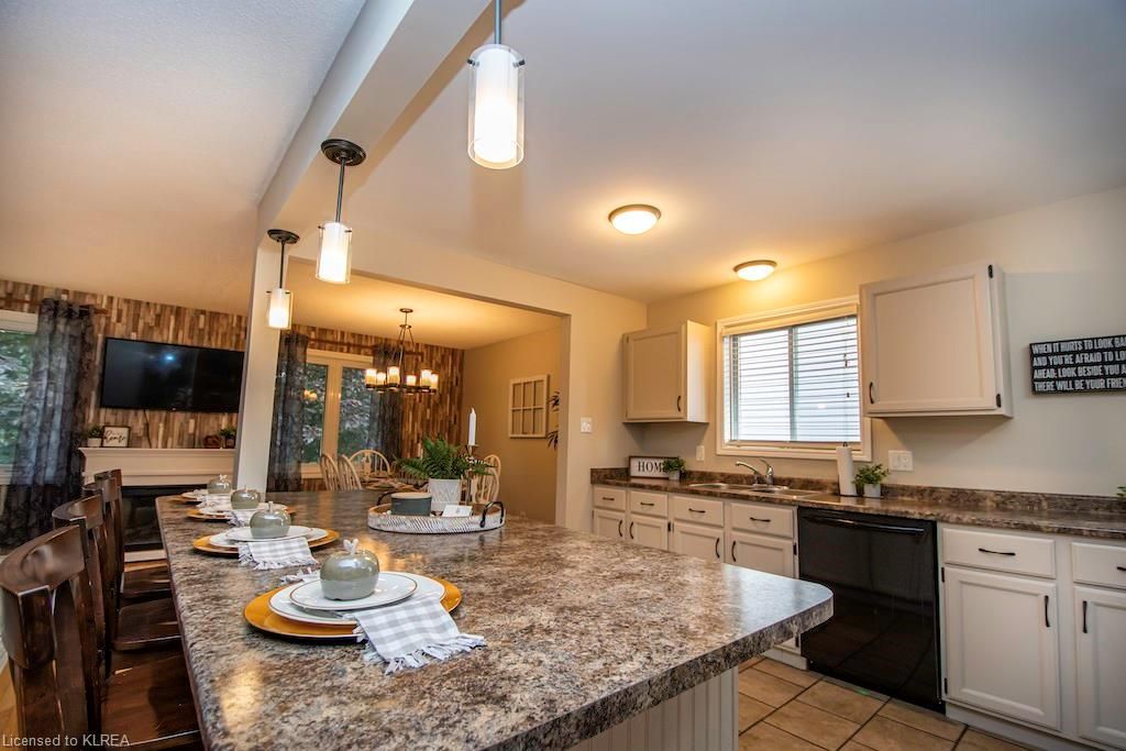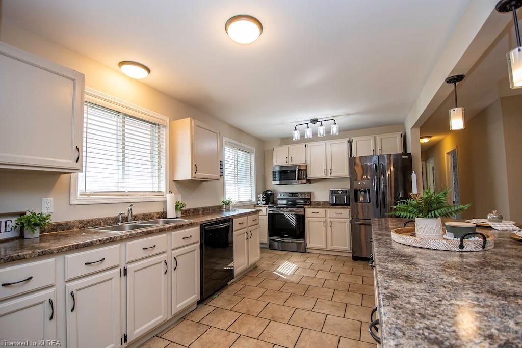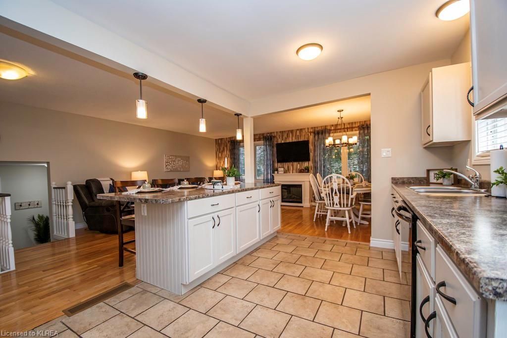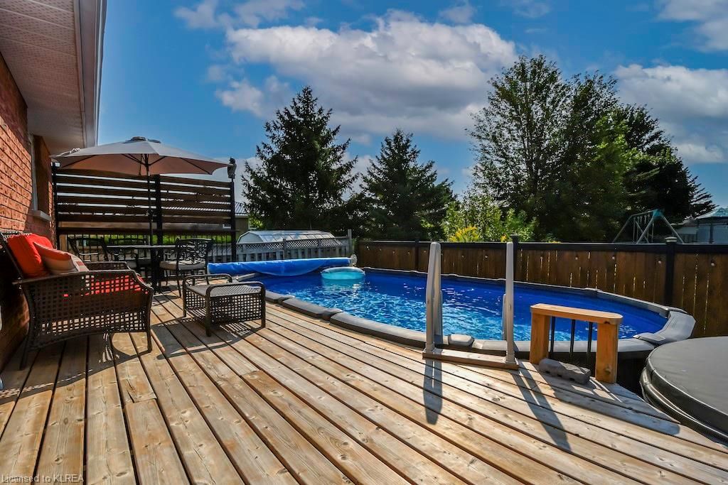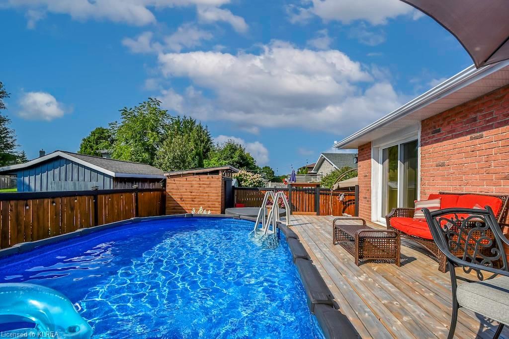 Welcome to 56 Madill St Lindsay! This 3+1, 2 bath brick bungalow offers over 2000 sq ft of finished living space! Features include an open concept liv/din/kit with hardwood & tile floors, large breakfast bar, SS fridge & stove. The large primary suite boasts a semi-ensuite bath and a walkout to a huge deck overlooking the stunning back yard oasis with full privacy fence, above ground pool, hot tub, garden shed and beautiful stone patio! The finished basement offers a gorgeous family room with gas stove, a 4th bdrm, 4pc bath and office! Let this immaculate home be your next move!Directions to Property: Angeline St S., to Mary St W., follow to Madill Cres.