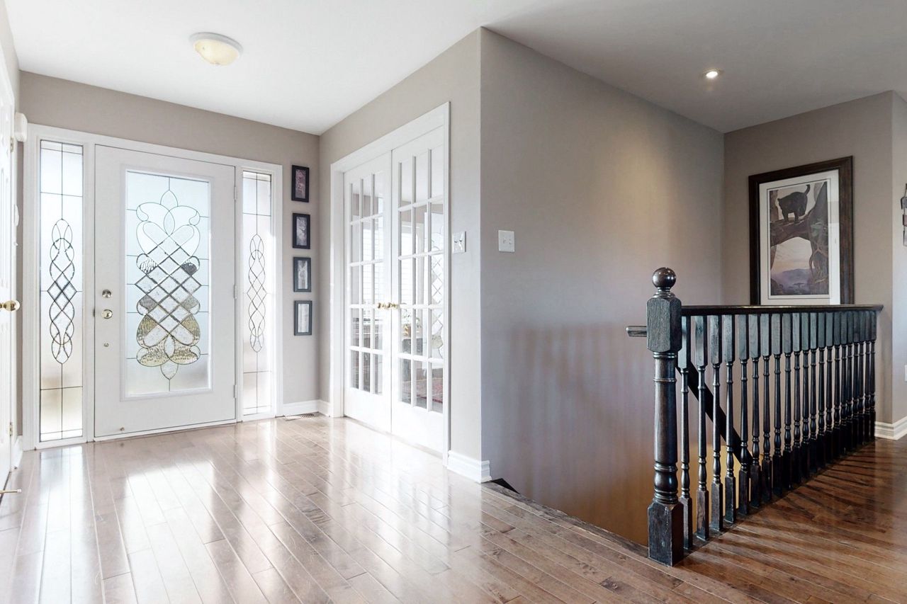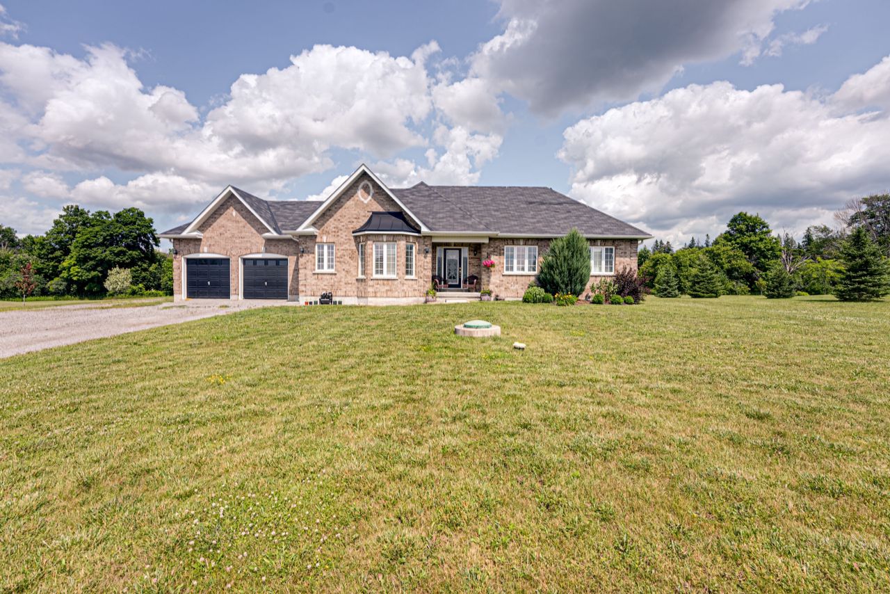 A Sprawling 1.207 acre lot greet you in this executive neighbourhood near a popular lake. Featuring a 1700 custom built bungalow backing on to green spaces. An Open Concept kitchen allow sight lines to the grand living area. Kitchen has granite countertops, maple custom cabinetry, a walk in pantry, stainless steel appliances and a large island with breakfast or homework area for the kiddies. Separate diningroom with french doors can transition into a den or office or even a guest room. All smooth ceilings, pot lites and hardwood throughout. Livingroom features cozy fireplace. Convenient main floor laundry / mudroom walks out to garage. Primary bedroom has walk in closet and four piece ensuite. Privacy isn't an issue with Custom California Shutters that grace the entire home. Janetville is a perfect place to raise a family and enjoy the peacefulness of country life, yet be less than an hour to the GTA. Whether you want Winter or Summer Fun this area is a gem.California Shutters, Above Ground Pool,