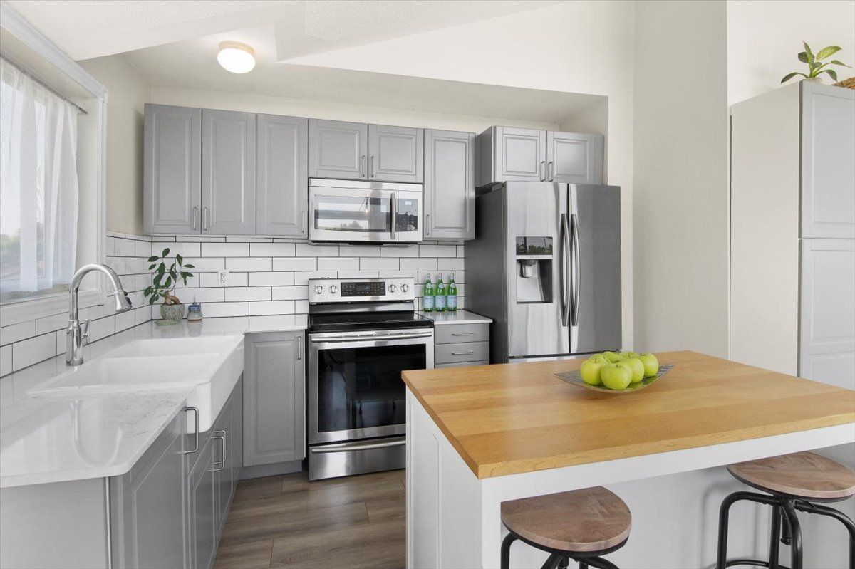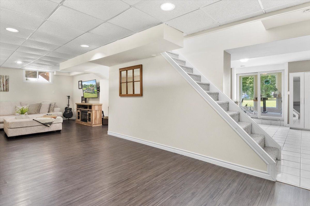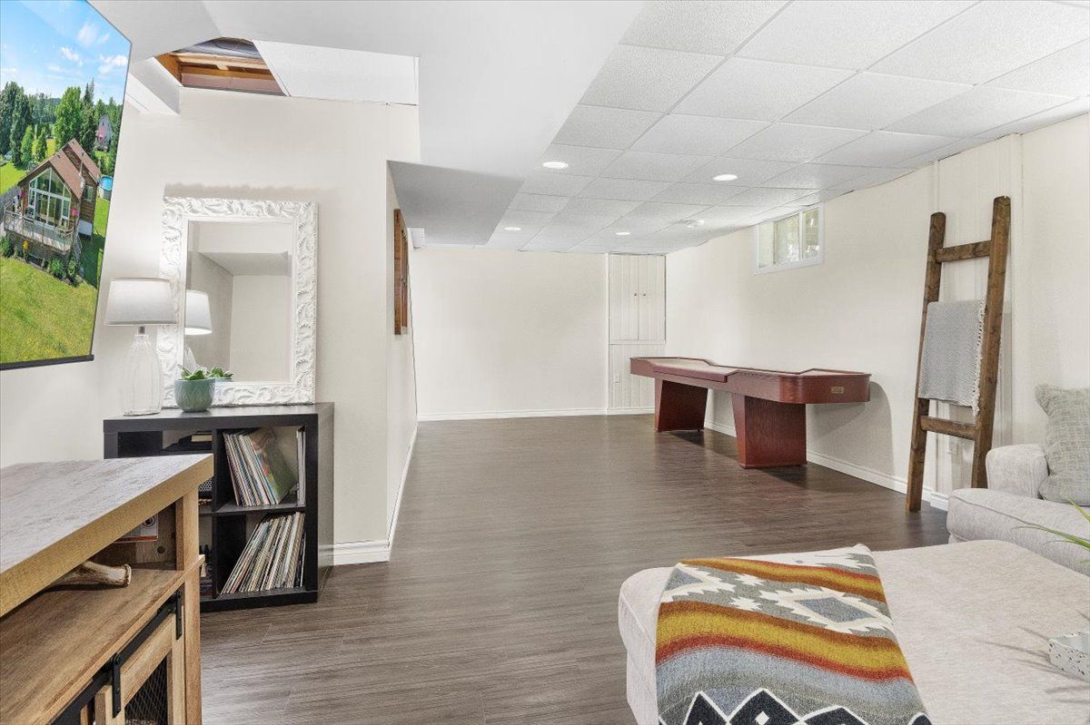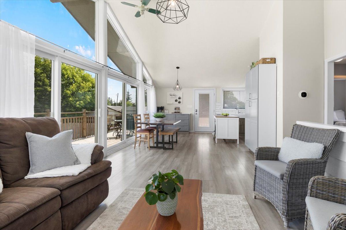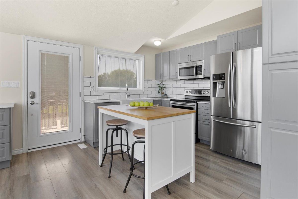 Your eyes will sparkle when you drive up and notice the massive garage, parking for a dozen cars and a 40 ft deck! Close to lake access and public boat launch this home is perfectly set on a 100 x 200 ft lot in the lakeside community of Washburn Island. Renovated centre island kitchen with subway tile backsplash, high cathedral ceilings and south facing windows. The fireplace will warm you on the winter eves after a snowmobile ride from your back yard. 2 baths, full basement with 2 family rooms, pellet stove and fireplace, laundry and the cutest sunroom/ potting shed or work at home space overlooking the yard.This home is perfect for the outdoors person or someone wanting a home that comes with a lake view.