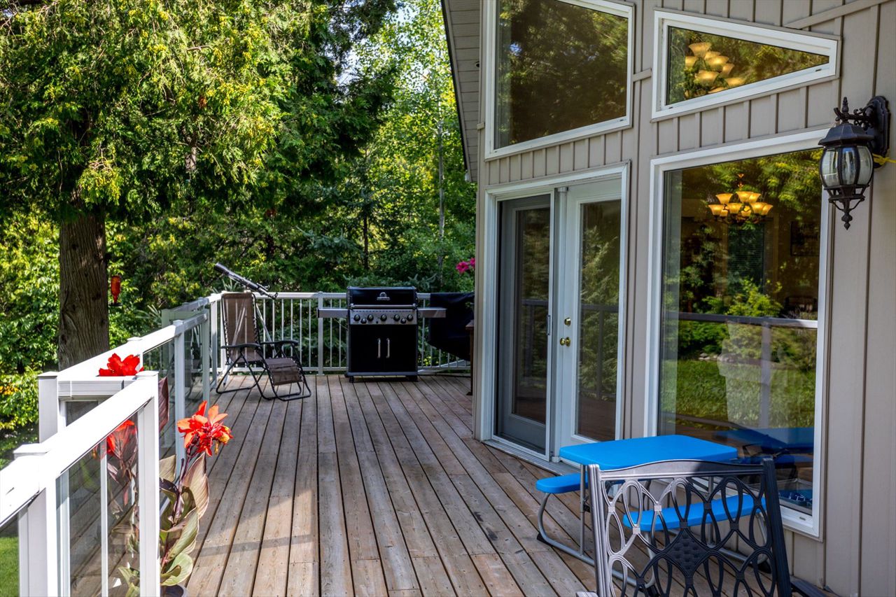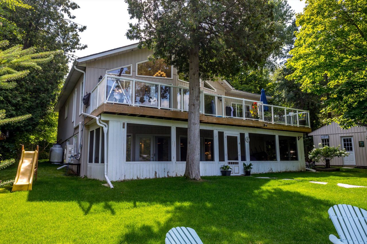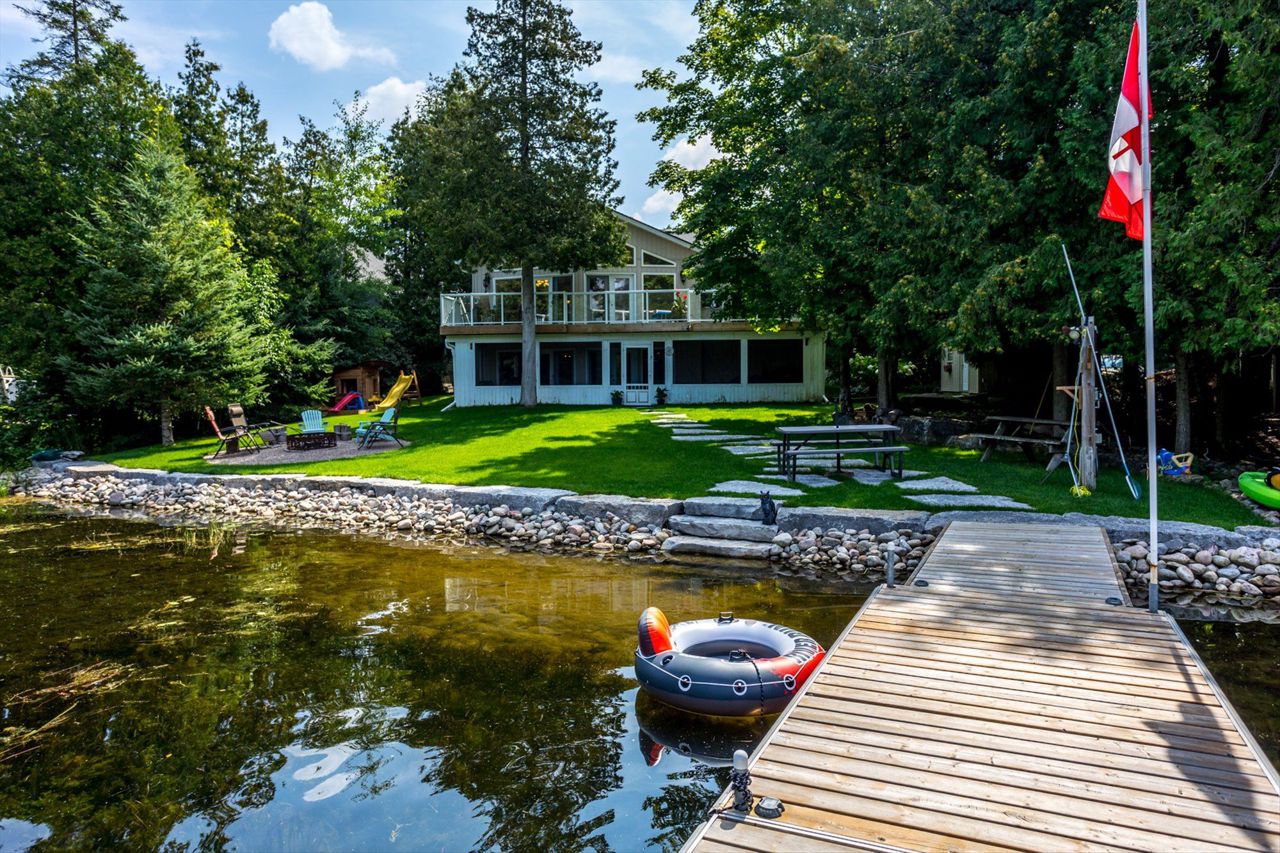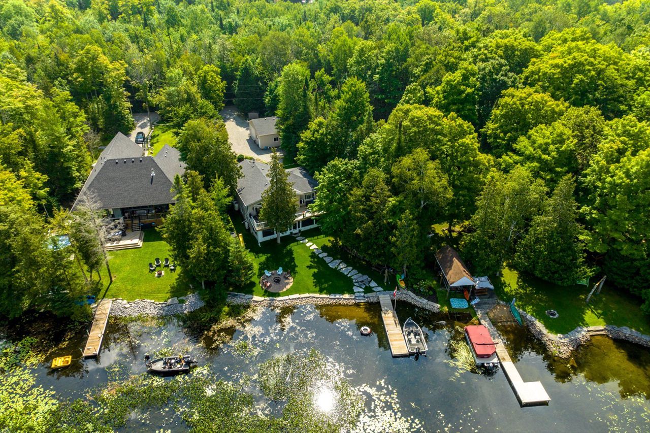 Imagine waking up every morning to stunning Western exposures, where you can enjoy breathtaking sunsets from the comfort of your own bungalow. This well-maintained home boasts 2+2 bdrms & 3 full baths, providing ample space for both family & guests. One of the many highlights of this property is the main floor laundry, making everyday tasks more convenient. Step outside onto the landscaped exterior and take in the fresh air from your open deck, accessible directly from the living room. The finished bsmt offers even more possibilities with a walk-out sunroom and a kitchenette, perfect for entertaining or creating a separate living space. The open concept design w/cathedral ceilings provides a sense of grandeur while overlooking the waterfront. Additionally, this property features a private dock where you can easily access Balsam Lake's tranquil waters. With approximately 3000 square feet of living space a two-car heated garage/workshop, there is no shortage of room.