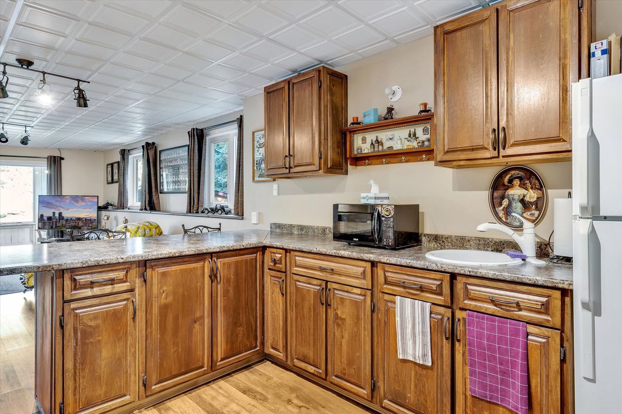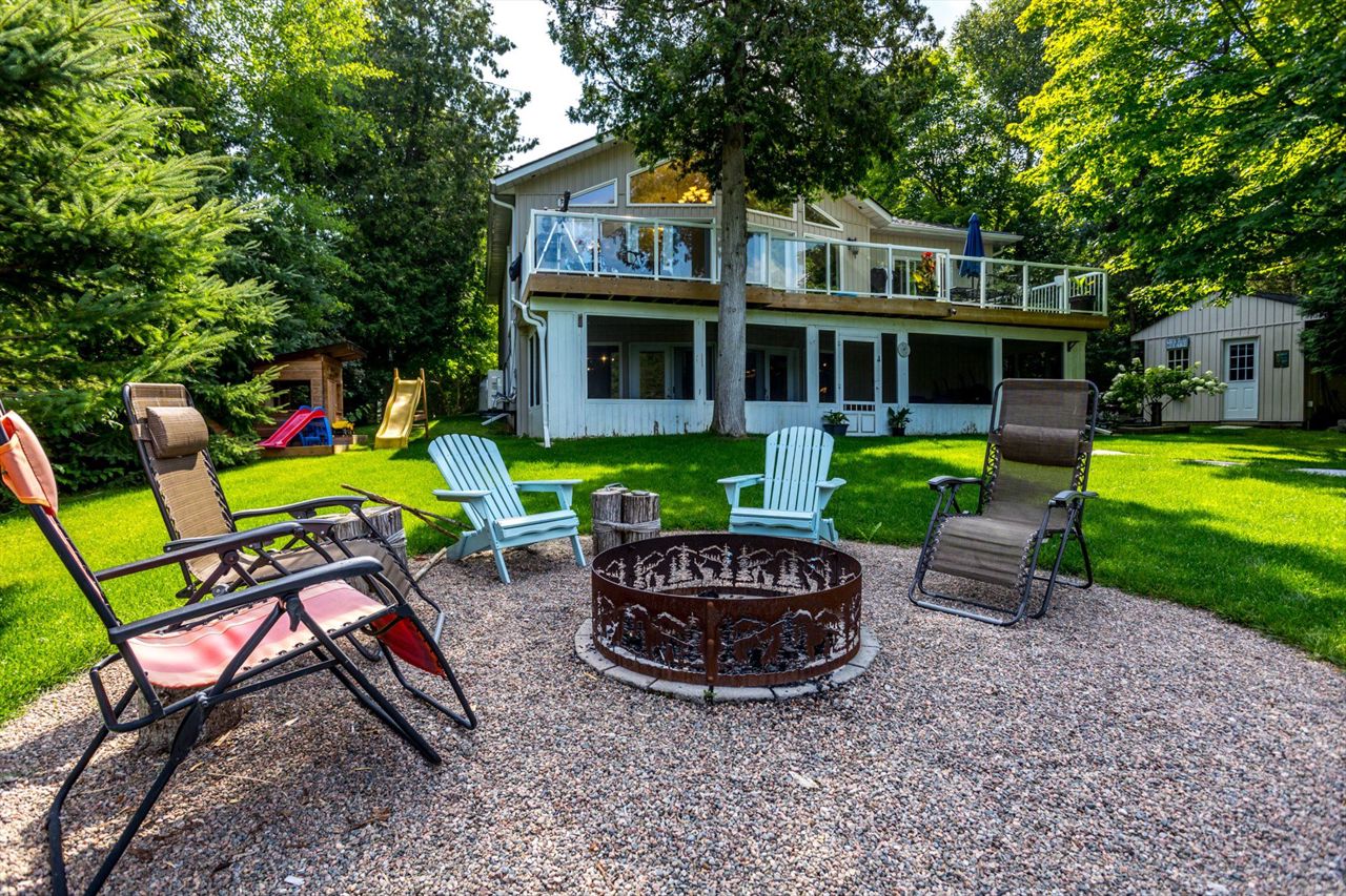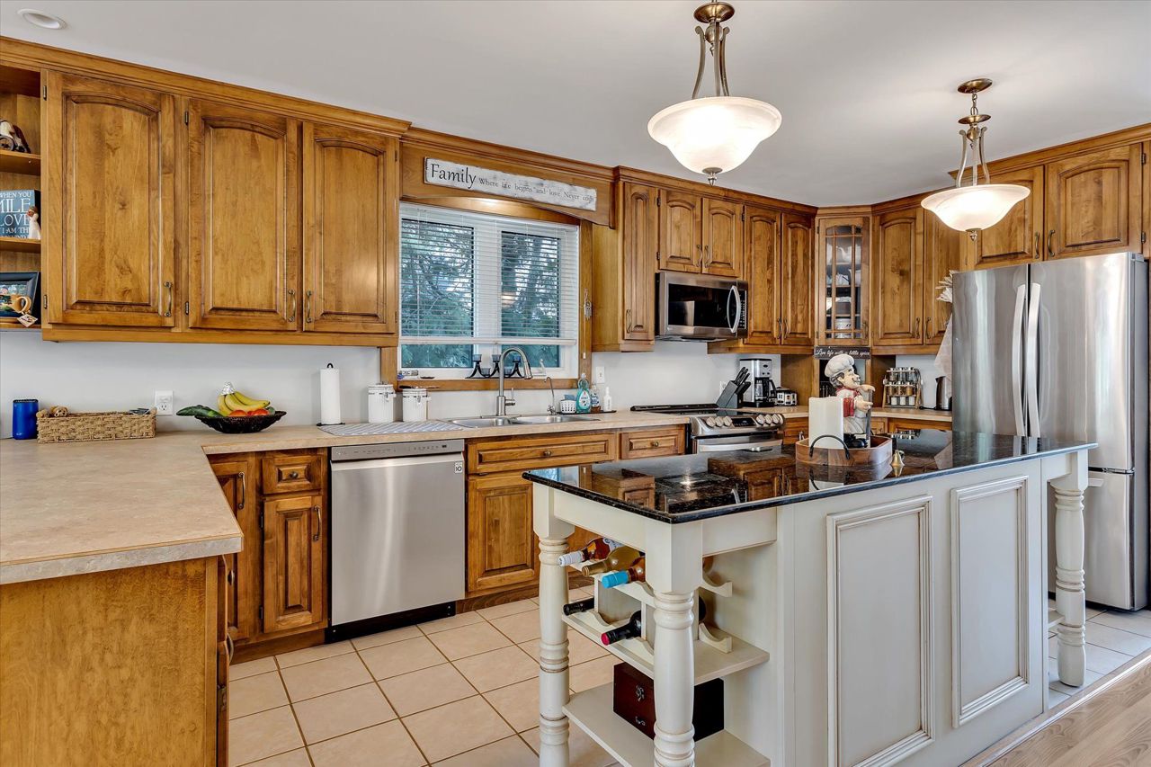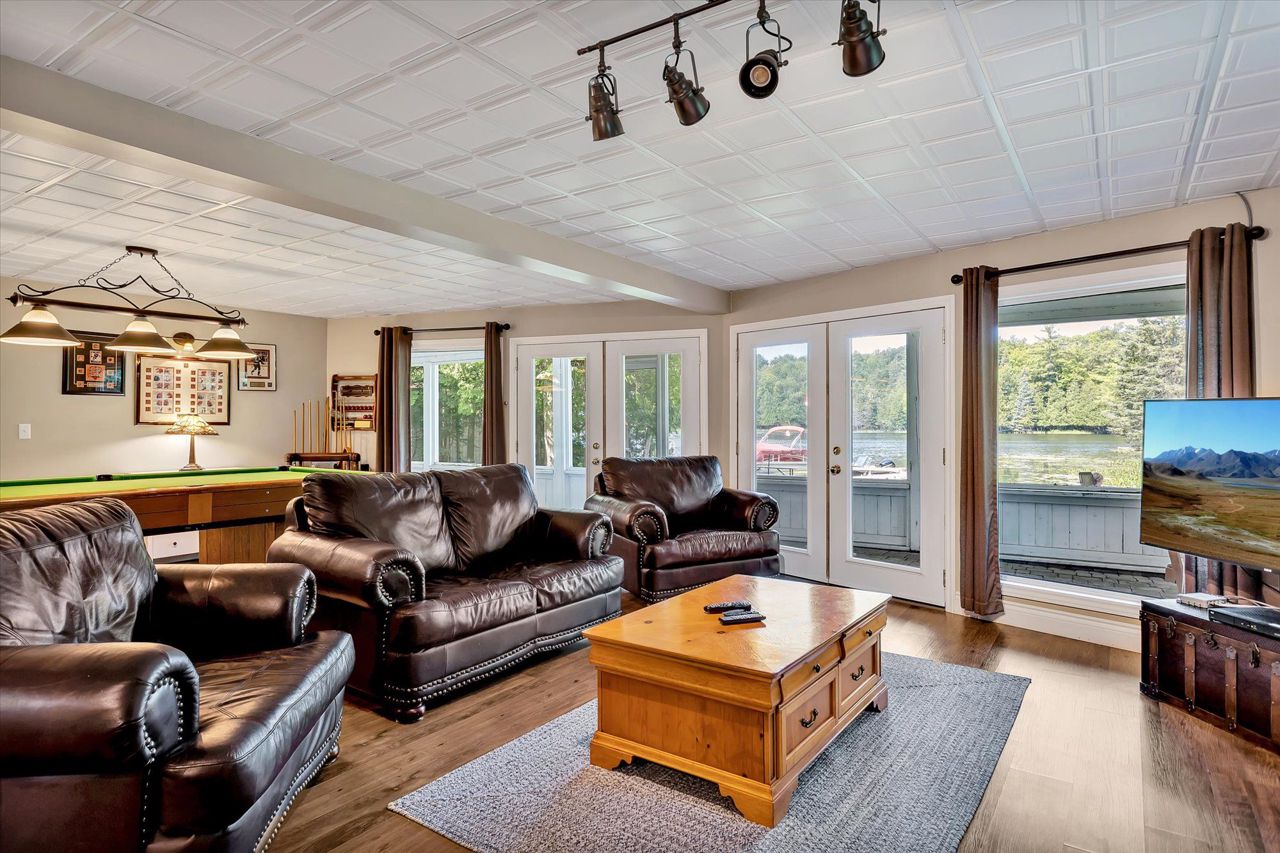 Imagine waking up every morning to stunning Western exposures, where you can enjoy breathtaking sunsets from the comfort of your own bungalow. This well-maintained home boasts 2+2 bdrms & 3 full baths, providing ample space for both family & guests. One of the many highlights of this property is the main floor laundry, making everyday tasks more convenient. Step outside onto the landscaped exterior and take in the fresh air from your open deck, accessible directly from the living room. The finished bsmt offers even more possibilities with a walk-out sunroom and a kitchenette, perfect for entertaining or creating a separate living space. The open concept design w/cathedral ceilings provides a sense of grandeur while overlooking the waterfront. Additionally, this property features a private dock where you can easily access Balsam Lake's tranquil waters. With approximately 3000 square feet of living space a two-car heated garage/workshop, there is no shortage of room.