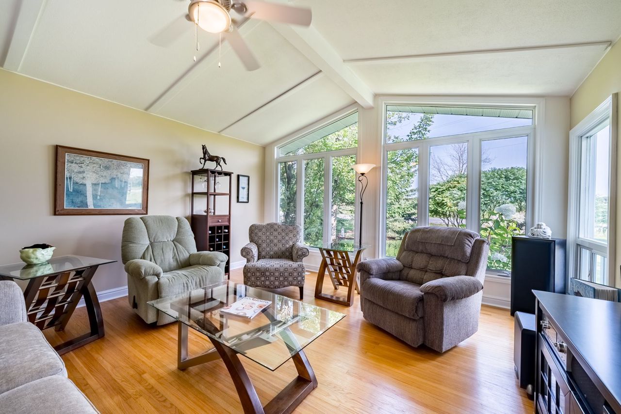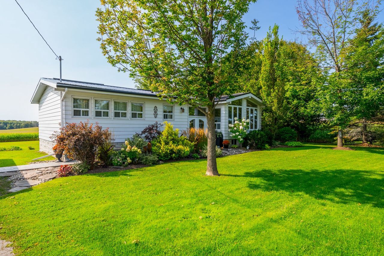 Lovely 3 bedroom recently renovated 1330 sq ft raised bungalow on private 1.5 acre lot. Features eat-in kitchen,/family room with walkout to deck overlooking country side. Newer windows through out including front entrance french doors. Upgraded electrical and insulation. Original satin finished hardwood flooring on main level. Heated bathroom floor. Beautifully landscaped property including river rock and stamped concrete walkway. both house and garage have steel roofing. Drilled well- ample supply. Located 2 1/2 miles east of Simcoe St on Ramsey Road and a pleasant 15 minute drive north of Port Perry or 15 minutes to Lindsay.