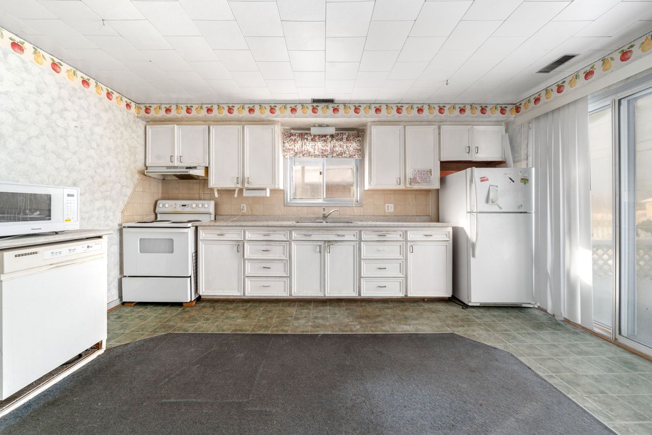 This centrally located, two storey home is within walking distance of all amenities and metres away from access to the Victoria Rail Trail. The ‘L’ shaped enclosed mudroom allows you to enter either the kitchen or the main entrance. Main floor has a spacious dining room/living room with wood stove, eat-in kitchen, 4 piece bathroom, and laundry room. The 3 bedrooms are all on the second floor. At the back of the home there is a 3 season room with access to the partially fenced back yard and a walkway to the detached garage which offers ample storage. Yard is spaciously deep considering it’s in town location. Home features hardwood floors in the dining room, large windows allowing for lots of natural sunlight, timeless crown molding and baseboards, and a forced air propane furnace . With a bit of imagination this 1900’s era house can be transformed into a modern day conventional home.