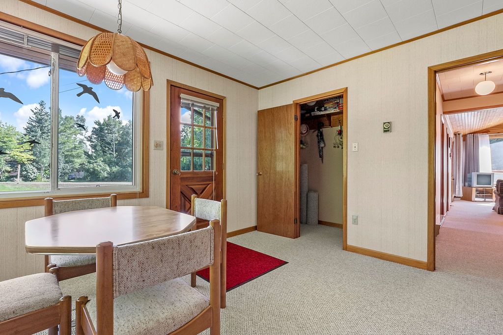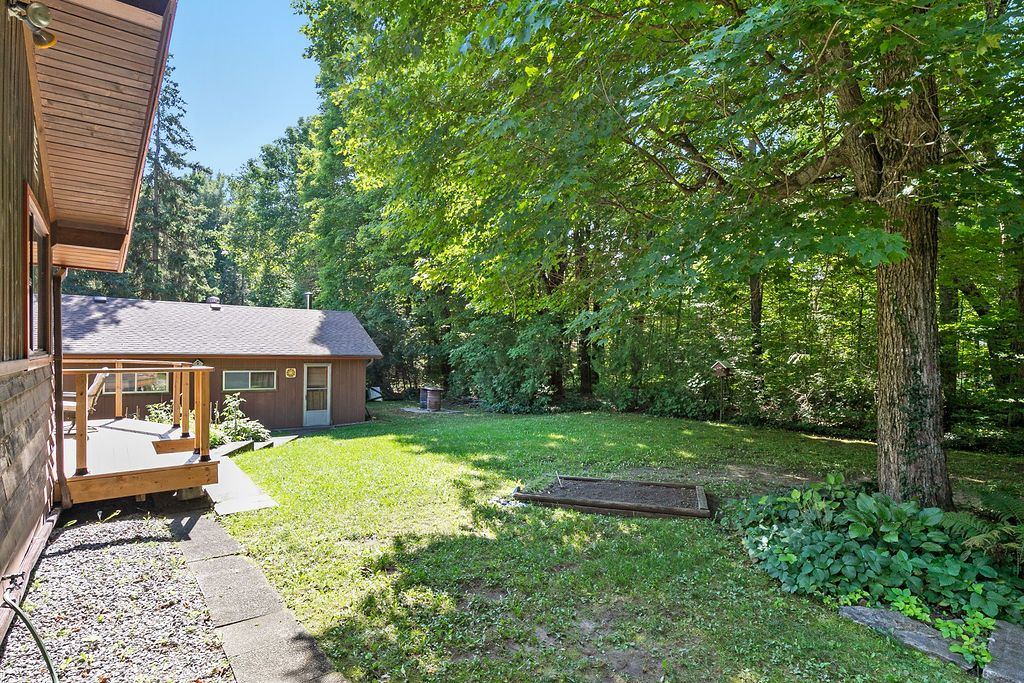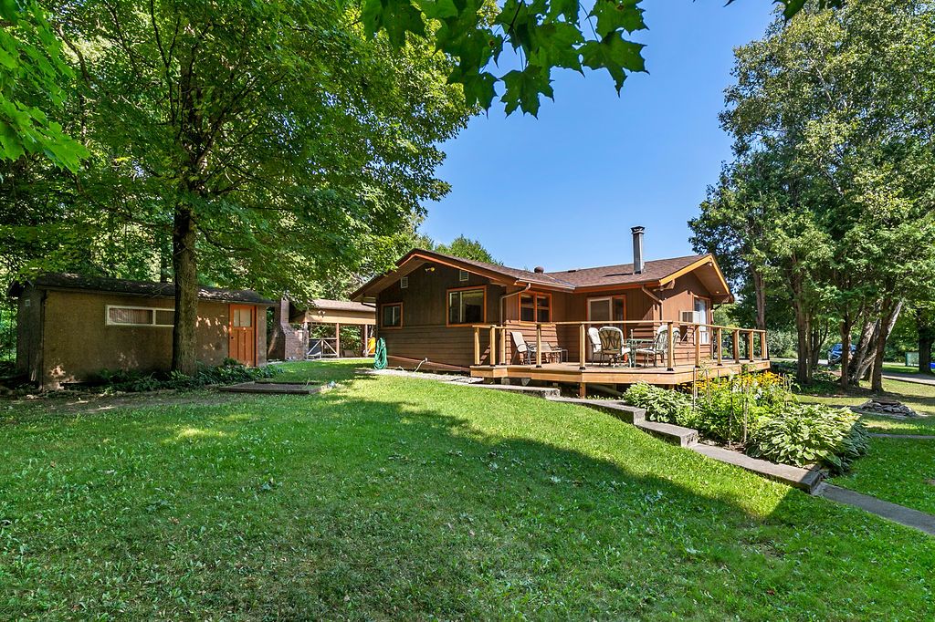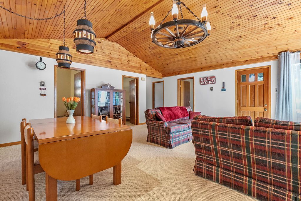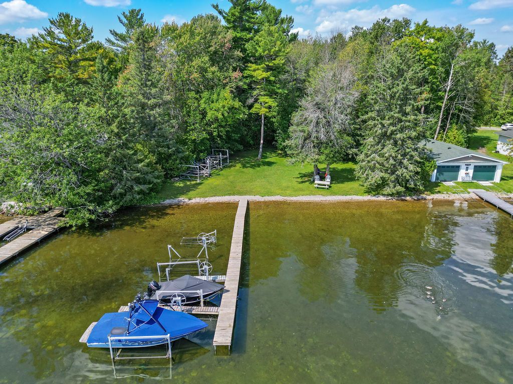 Balsam Lake with deeded water access with your own dock & beach. 4 Season cottage or home, 4 bedrooms (sleeps 12). Big, circular driveway parks 12 cars. Heated & insulated 33 x 28 garage/shop. A hidden gem. Terrelac Community on Balsam Lake. Clean water for swimming, boating and swimming activities. Also, your own boat launch. Just a short walk to the lake, and your own dock area. A spacious layout. Great room with vaulted wood ceiling and wood stove. Great for entertaining your family and friends. Great area, on a half acre lot with mature trees and quick paddle over to the famous sand bar area. This is truly built for great family in mind!Terrelac Association Fees of approx $125.00/yr for road maintenance, snow removal & common area maintenance. Boat launch available in the community as well. Insulated underneath & in the walls & attic. No attic access.