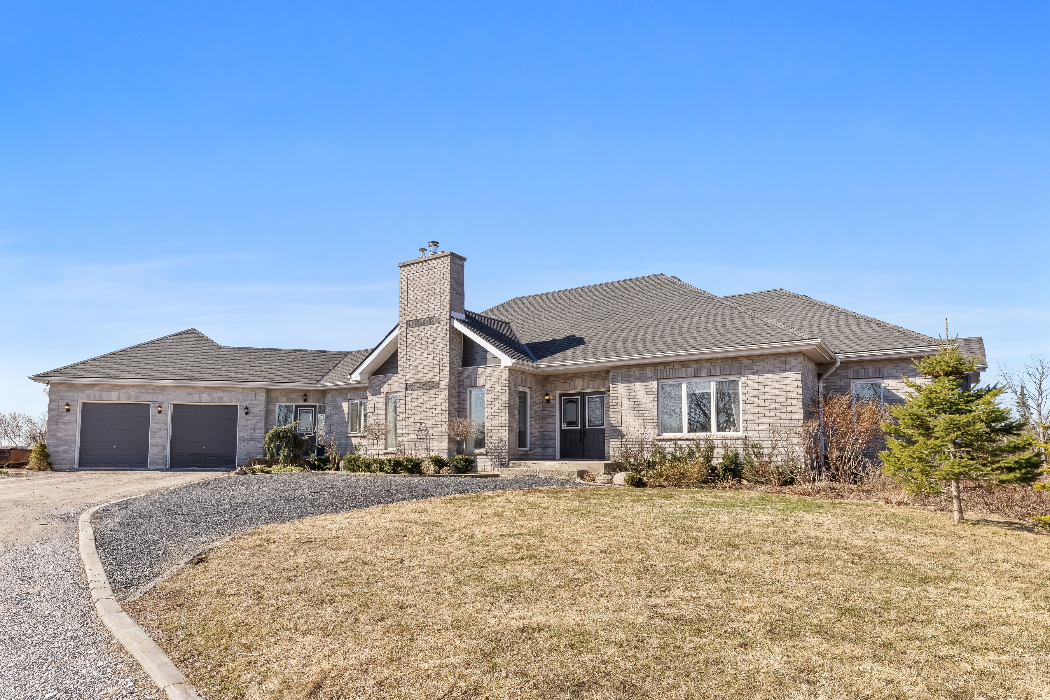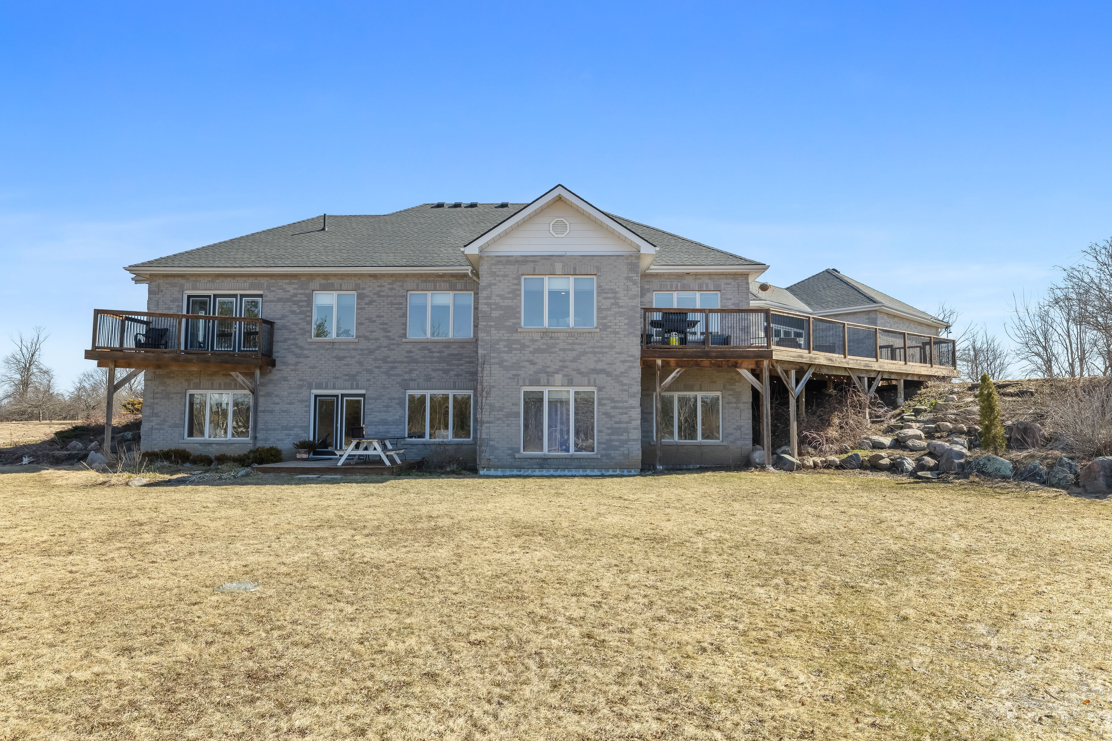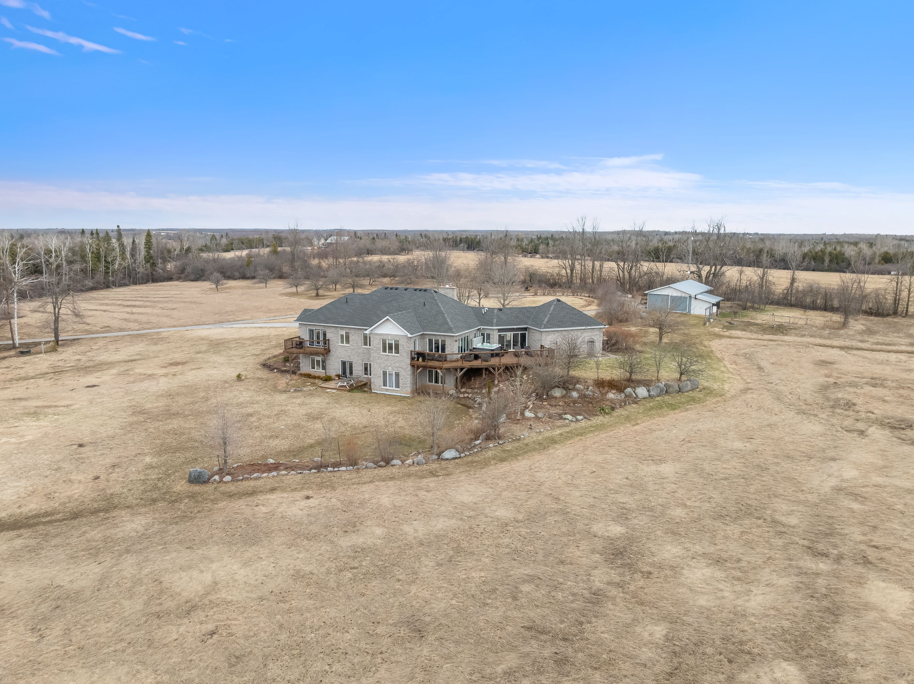 Escape to complete privacy on this stunning 49-acre property featuring a spacious custom 2+3 bedroom, 5-bathroom brick bungalow with over 4,000 total finished square feet of living space (per floor plans), a double garage and walkout basement. Set back from the road with a long, winding driveway through mature forest, this home offers peace, seclusion, and breathtaking views in every direction. The home is thoughtfully designed for comfortable living, with a main floor that includes a sun-filled living room with a wood-burning fireplace, an open-concept kitchen with quartz counters, a dining area, and a breakfast nook plus multiple walkouts to an elevated deck with panoramic views. The primary suite features its own private balcony, walk-in closet, and ensuite, while a second main floor bedroom also enjoys a private ensuite. Main floor laundry and a sunroom connecting to the double garage add everyday convenience. The walkout basement boasts 3 large bedrooms, each with walk-in closets and oversized above-grade windows, including one with an ensuite. A kitchenette on the lower level accomodates large families, multi-generational living or a potential in-law/rental suite. Outdoors, enjoy a large pond, a beautifully landscaped fire pit area, and approximately 14 cleared acres. A 24 x 48 detached workshop with a 12 x 25 addition is perfect for hobbyists or extra storage. The ICF foundation ensures energy efficiency and long-term durability. Ideally located between Port Perry and Lindsay and just a short drive to Lake Scugog, this is the ultimate private country retreat with all the comforts of home.