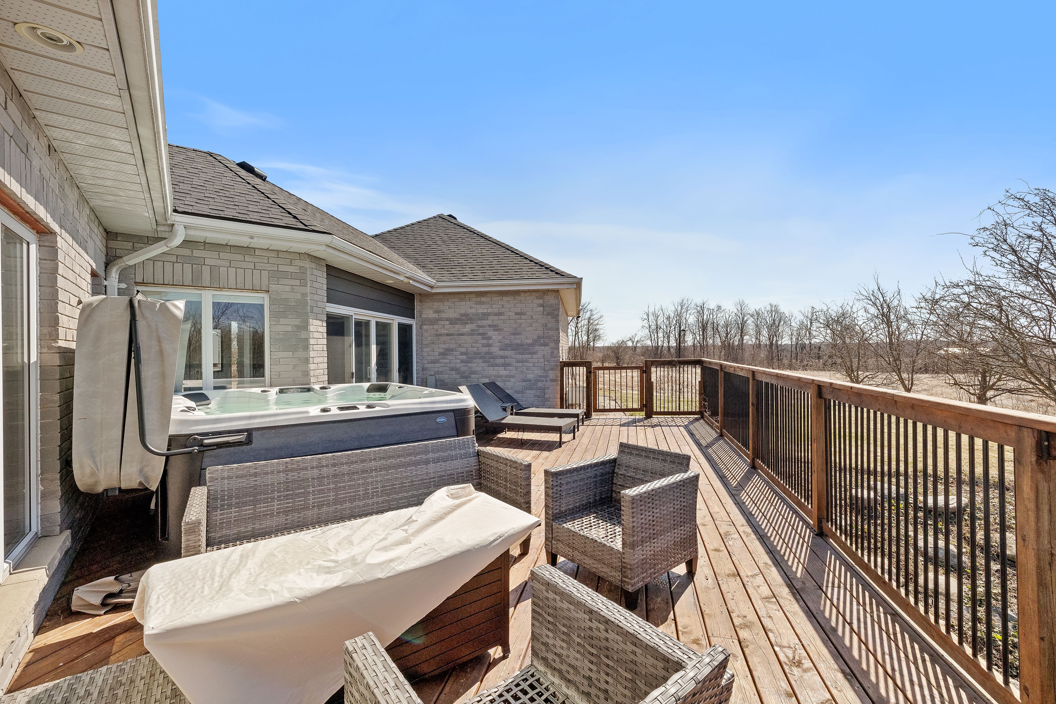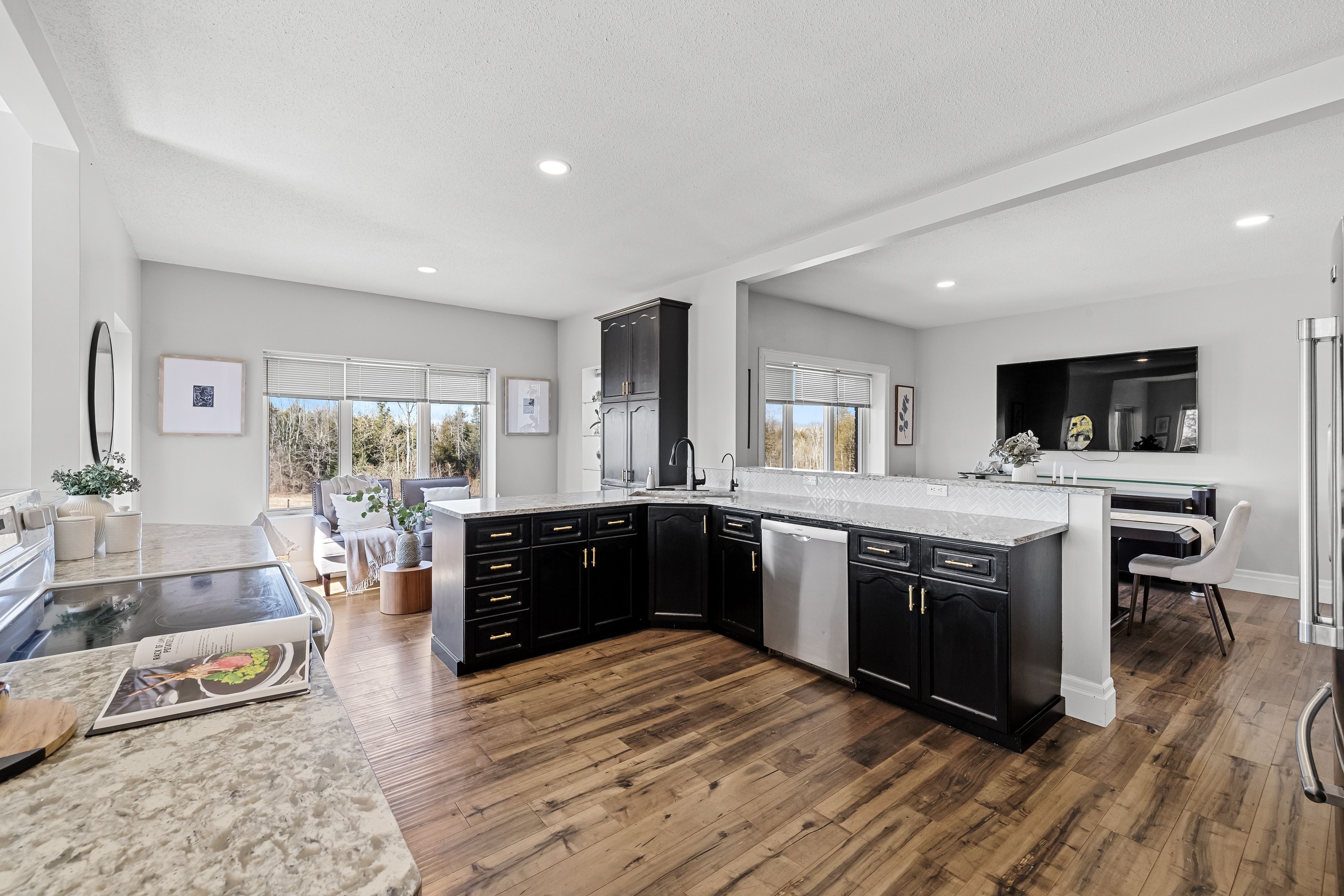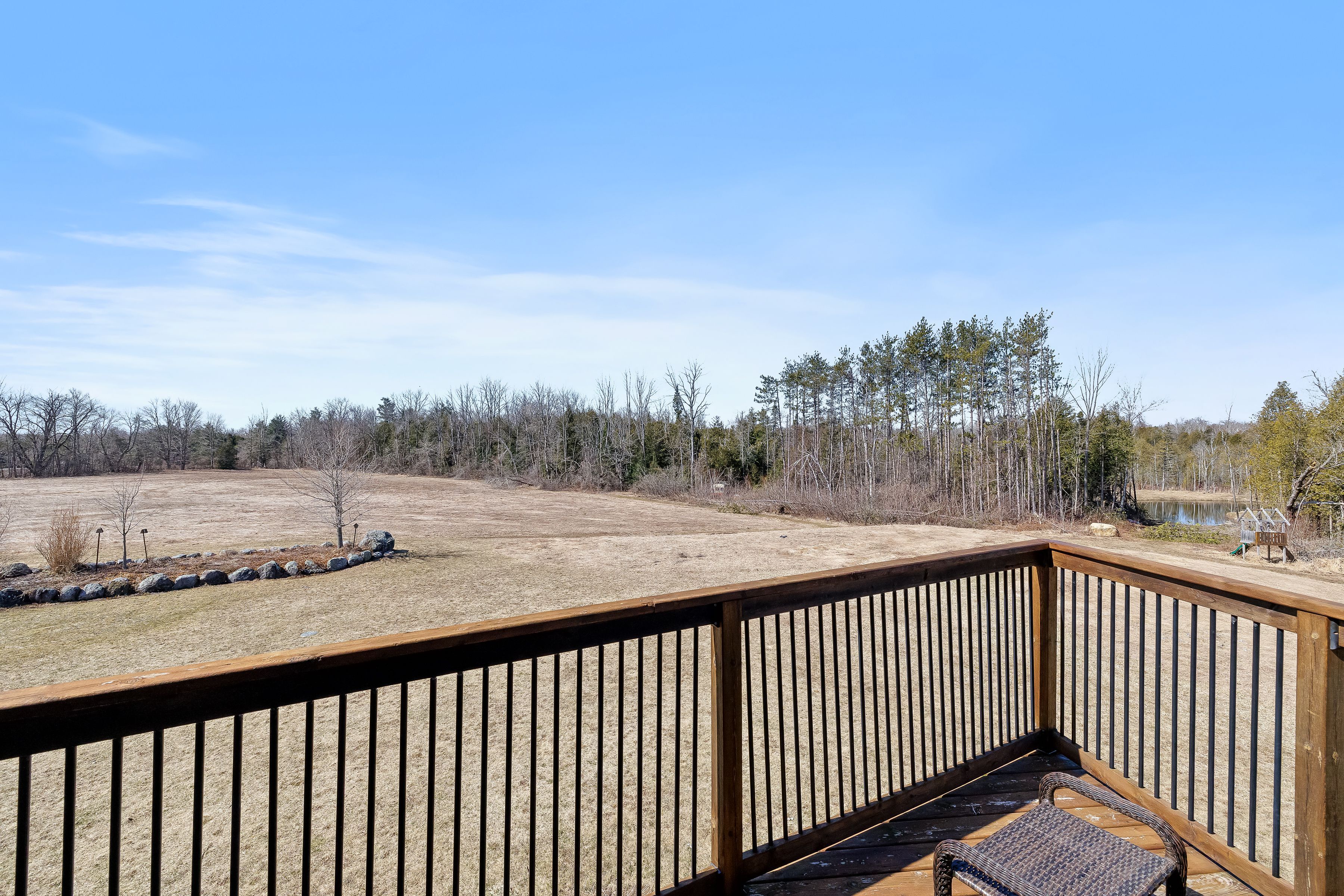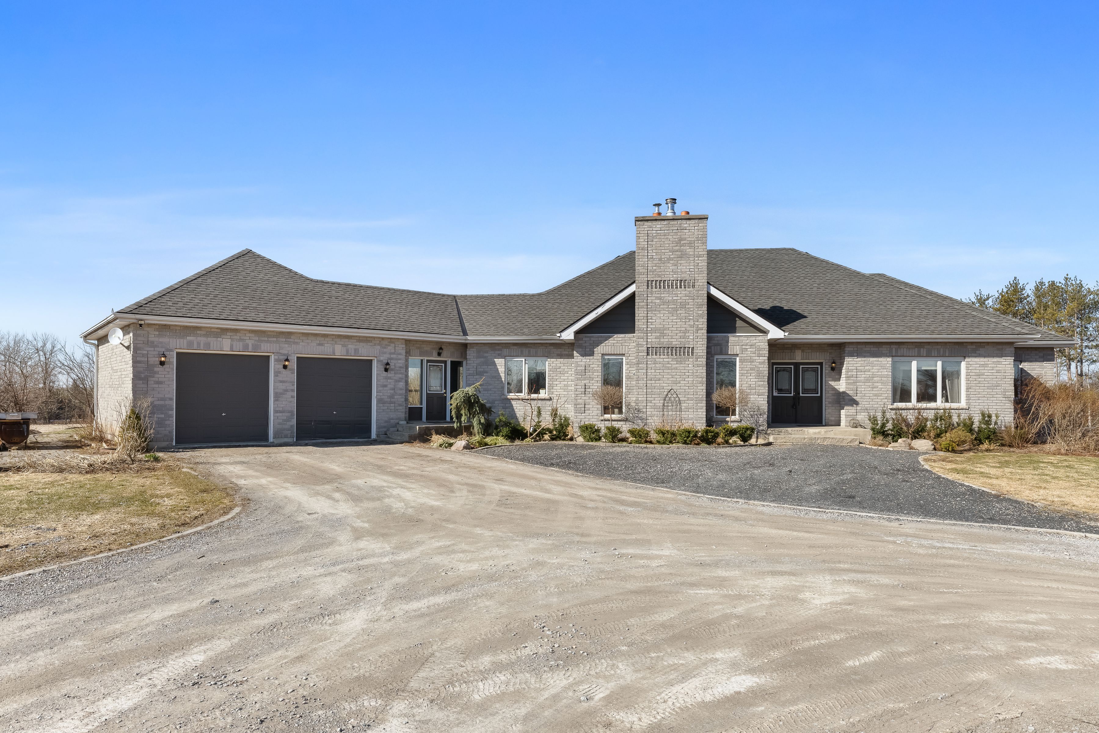 Escape to complete privacy on this stunning 49-acre property featuring a spacious custom 2+3 bedroom, 5-bathroom brick bungalow with over 4,000 total finished square feet of living space (per floor plans), a double garage and walkout basement. Set back from the road with a long, winding driveway through mature forest, this home offers peace, seclusion, and breathtaking views in every direction. The home is thoughtfully designed for comfortable living, with a main floor that includes a sun-filled living room with a wood-burning fireplace, an open-concept kitchen with quartz counters, a dining area, and a breakfast nook plus multiple walkouts to an elevated deck with panoramic views. The primary suite features its own private balcony, walk-in closet, and ensuite, while a second main floor bedroom also enjoys a private ensuite. Main floor laundry and a sunroom connecting to the double garage add everyday convenience. The walkout basement boasts 3 large bedrooms, each with walk-in closets and oversized above-grade windows, including one with an ensuite. A kitchenette on the lower level accomodates large families, multi-generational living or a potential in-law/rental suite. Outdoors, enjoy a large pond, a beautifully landscaped fire pit area, and approximately 14 cleared acres. A 24 x 48 detached workshop with a 12 x 25 addition is perfect for hobbyists or extra storage. The ICF foundation ensures energy efficiency and long-term durability. Ideally located between Port Perry and Lindsay and just a short drive to Lake Scugog, this is the ultimate private country retreat with all the comforts of home.