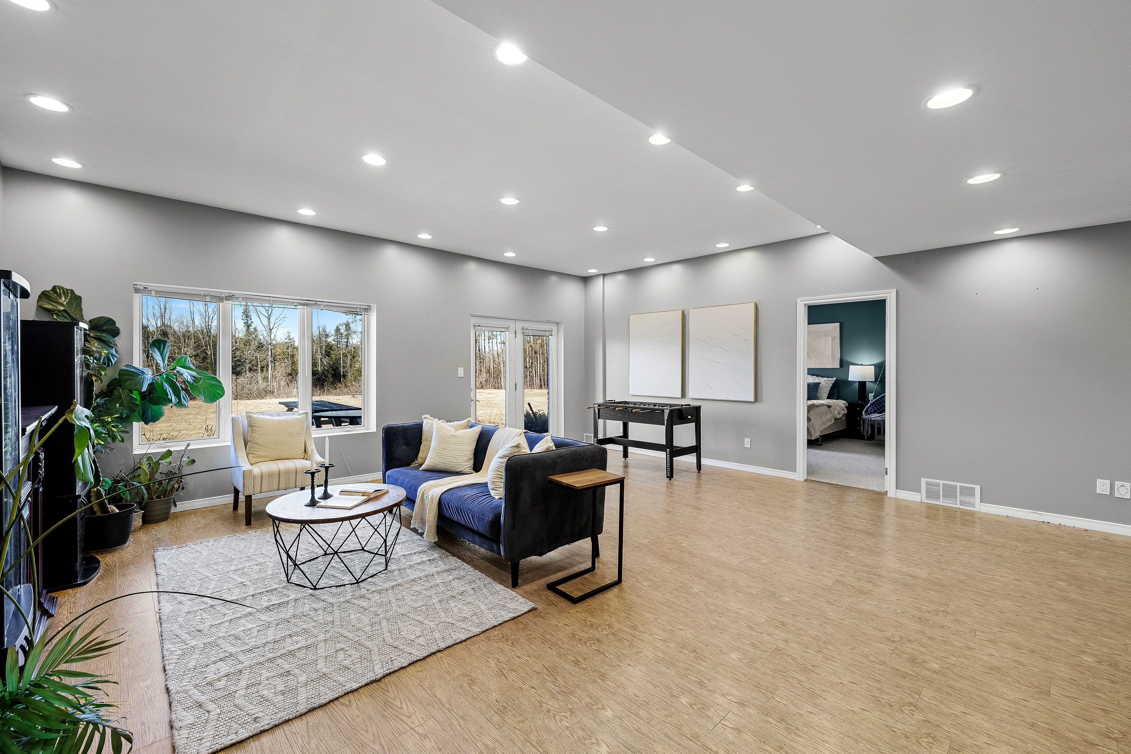 步出式地下室设有三间超大卧室,均配备步入式衣帽间和超规格地面窗户,其中一间含独立卫浴。下层的小厨房区完美满足大家庭、多代同住或潜在姻亲套房/出租单元需求。