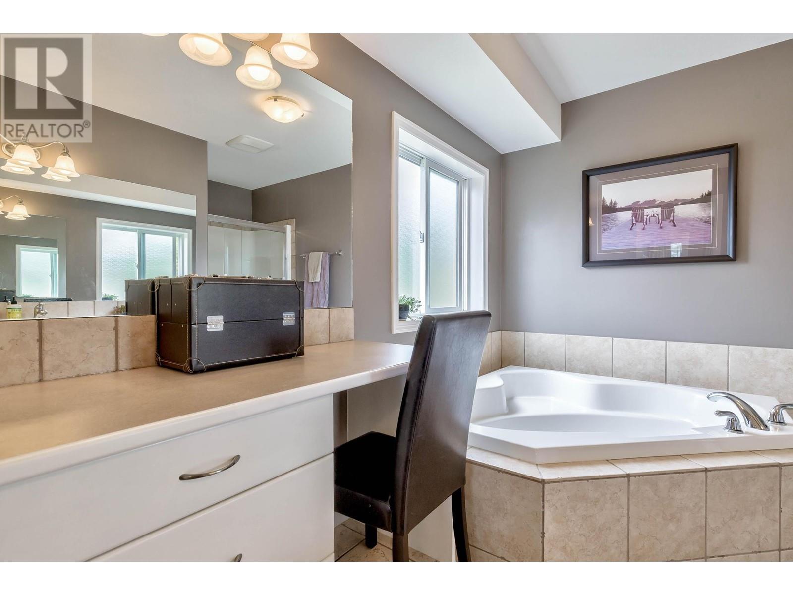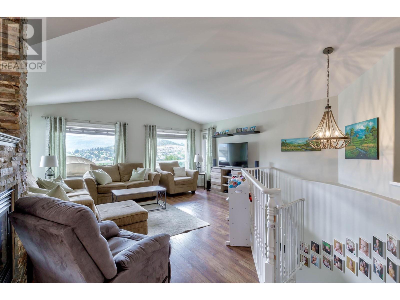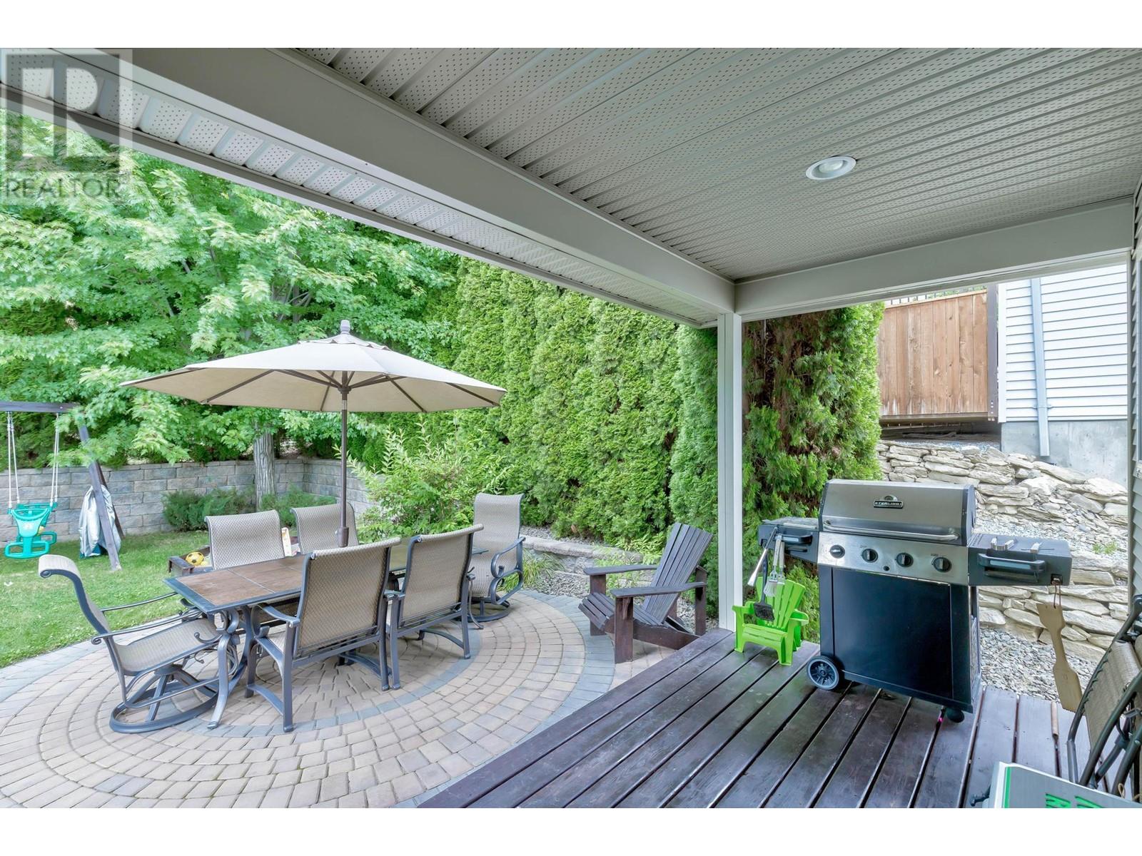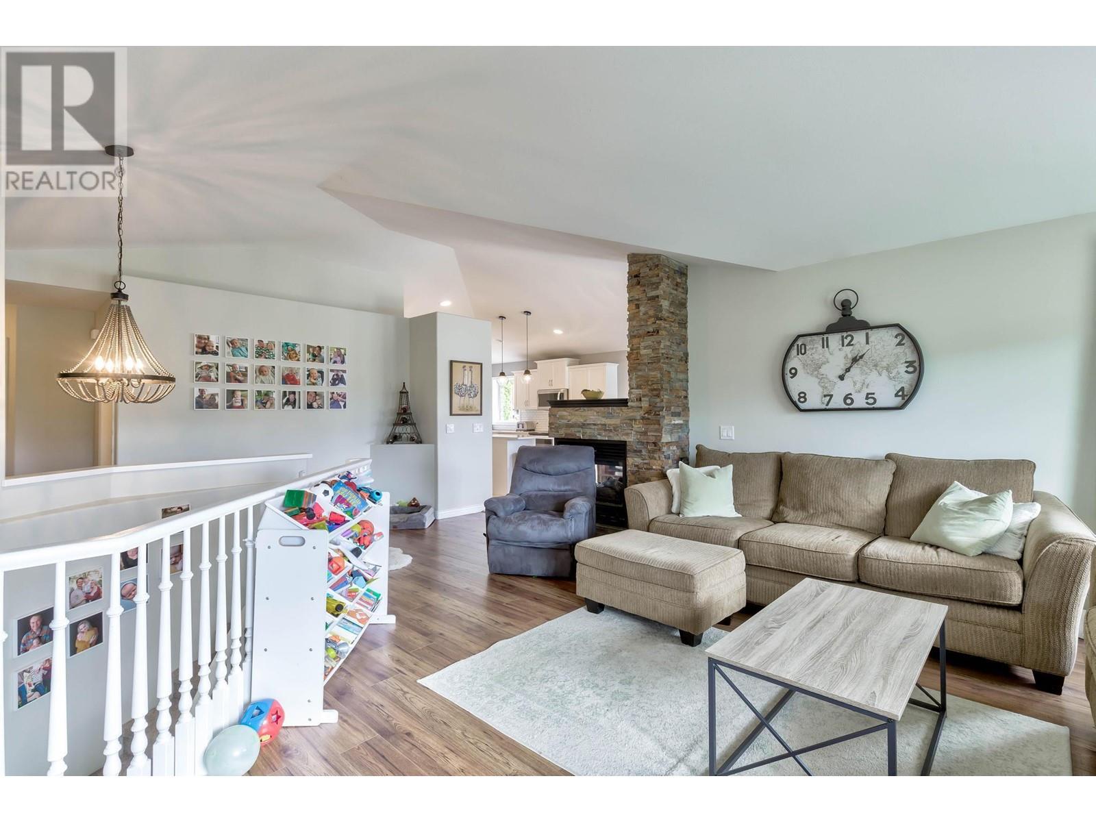 Don’t miss this 5 Bedroom home in a quiet, family friendly neighborhood just minutes from Black Mountain Elementary School and Golf Course, hiking trails and a park! Enter from the front door or the oversized garage to the tiled foyer, where you can head up the elegant curved staircase which takes you to the main level. The living room has large windows and a 3-sided gas fireplace that is shared with the dining room. Step onto the covered front deck with peaceful mountain views from the dining room. The beautiful, recently updated island kitchen boasts quartz countertops, white tile backsplash, newer stainless appliances and tons of cupboard space with built-in pantry! Enjoy easy access from the kitchen to the covered patio and private backyard - Perfect for those summer BBQ’s! You will find 3 bedrooms upstairs on the main level, including the Primary Bedroom featuring a Walk-in closet and 4-piece Ensuite Bathroom with walk-in shower, luxurious soaker tub and makeup vanity. Another full bathroom and convenient main floor laundry room with extra storage and laundry sink complete this level of the home. The ground level has French Doors which lead to the spacious rec room, and 2 huge bedrooms, a 3 piece bathroom featuring a tile walk-in shower and built in sauna, and mechanical room with lots of extra space for storage. Extra parking on the flat driveway. (id:22211)