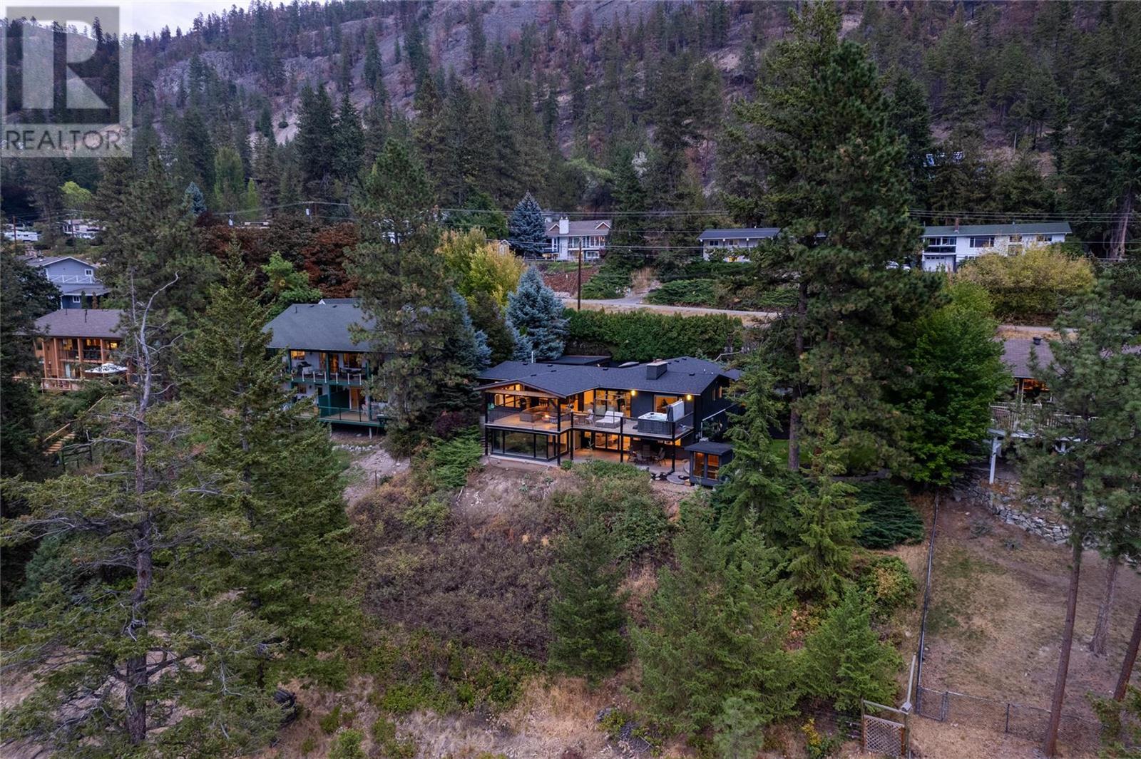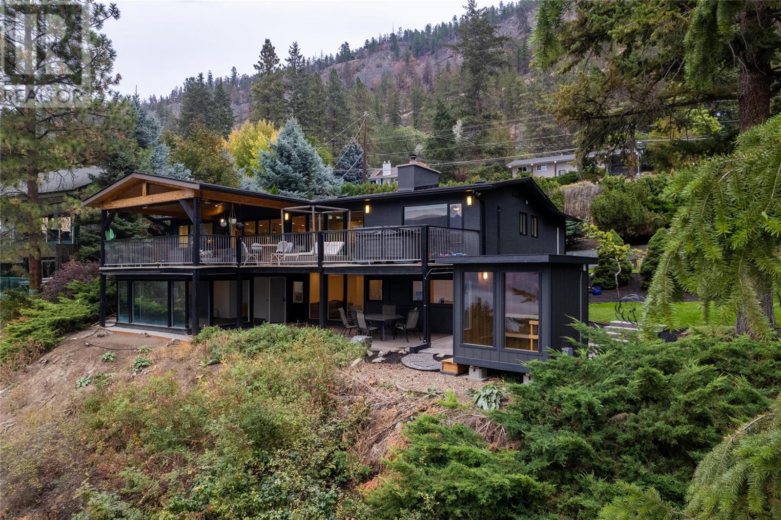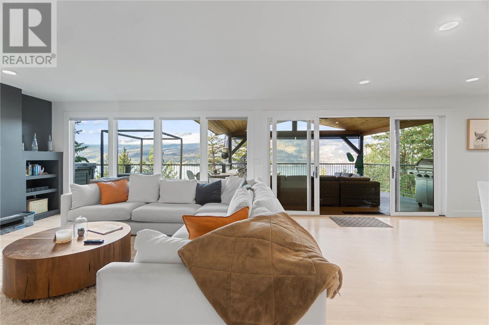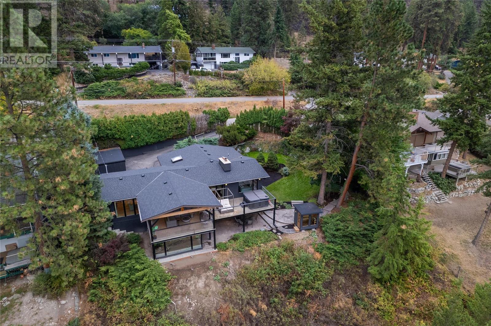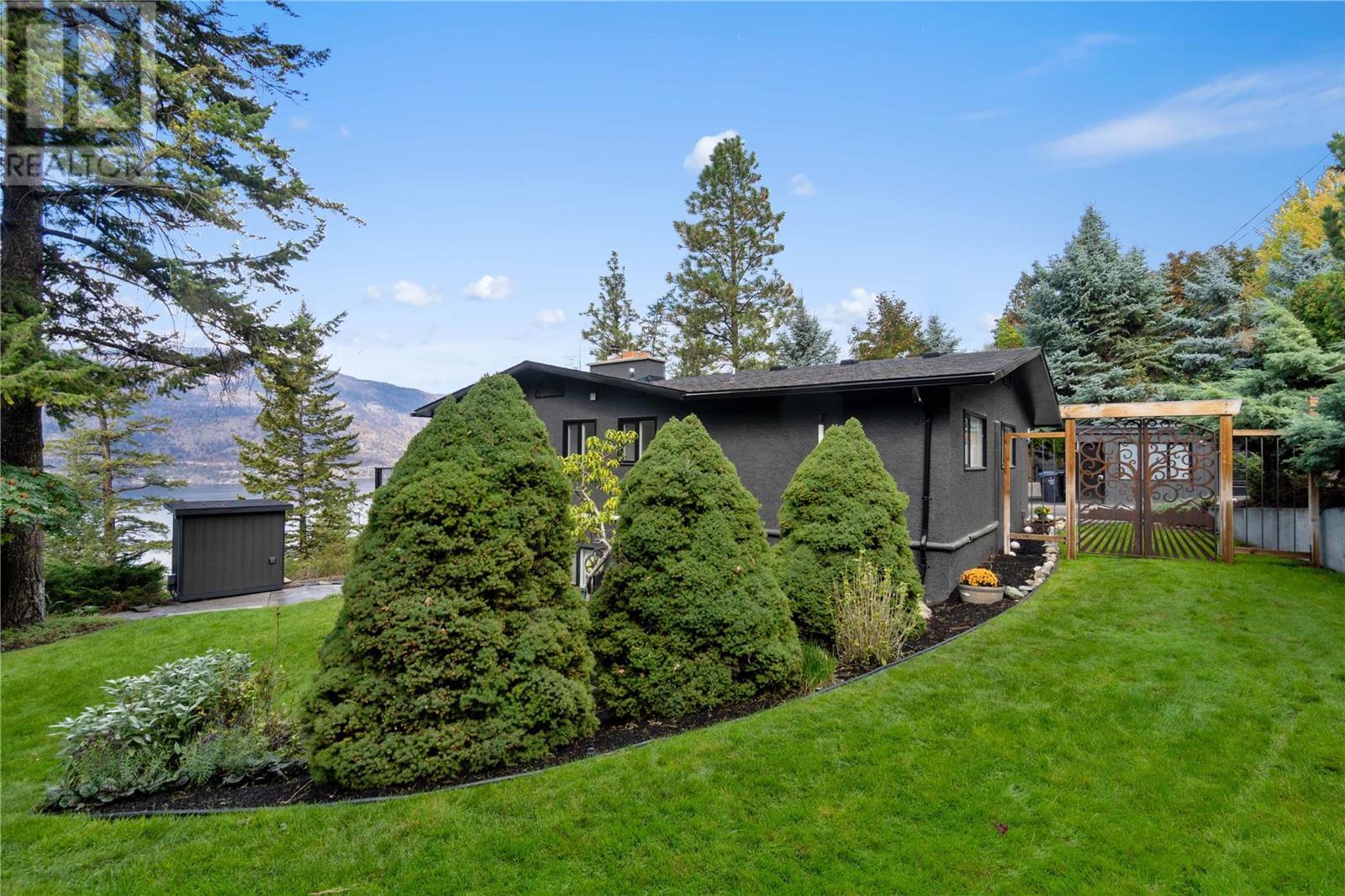 Incredible unobstructed lakeview treehouse just mins from everything. Totally renovated inside and completely furnished with west coast modern lakehouse design. Big lake+sunset views with no home in front + room for pool. Ideal yard for family, w/mature trees, garden on this large .40 ac lot. Perched overlooking Okanagan Lake, this home Feels like a private cottage or retreat yet under 10 mins to downtown and 5 mins to the lake. Convert or expand the garage/shop. Recent updates include paint, roof, a/c, floors, home automation/security. Open chefs kitchen w/quartz counters, custom cabinets, s/s appliances, wine fridge, dining seats 12+. 3 bdrms on main level, 2 on lower level, plus gym and large storage room. Covered deck with bbq, fire table hot tub. Covered walk-out lower deck with lakeview sauna. Warm entryway w/skylight. Great neighbors, the ultimate family home in a great neighborhood. Walk directly out to Lochview trail. Explore short term rental possibilities to offset your investment. The community shares deed access to a private 200 foot beach off Lochview Road. (id:22211)
