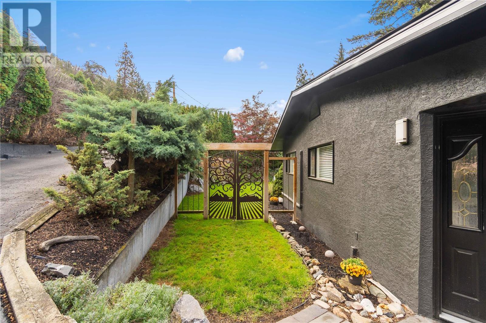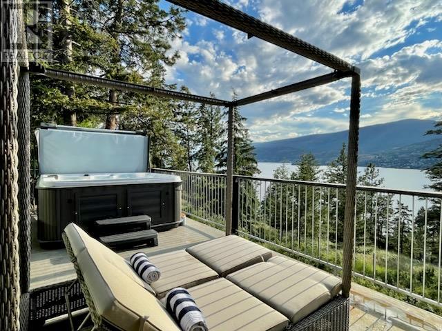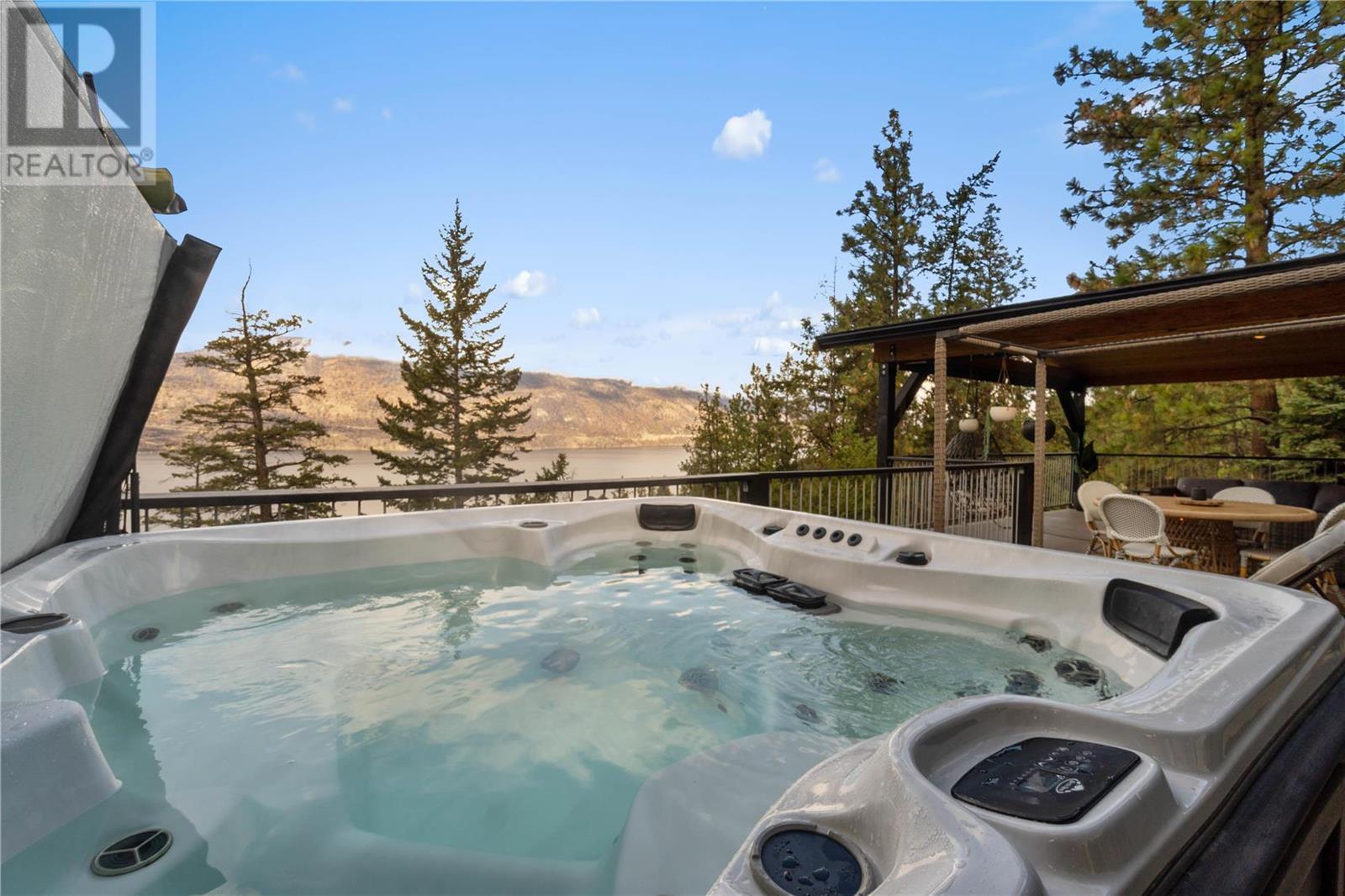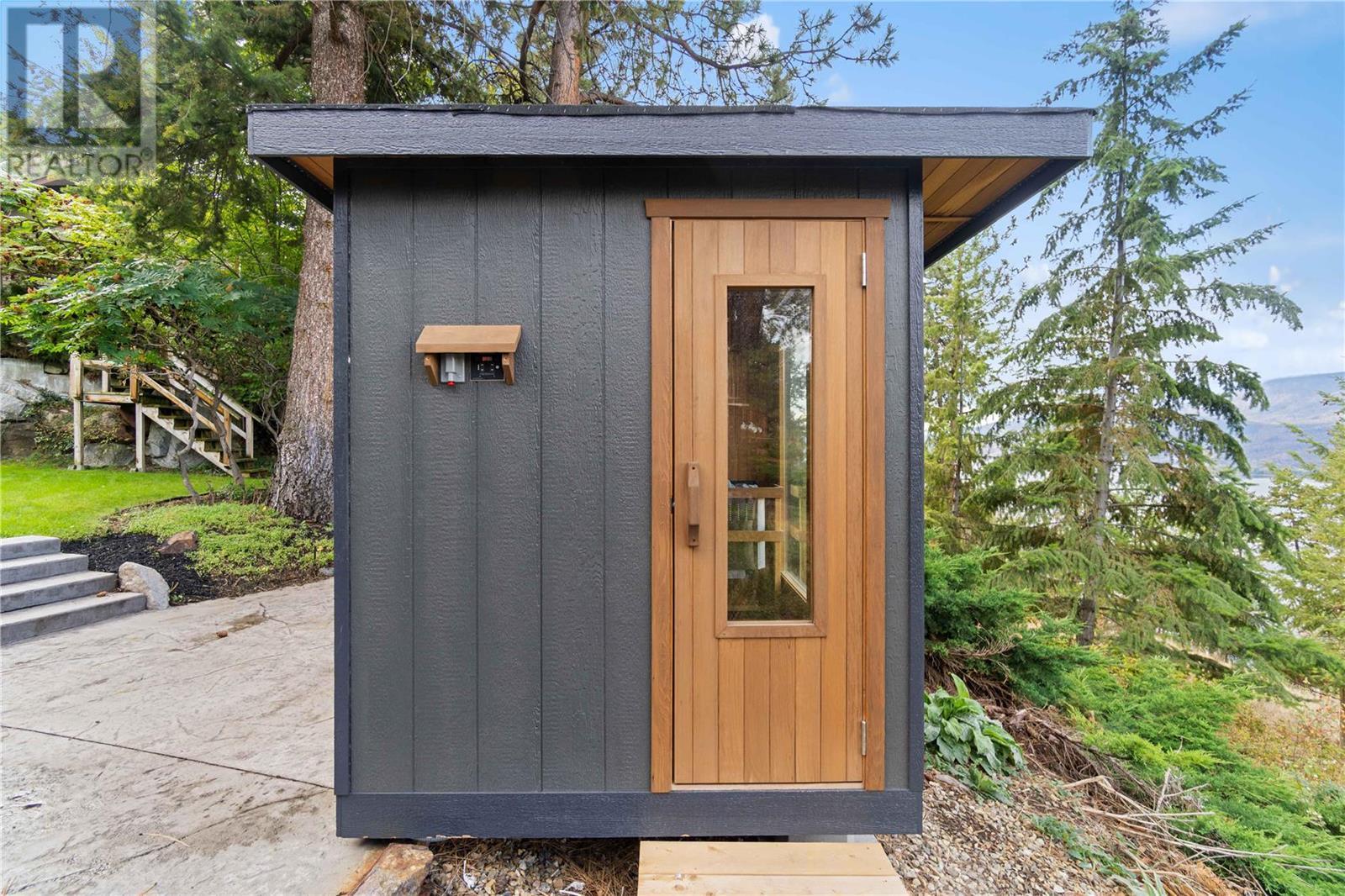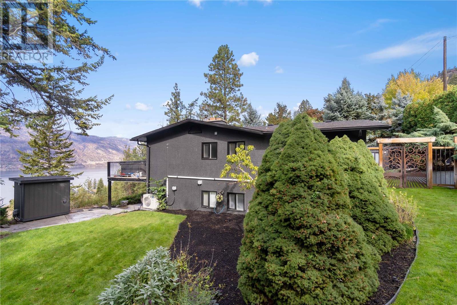 Incredible unobstructed lakeview treehouse just mins from everything. Totally renovated inside and completely furnished with west coast modern lakehouse design. Big lake+sunset views with no home in front + room for pool. Ideal yard for family, w/mature trees, garden on this large .40 ac lot. Perched overlooking Okanagan Lake, this home Feels like a private cottage or retreat yet under 10 mins to downtown and 5 mins to the lake. Convert or expand the garage/shop. Recent updates include paint, roof, a/c, floors, home automation/security. Open chefs kitchen w/quartz counters, custom cabinets, s/s appliances, wine fridge, dining seats 12+. 3 bdrms on main level, 2 on lower level, plus gym and large storage room. Covered deck with bbq, fire table hot tub. Covered walk-out lower deck with lakeview sauna. Warm entryway w/skylight. Great neighbors, the ultimate family home in a great neighborhood. Walk directly out to Lochview trail. Explore short term rental possibilities to offset your investment. The community shares deed access to a private 200 foot beach off Lochview Road. (id:22211)
