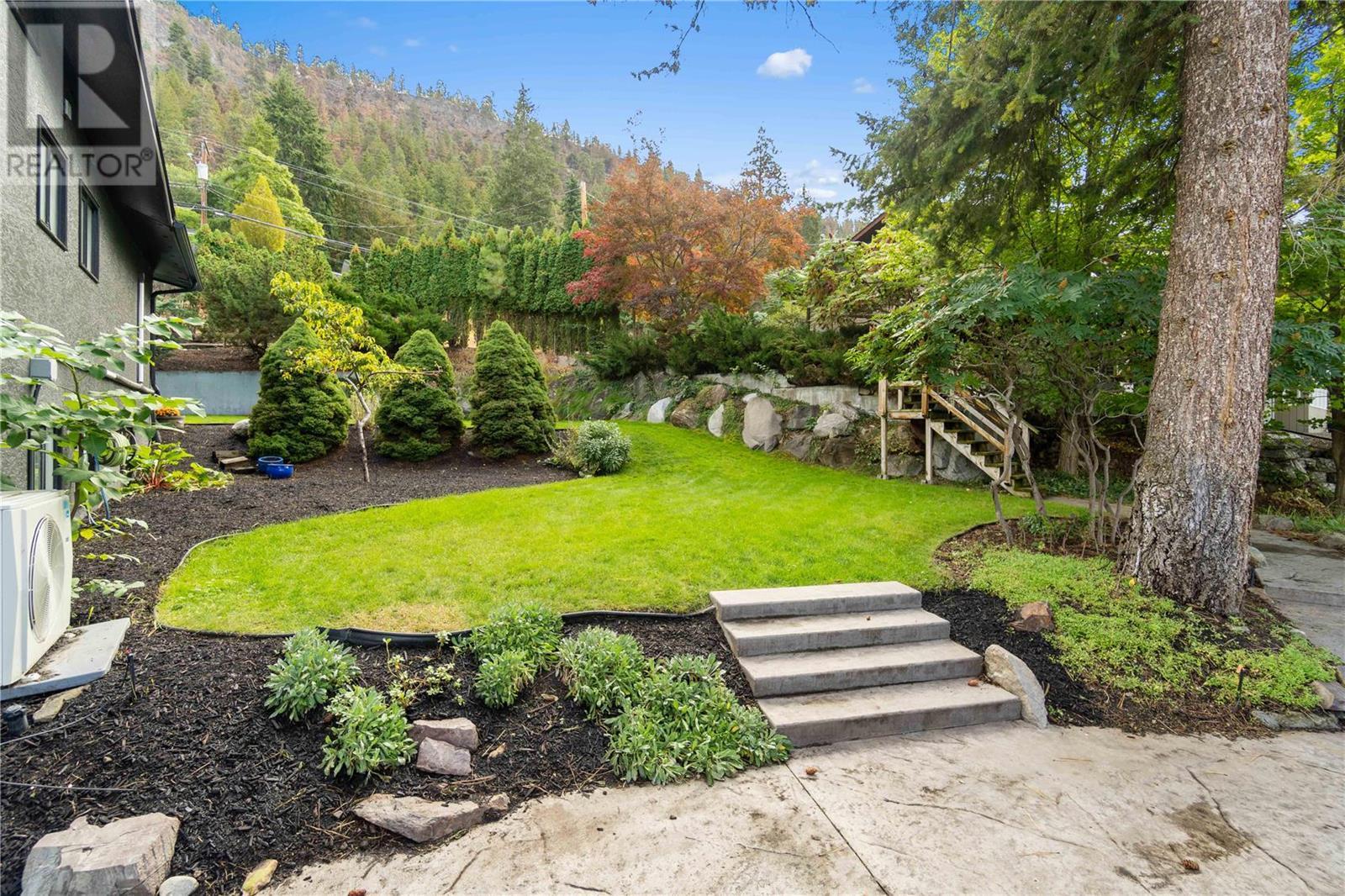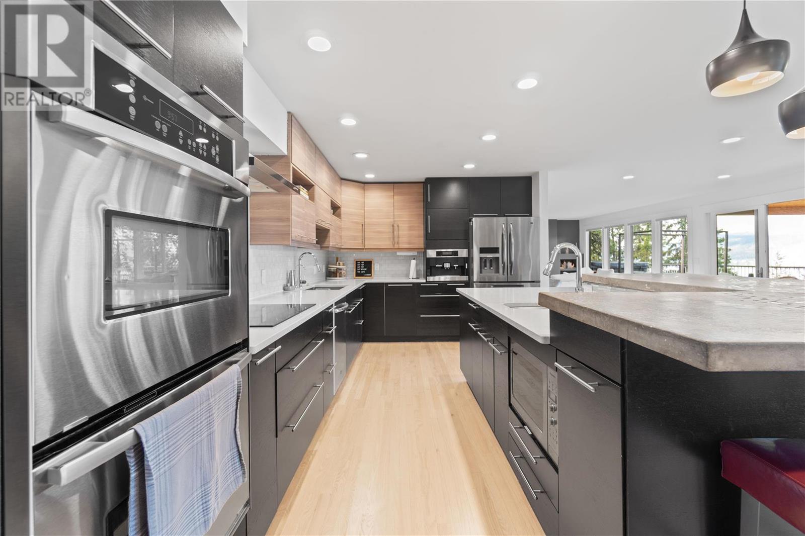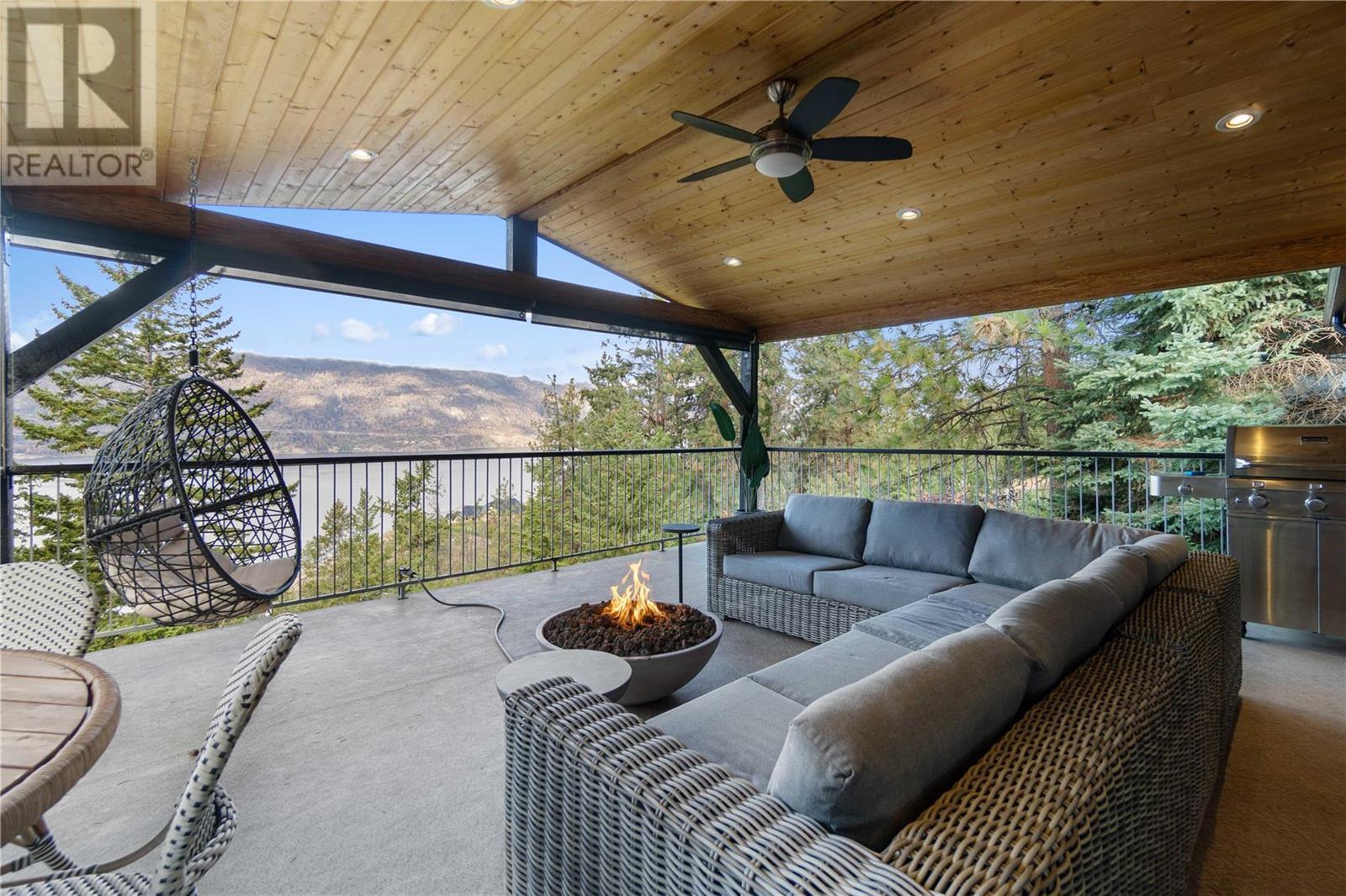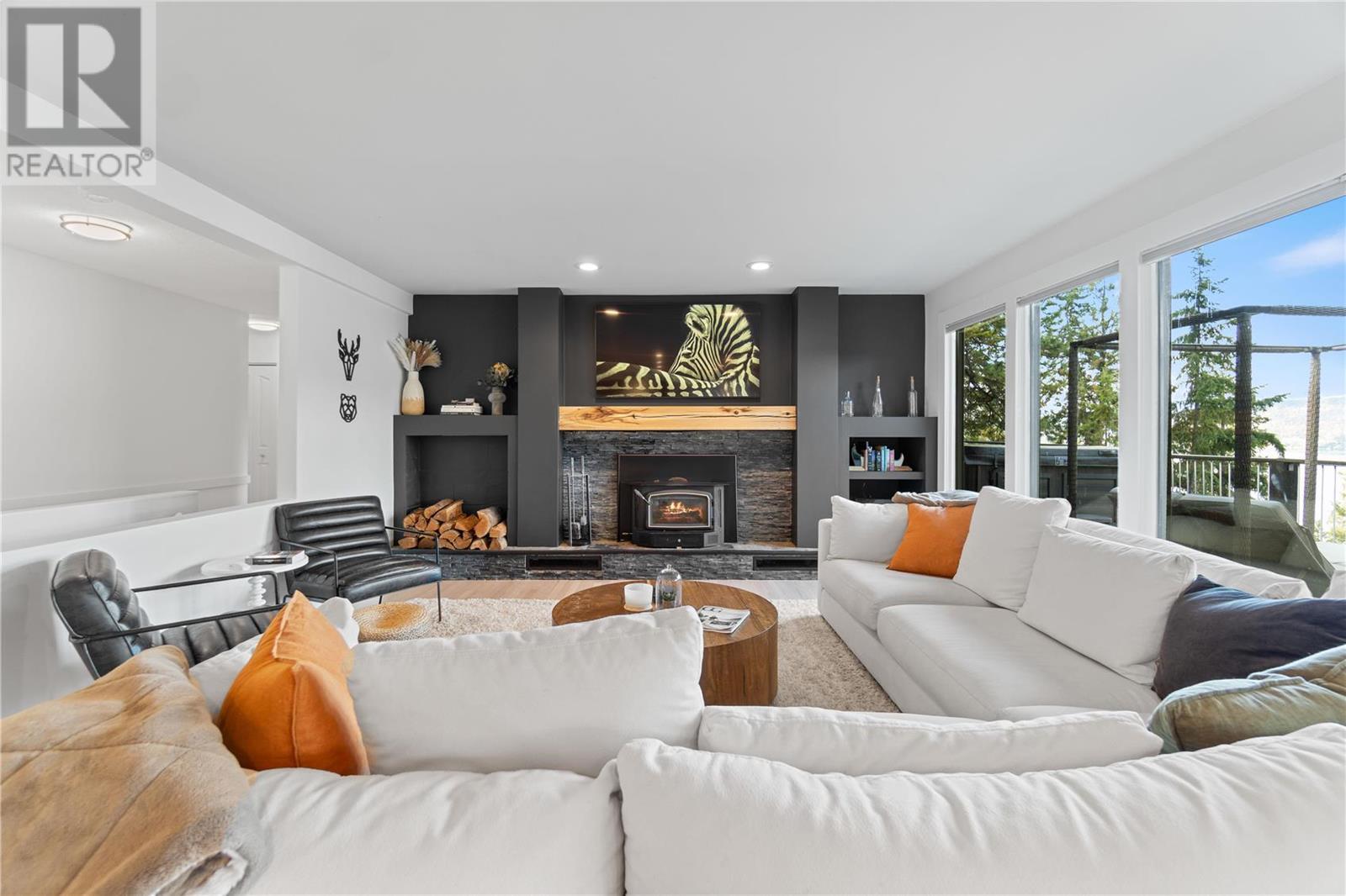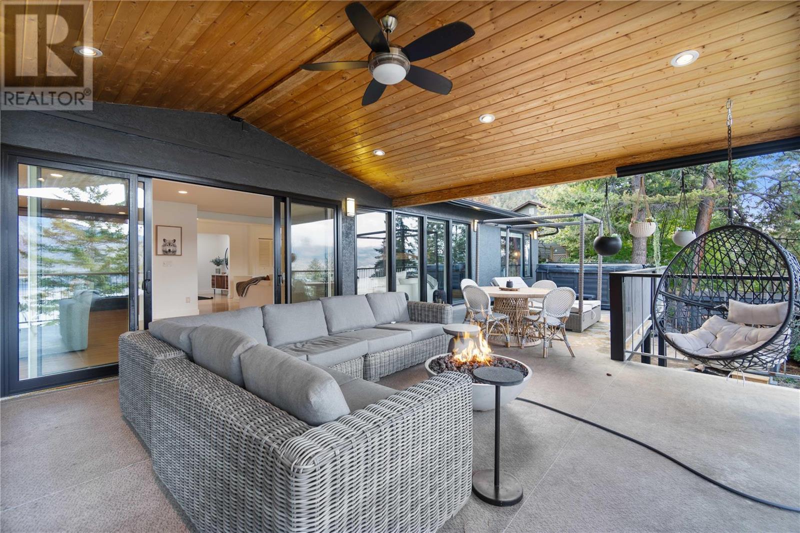 Incredible unobstructed lakeview treehouse just mins from everything. Totally renovated inside and completely furnished with west coast modern lakehouse design. Big lake+sunset views with no home in front + room for pool. Ideal yard for family, w/mature trees, garden on this large .40 ac lot. Perched overlooking Okanagan Lake, this home Feels like a private cottage or retreat yet under 10 mins to downtown and 5 mins to the lake. Convert or expand the garage/shop. Recent updates include paint, roof, a/c, floors, home automation/security. Open chefs kitchen w/quartz counters, custom cabinets, s/s appliances, wine fridge, dining seats 12+. 3 bdrms on main level, 2 on lower level, plus gym and large storage room. Covered deck with bbq, fire table hot tub. Covered walk-out lower deck with lakeview sauna. Warm entryway w/skylight. Great neighbors, the ultimate family home in a great neighborhood. Walk directly out to Lochview trail. Explore short term rental possibilities to offset your investment. The community shares deed access to a private 200 foot beach off Lochview Road. (id:22211)