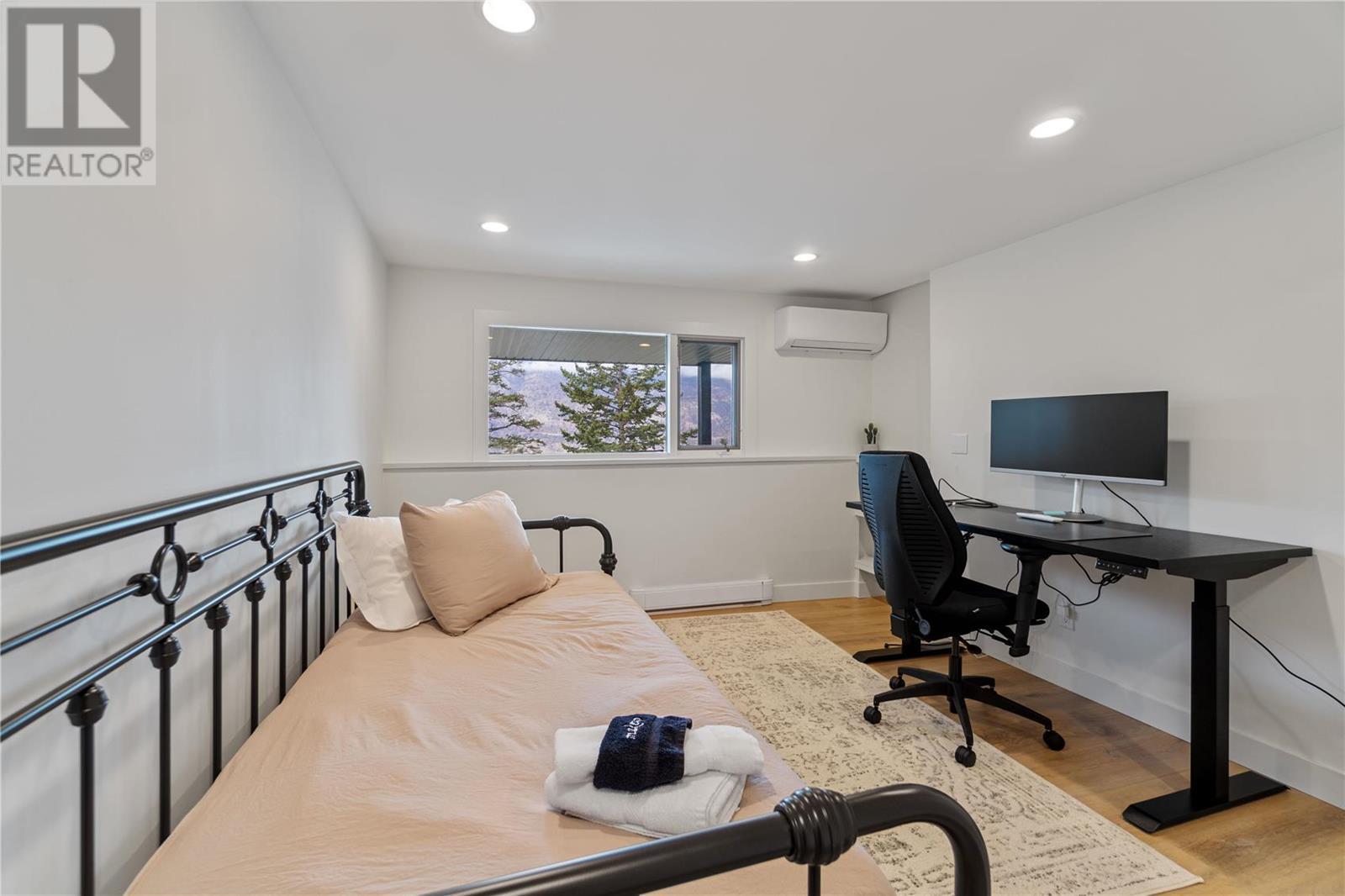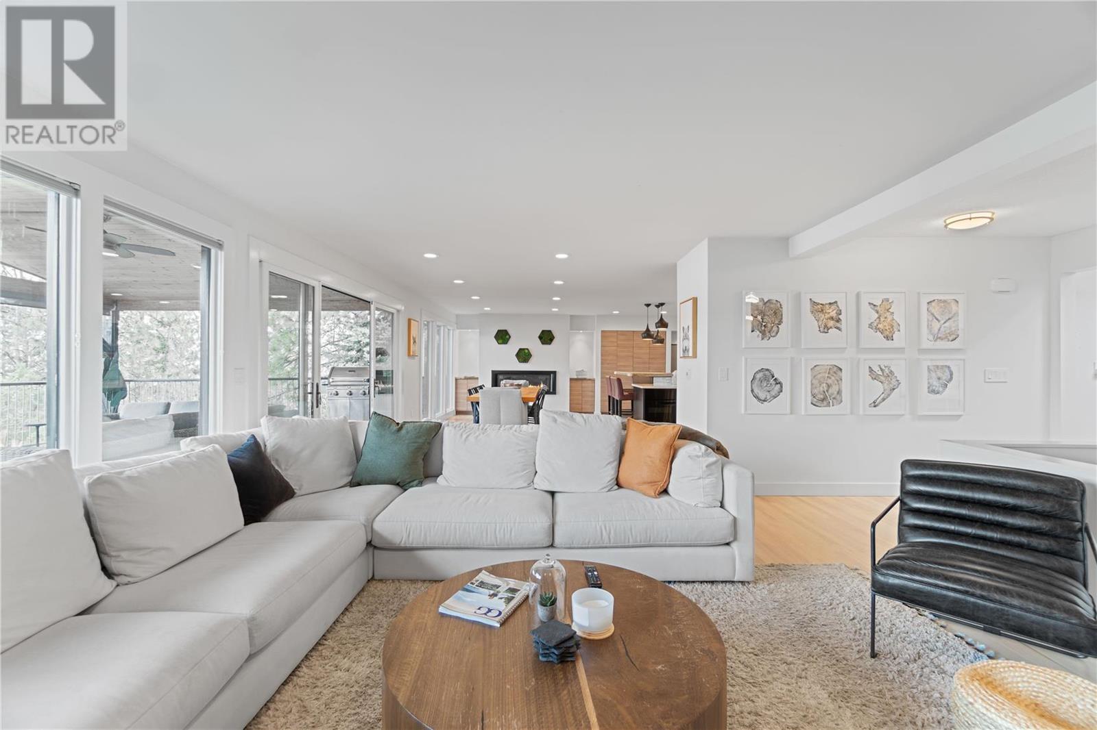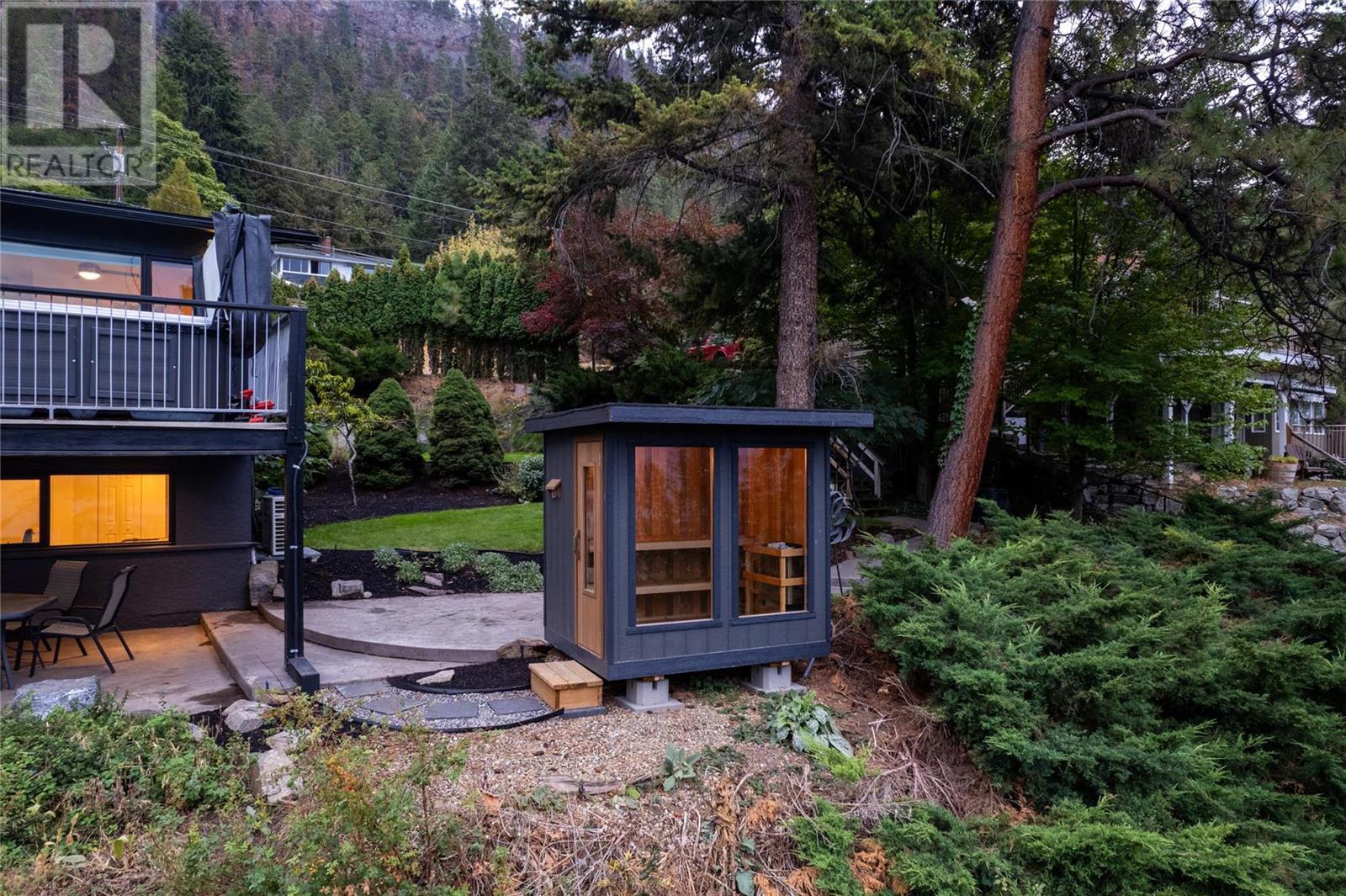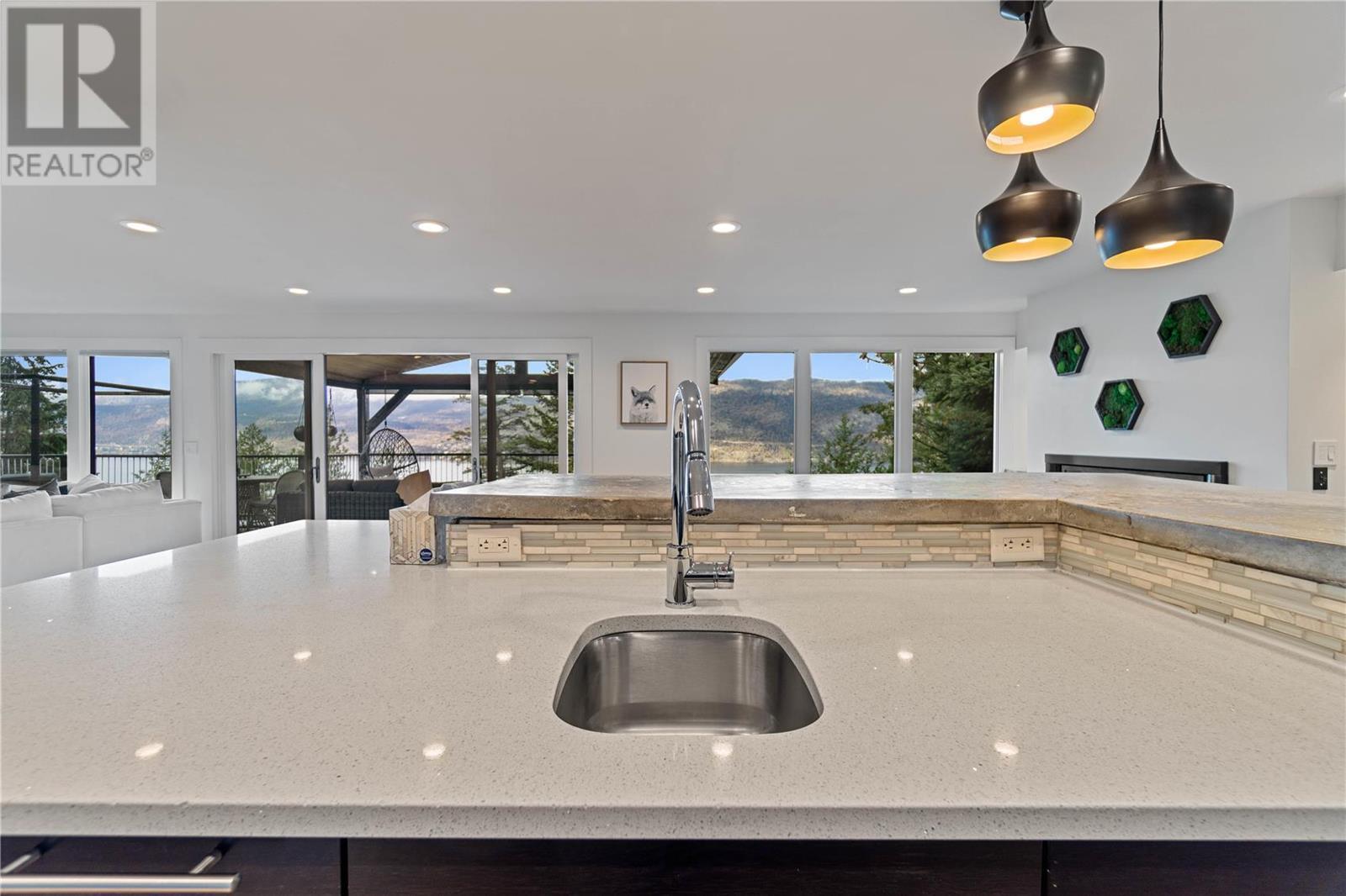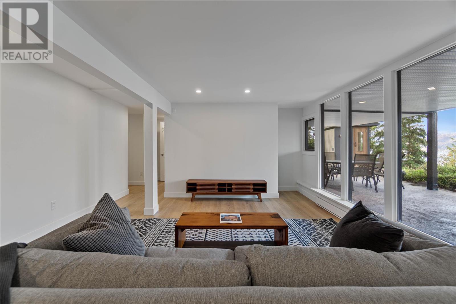 Incredible unobstructed lakeview treehouse just mins from everything. Totally renovated inside and completely furnished with west coast modern lakehouse design. Big lake+sunset views with no home in front + room for pool. Ideal yard for family, w/mature trees, garden on this large .40 ac lot. Perched overlooking Okanagan Lake, this home Feels like a private cottage or retreat yet under 10 mins to downtown and 5 mins to the lake. Convert or expand the garage/shop. Recent updates include paint, roof, a/c, floors, home automation/security. Open chefs kitchen w/quartz counters, custom cabinets, s/s appliances, wine fridge, dining seats 12+. 3 bdrms on main level, 2 on lower level, plus gym and large storage room. Covered deck with bbq, fire table hot tub. Covered walk-out lower deck with lakeview sauna. Warm entryway w/skylight. Great neighbors, the ultimate family home in a great neighborhood. Walk directly out to Lochview trail. Explore short term rental possibilities to offset your investment. The community shares deed access to a private 200 foot beach off Lochview Road. (id:22211)