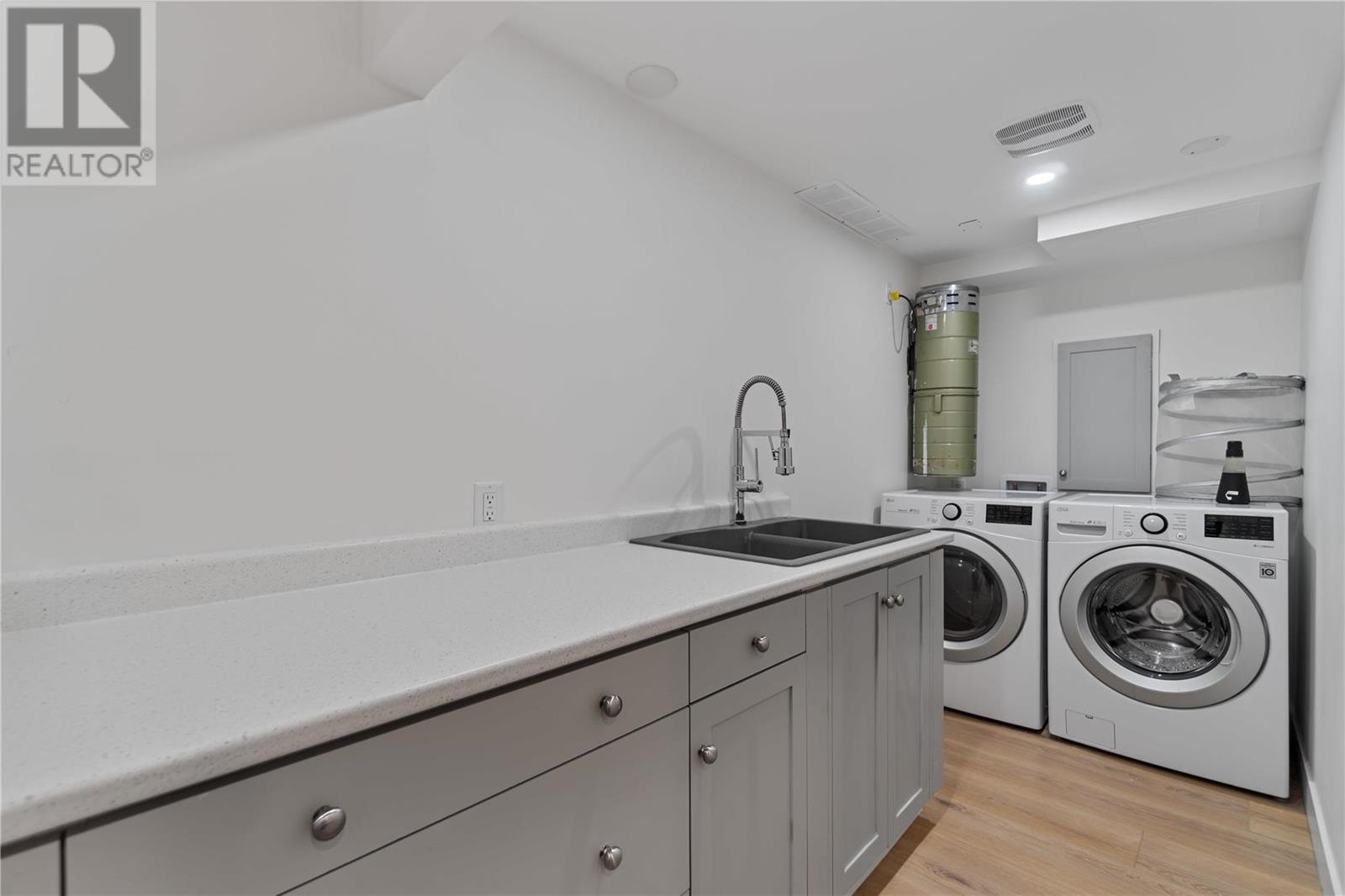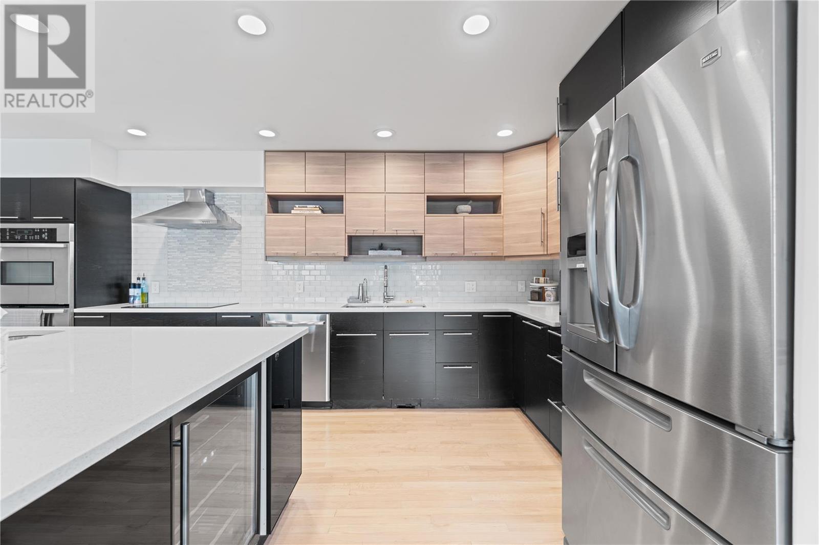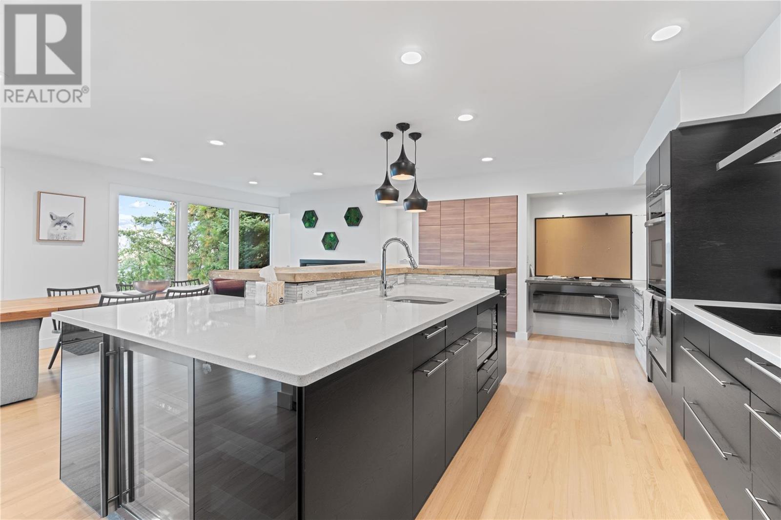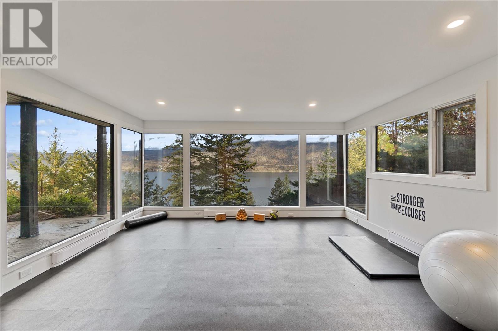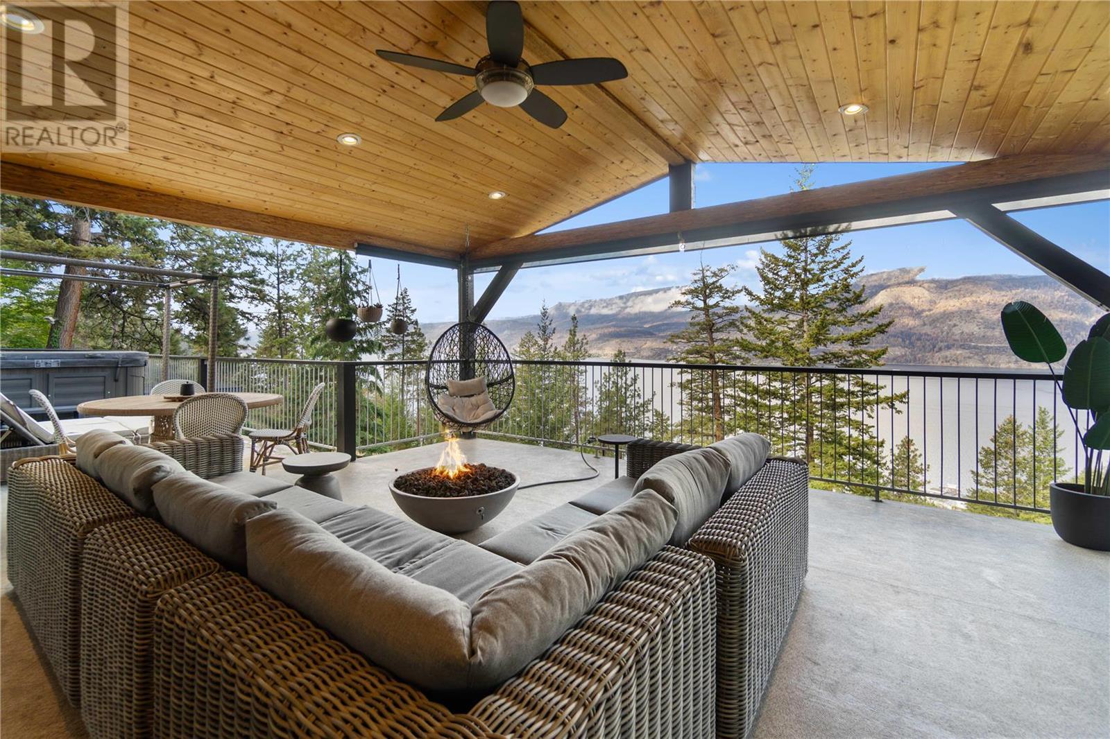 Incredible unobstructed lakeview treehouse just mins from everything. Totally renovated inside and completely furnished with west coast modern lakehouse design. Big lake+sunset views with no home in front + room for pool. Ideal yard for family, w/mature trees, garden on this large .40 ac lot. Perched overlooking Okanagan Lake, this home Feels like a private cottage or retreat yet under 10 mins to downtown and 5 mins to the lake. Convert or expand the garage/shop. Recent updates include paint, roof, a/c, floors, home automation/security. Open chefs kitchen w/quartz counters, custom cabinets, s/s appliances, wine fridge, dining seats 12+. 3 bdrms on main level, 2 on lower level, plus gym and large storage room. Covered deck with bbq, fire table hot tub. Covered walk-out lower deck with lakeview sauna. Warm entryway w/skylight. Great neighbors, the ultimate family home in a great neighborhood. Walk directly out to Lochview trail. Explore short term rental possibilities to offset your investment. The community shares deed access to a private 200 foot beach off Lochview Road. (id:22211)