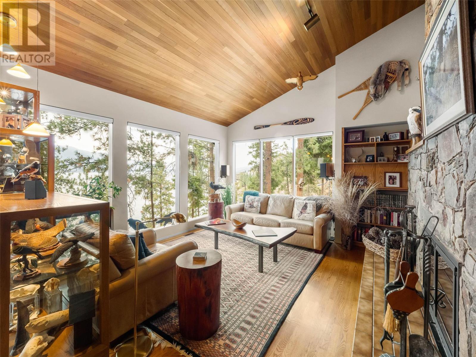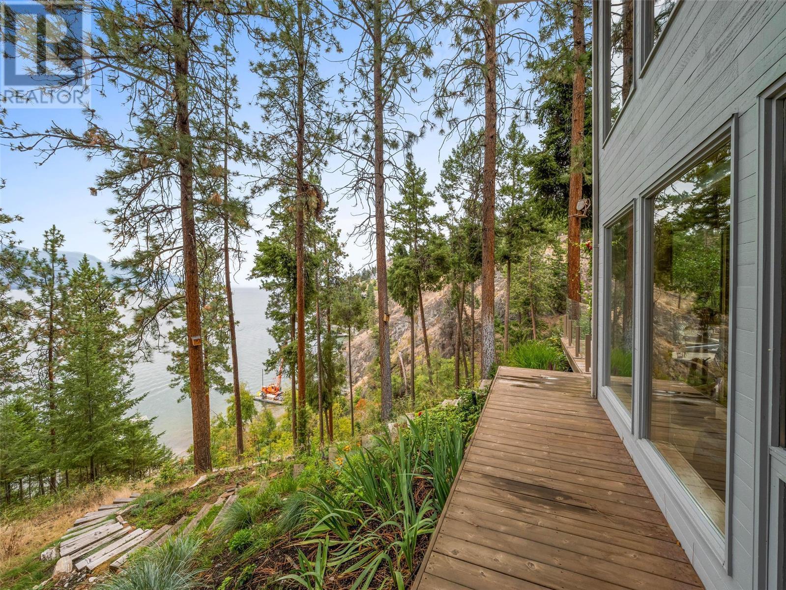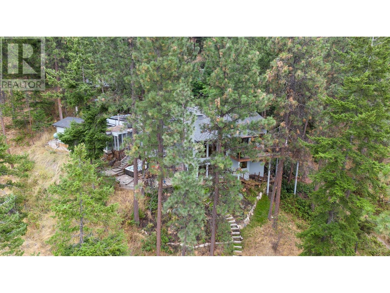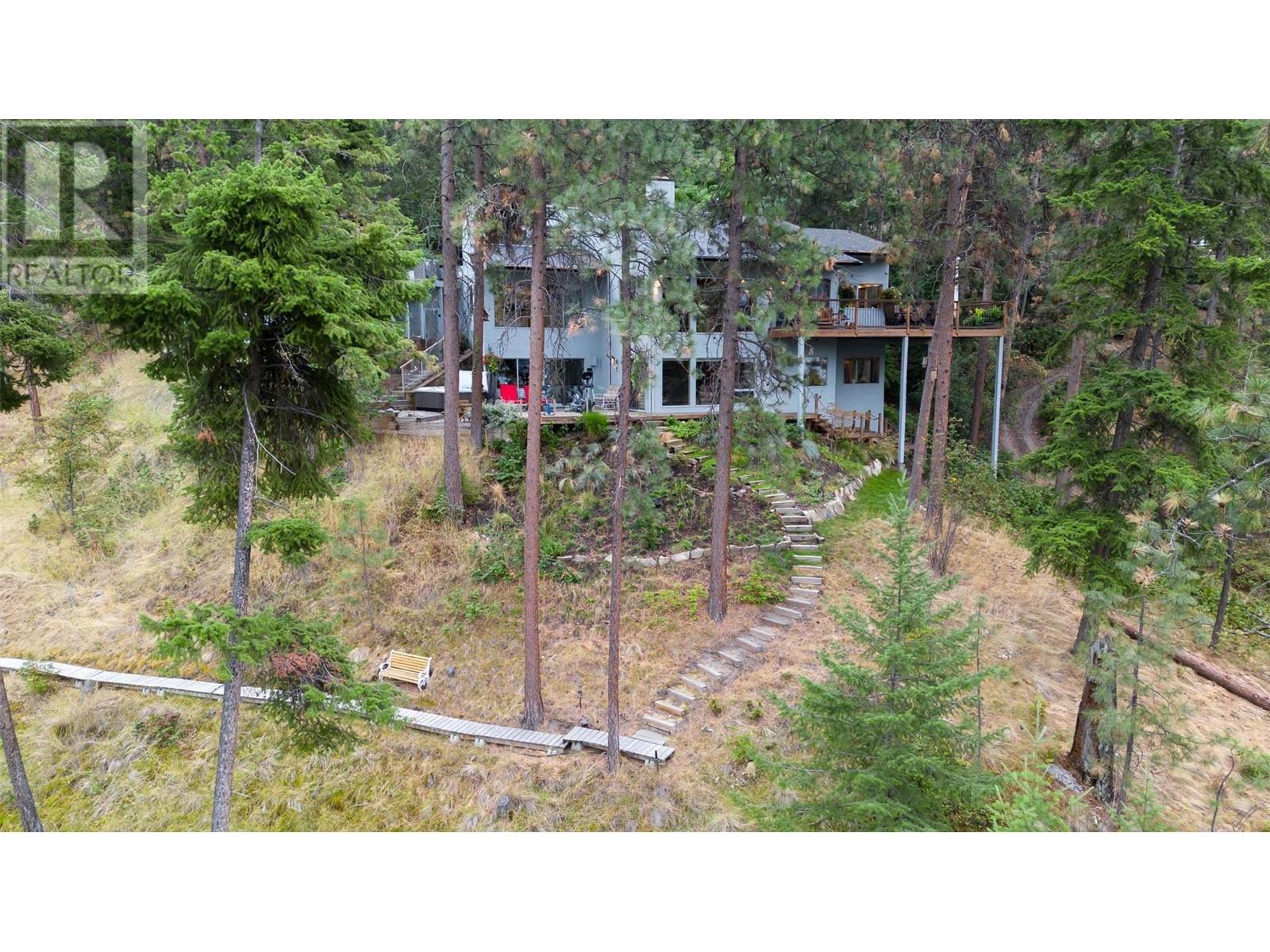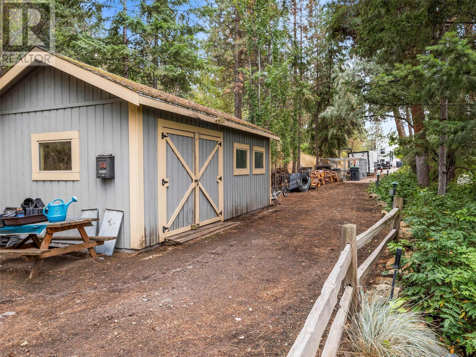 A rare offering! This unique and private 5-acre estate in coveted McKinley Landing, lovingly cared for by its original owners, is now on the market for the first time. The property features an architecturally stunning 3-bed, 3-bath home designed by Dan Pretty with 2,500+ sq. ft. of living space. This sanctuary combines serene country living with easy access to city amenities. The extension of North Clifton Road into McKinley means this property will soon be a quick car ride from downtown. Enjoy a private beachfront with dock, deck space, outdoor kitchen, and covered sleeping area perfect for Okanagan summers. The beach can be accessed by a footpath along the stream or by a cart path. Active farm status keeps property taxes low and allows for income from an established apiary, raspberry, and tree farm. An extensive irrigation system supports agricultural use, landscaping, and fire prevention. This property is a bird-watcher’s paradise with mature trees and a natural stream surrounded by lush greenery, making the land a haven for wildlife. The home features vaulted ceilings, natural wood, a stone fireplace upstairs, and an antique brick fireplace in the family room, a generous master suite, loft study with rolling ladder, and incredible views from every window. There is an upper deck adjoining the kitchen and a lower deck with a hot tub off the master suite. There is a heated workshop, storage sheds, a trailer pad, and ample parking. Move in or plan your new dream home! (id:22211)