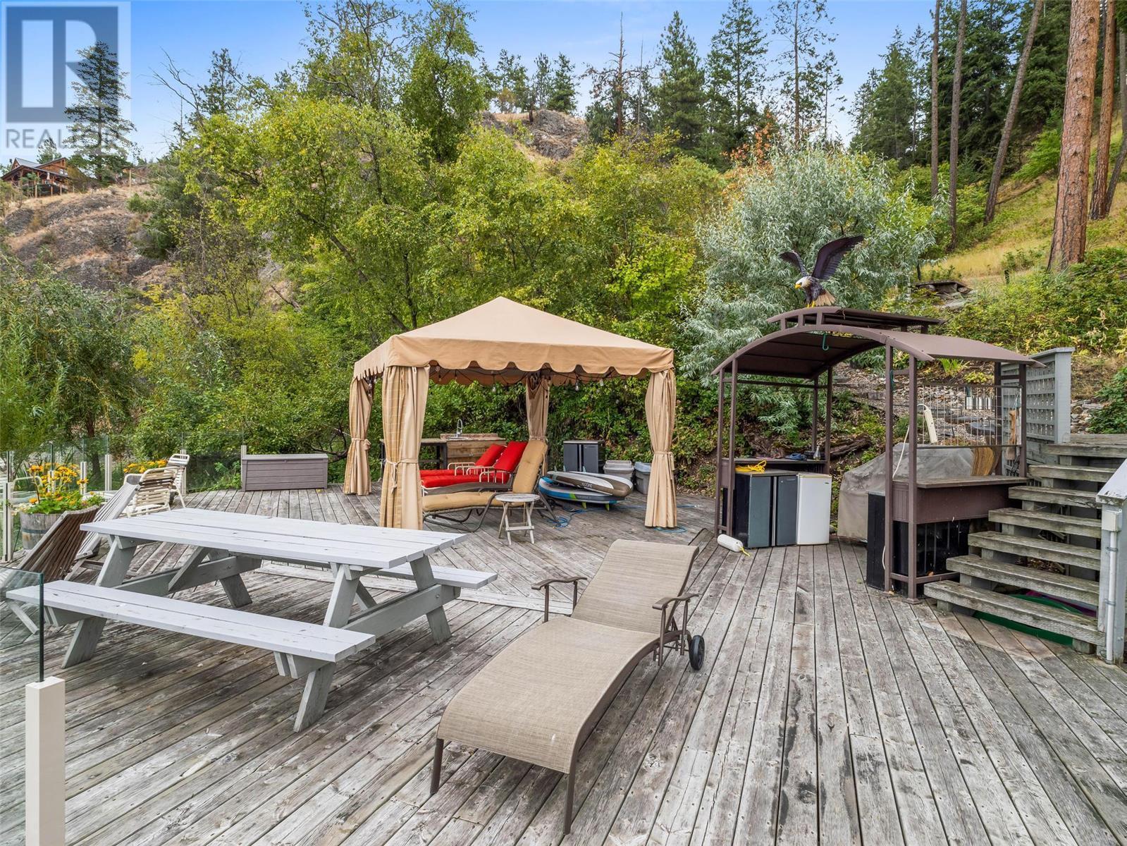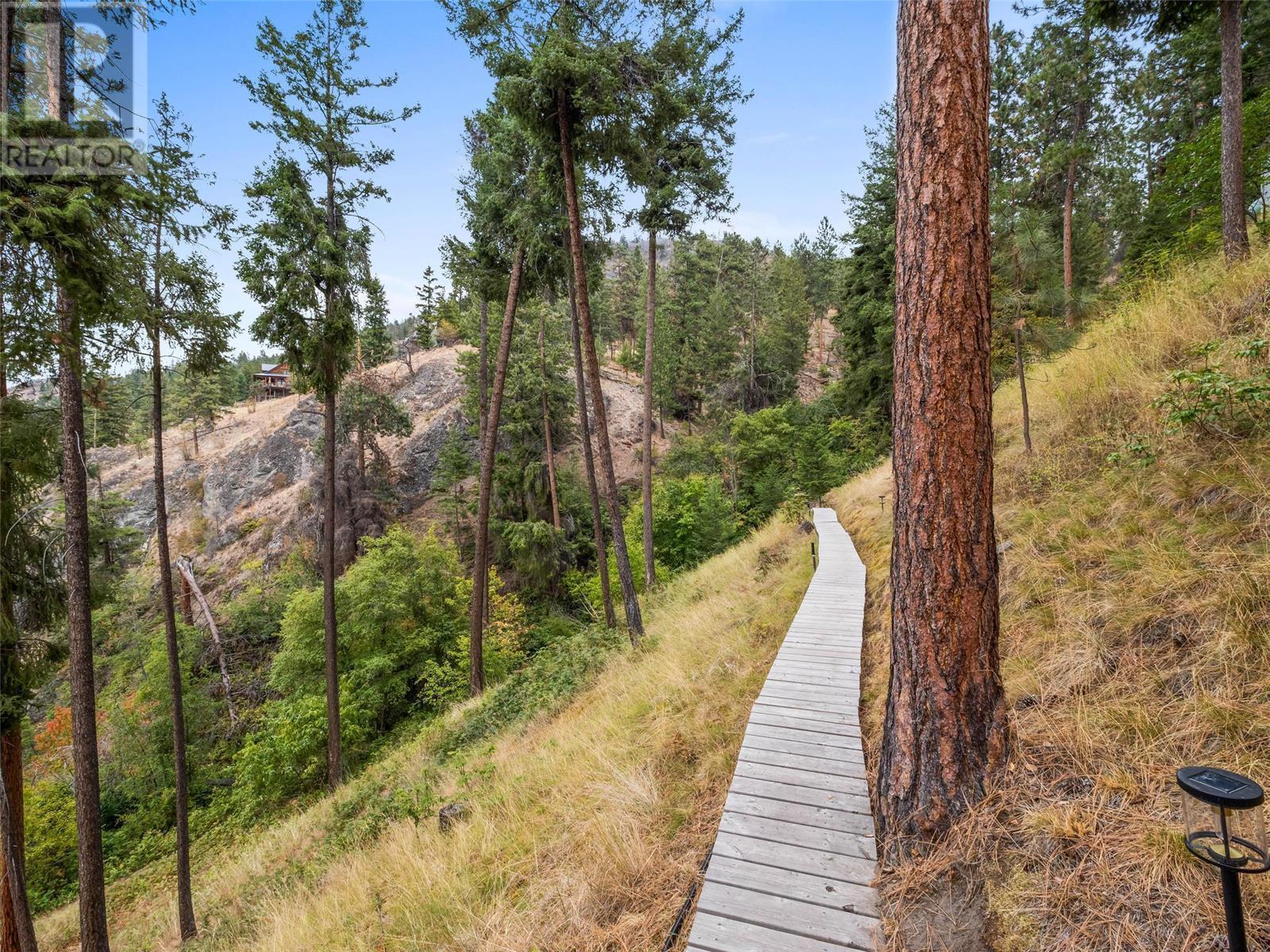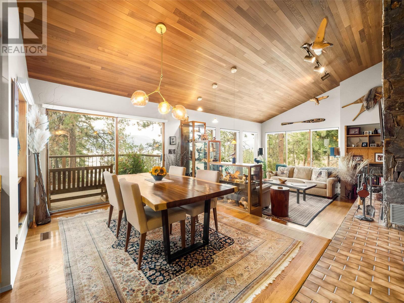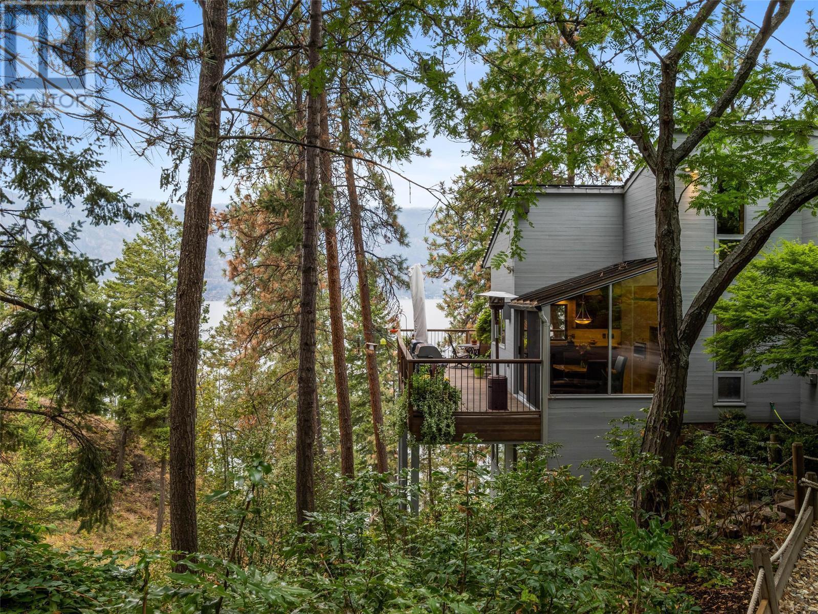 A rare offering! This unique and private 5-acre estate in coveted McKinley Landing, lovingly cared for by its original owners, is now on the market for the first time. The property features an architecturally stunning 3-bed, 3-bath home designed by Dan Pretty with 2,500+ sq. ft. of living space. This sanctuary combines serene country living with easy access to city amenities. The extension of North Clifton Road into McKinley means this property will soon be a quick car ride from downtown. Enjoy a private beachfront with dock, deck space, outdoor kitchen, and covered sleeping area perfect for Okanagan summers. The beach can be accessed by a footpath along the stream or by a cart path. Active farm status keeps property taxes low and allows for income from an established apiary, raspberry, and tree farm. An extensive irrigation system supports agricultural use, landscaping, and fire prevention. This property is a bird-watcher’s paradise with mature trees and a natural stream surrounded by lush greenery, making the land a haven for wildlife. The home features vaulted ceilings, natural wood, a stone fireplace upstairs, and an antique brick fireplace in the family room, a generous master suite, loft study with rolling ladder, and incredible views from every window. There is an upper deck adjoining the kitchen and a lower deck with a hot tub off the master suite. There is a heated workshop, storage sheds, a trailer pad, and ample parking. Move in or plan your new dream home! (id:22211)