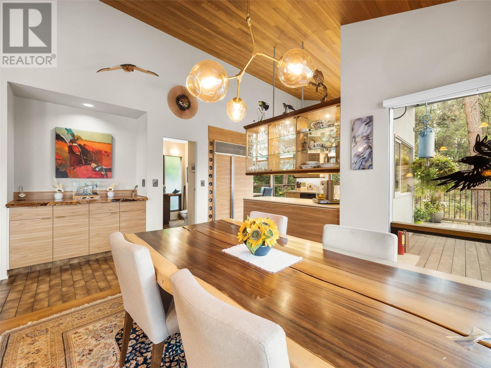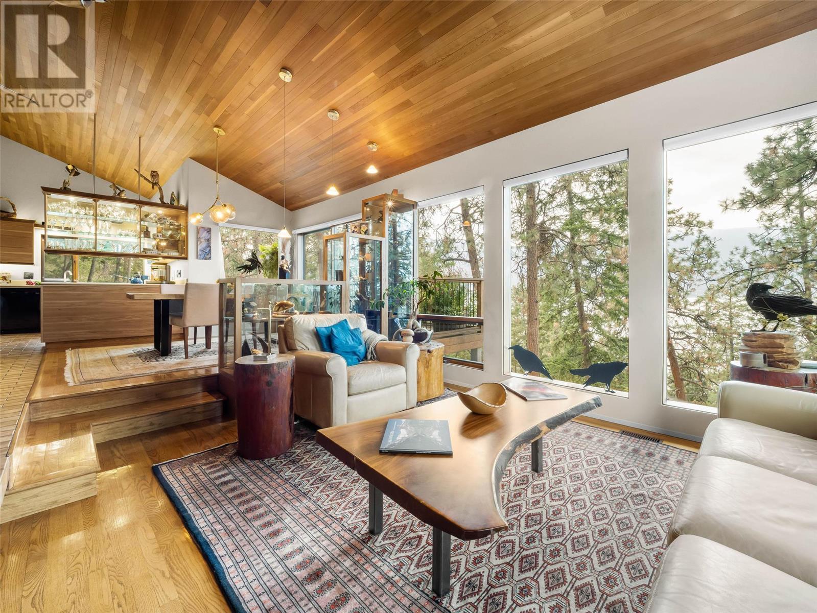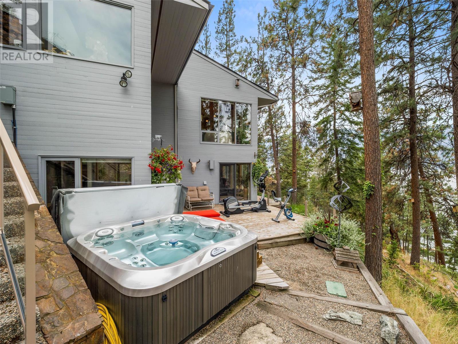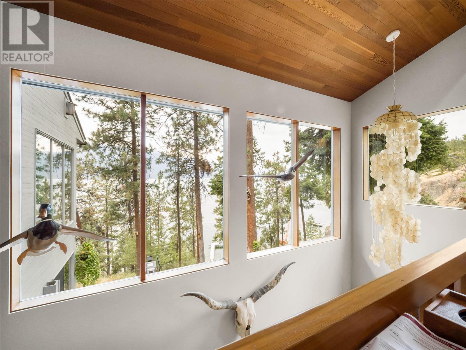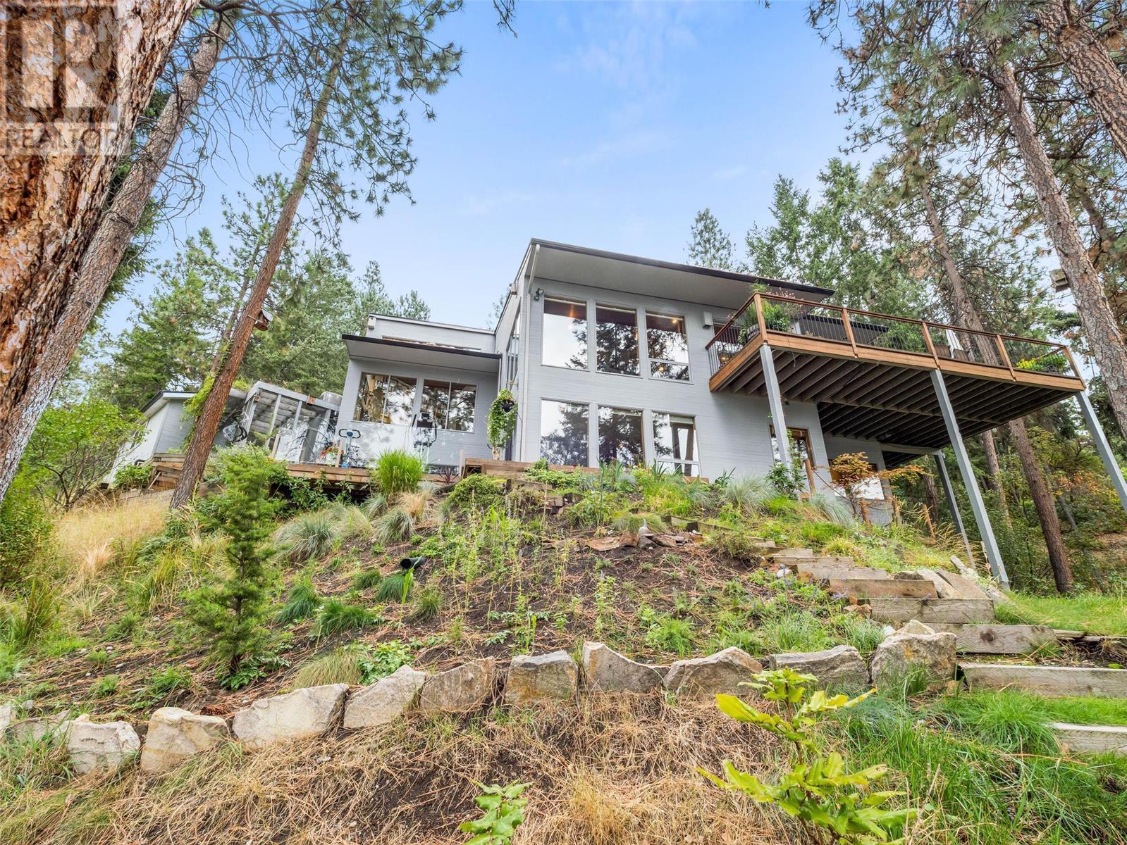 A rare offering! This unique and private 5-acre estate in coveted McKinley Landing, lovingly cared for by its original owners, is now on the market for the first time. The property features an architecturally stunning 3-bed, 3-bath home designed by Dan Pretty with 2,500+ sq. ft. of living space. This sanctuary combines serene country living with easy access to city amenities. The extension of North Clifton Road into McKinley means this property will soon be a quick car ride from downtown. Enjoy a private beachfront with dock, deck space, outdoor kitchen, and covered sleeping area perfect for Okanagan summers. The beach can be accessed by a footpath along the stream or by a cart path. Active farm status keeps property taxes low and allows for income from an established apiary, raspberry, and tree farm. An extensive irrigation system supports agricultural use, landscaping, and fire prevention. This property is a bird-watcher’s paradise with mature trees and a natural stream surrounded by lush greenery, making the land a haven for wildlife. The home features vaulted ceilings, natural wood, a stone fireplace upstairs, and an antique brick fireplace in the family room, a generous master suite, loft study with rolling ladder, and incredible views from every window. There is an upper deck adjoining the kitchen and a lower deck with a hot tub off the master suite. There is a heated workshop, storage sheds, a trailer pad, and ample parking. Move in or plan your new dream home! (id:22211)