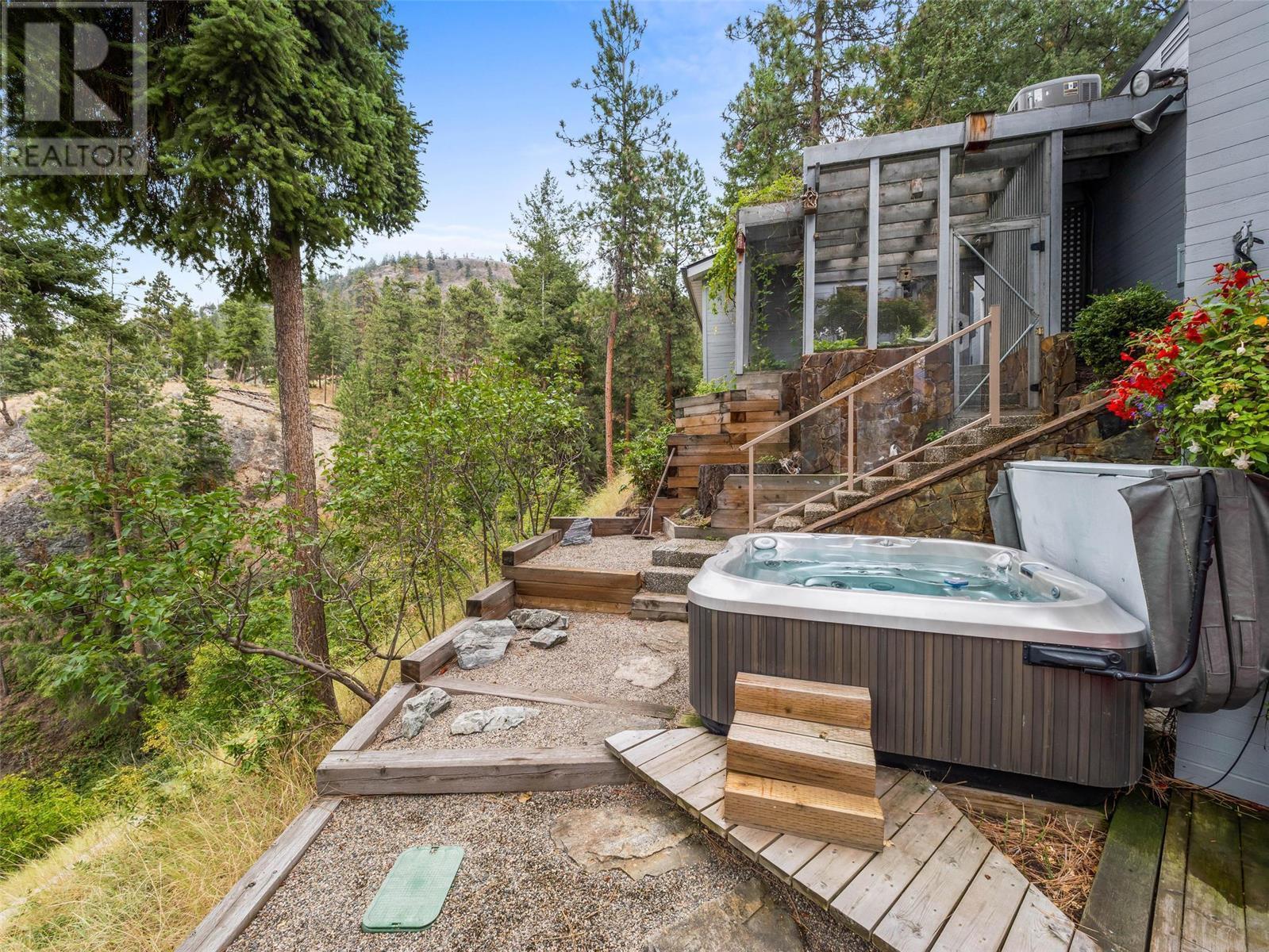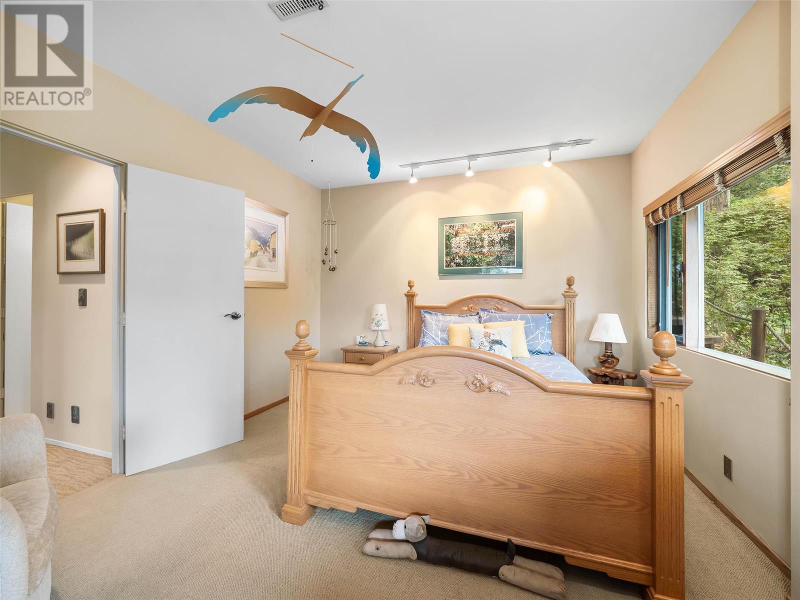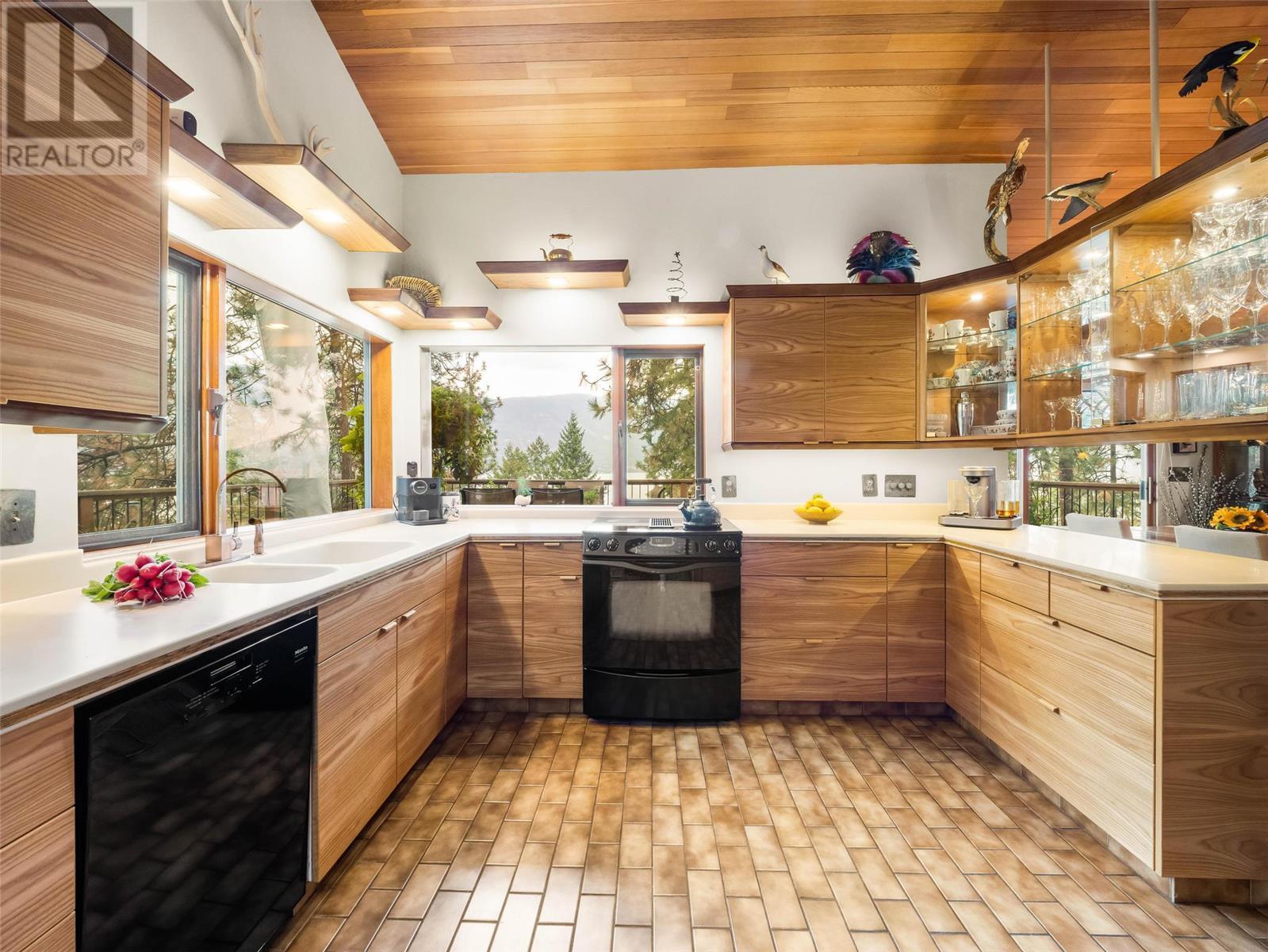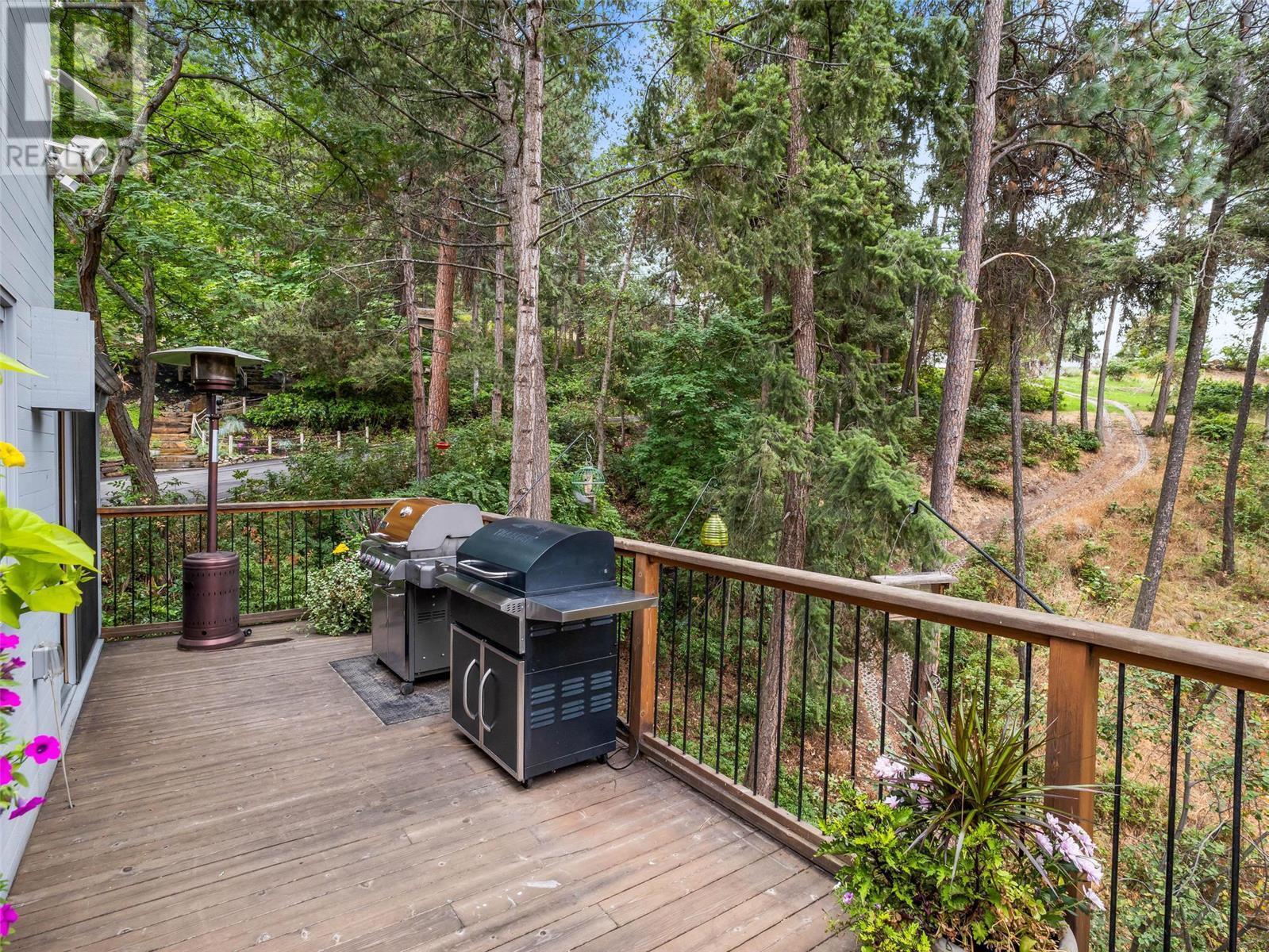 A rare offering! This unique and private 5-acre estate in coveted McKinley Landing, lovingly cared for by its original owners, is now on the market for the first time. The property features an architecturally stunning 3-bed, 3-bath home designed by Dan Pretty with 2,500+ sq. ft. of living space. This sanctuary combines serene country living with easy access to city amenities. The extension of North Clifton Road into McKinley means this property will soon be a quick car ride from downtown. Enjoy a private beachfront with dock, deck space, outdoor kitchen, and covered sleeping area perfect for Okanagan summers. The beach can be accessed by a footpath along the stream or by a cart path. Active farm status keeps property taxes low and allows for income from an established apiary, raspberry, and tree farm. An extensive irrigation system supports agricultural use, landscaping, and fire prevention. This property is a bird-watcher’s paradise with mature trees and a natural stream surrounded by lush greenery, making the land a haven for wildlife. The home features vaulted ceilings, natural wood, a stone fireplace upstairs, and an antique brick fireplace in the family room, a generous master suite, loft study with rolling ladder, and incredible views from every window. There is an upper deck adjoining the kitchen and a lower deck with a hot tub off the master suite. There is a heated workshop, storage sheds, a trailer pad, and ample parking. Move in or plan your new dream home! (id:22211)