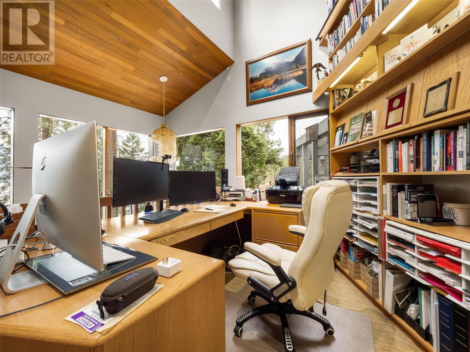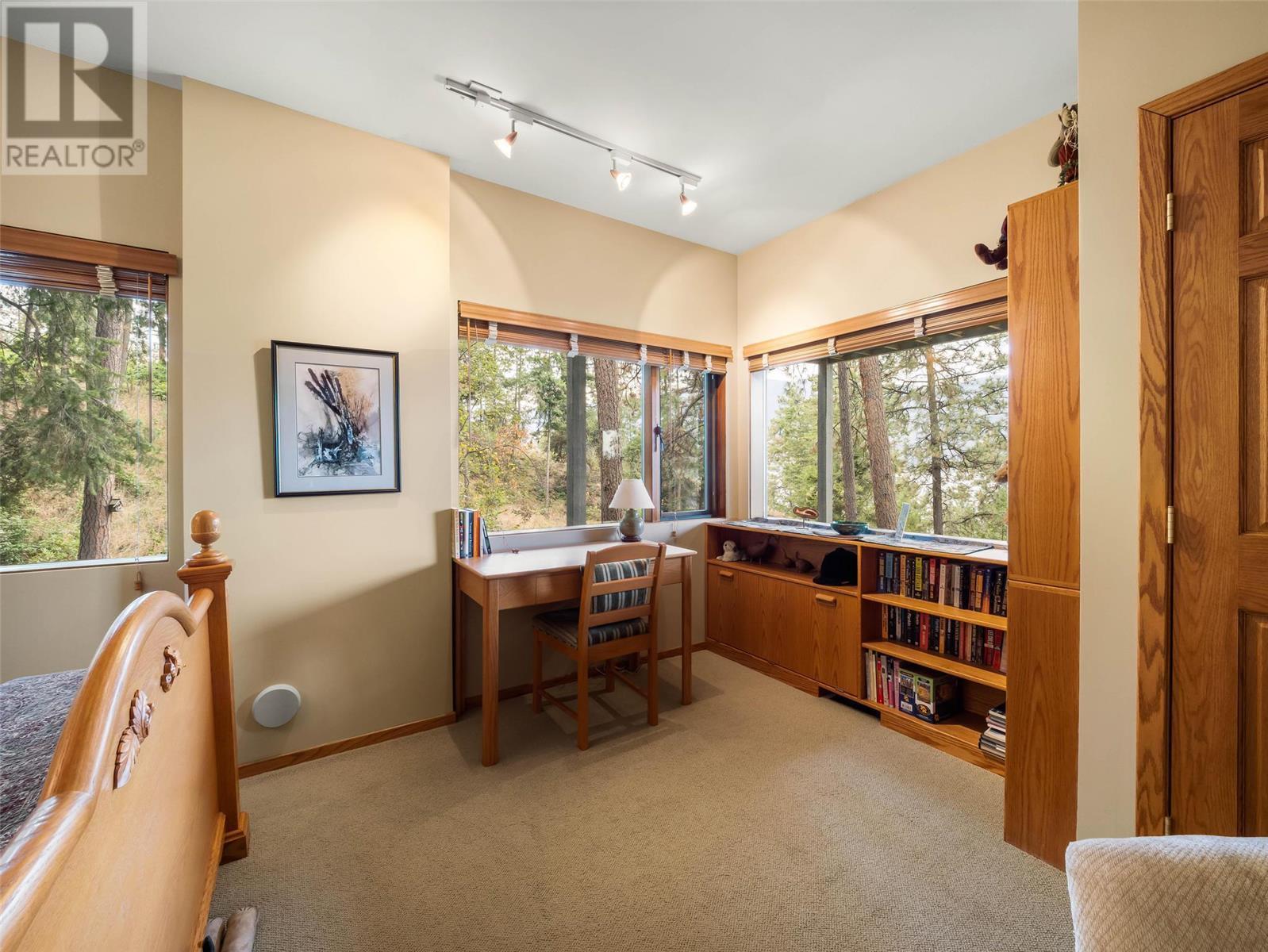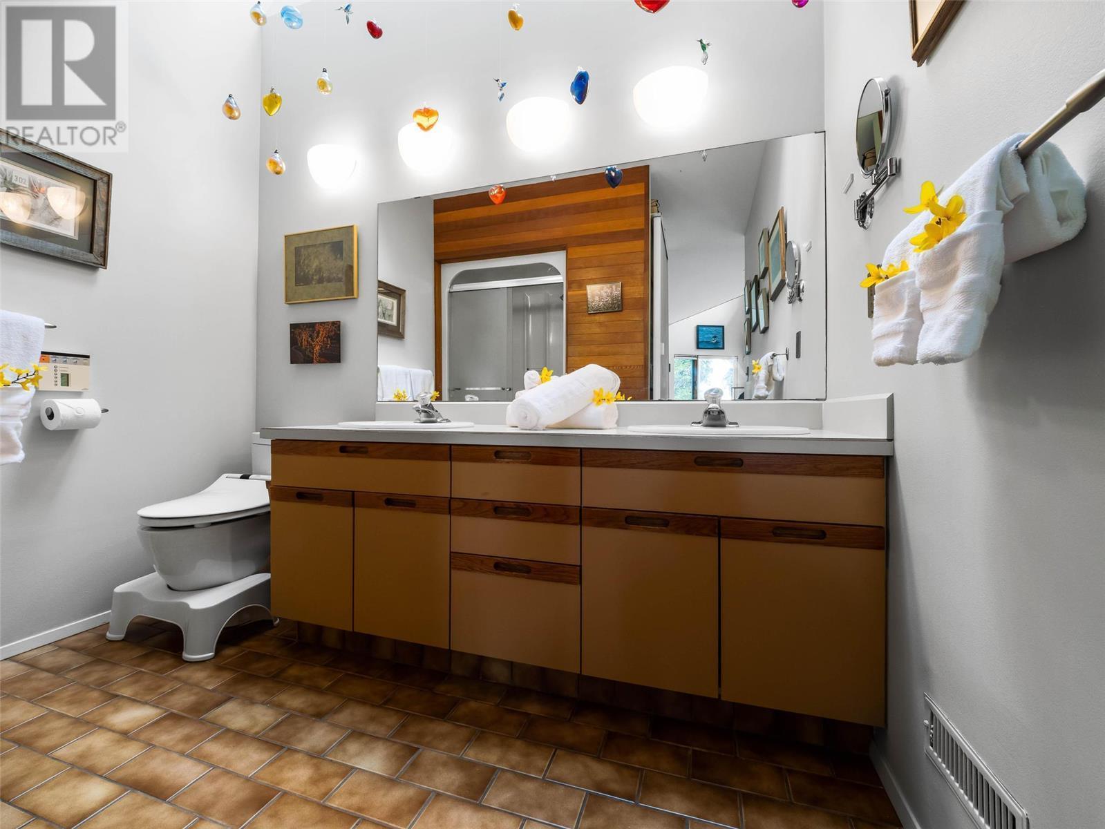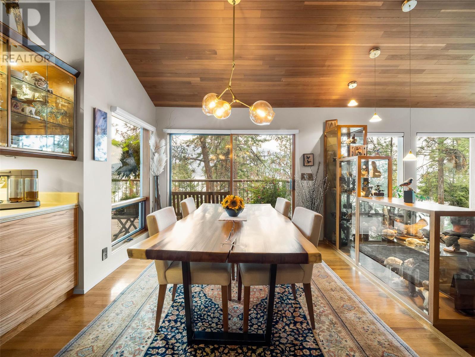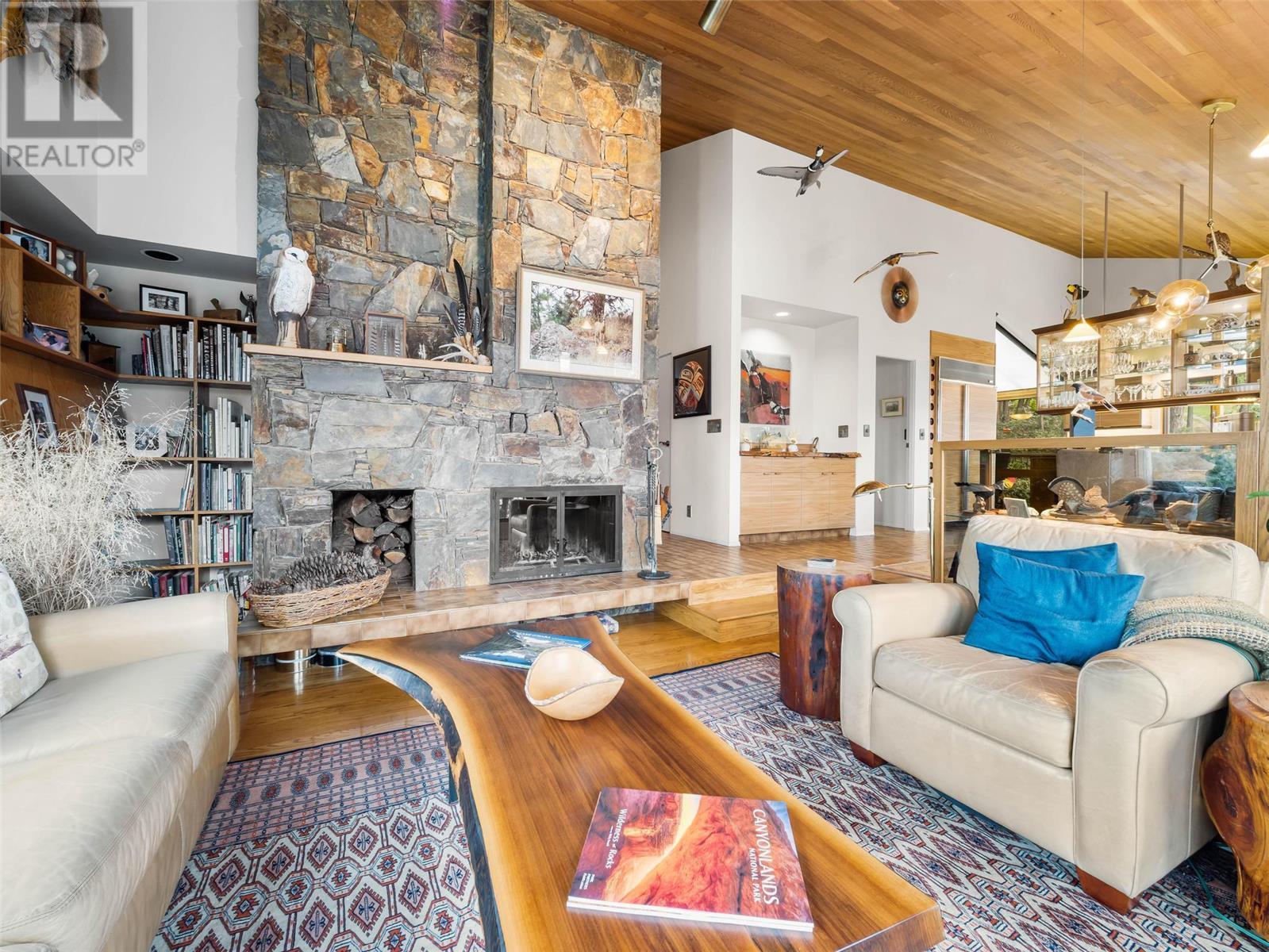 A rare offering! This unique and private 5-acre estate in coveted McKinley Landing, lovingly cared for by its original owners, is now on the market for the first time. The property features an architecturally stunning 3-bed, 3-bath home designed by Dan Pretty with 2,500+ sq. ft. of living space. This sanctuary combines serene country living with easy access to city amenities. The extension of North Clifton Road into McKinley means this property will soon be a quick car ride from downtown. Enjoy a private beachfront with dock, deck space, outdoor kitchen, and covered sleeping area perfect for Okanagan summers. The beach can be accessed by a footpath along the stream or by a cart path. Active farm status keeps property taxes low and allows for income from an established apiary, raspberry, and tree farm. An extensive irrigation system supports agricultural use, landscaping, and fire prevention. This property is a bird-watcher’s paradise with mature trees and a natural stream surrounded by lush greenery, making the land a haven for wildlife. The home features vaulted ceilings, natural wood, a stone fireplace upstairs, and an antique brick fireplace in the family room, a generous master suite, loft study with rolling ladder, and incredible views from every window. There is an upper deck adjoining the kitchen and a lower deck with a hot tub off the master suite. There is a heated workshop, storage sheds, a trailer pad, and ample parking. Move in or plan your new dream home! (id:22211)