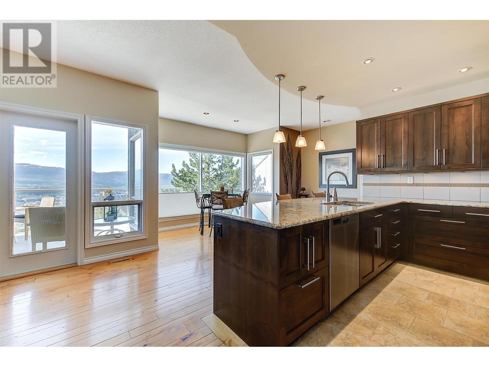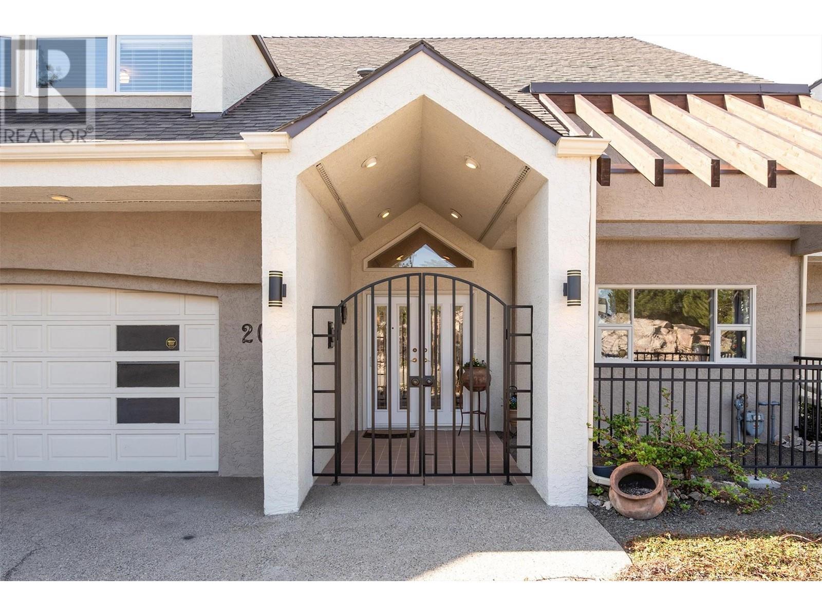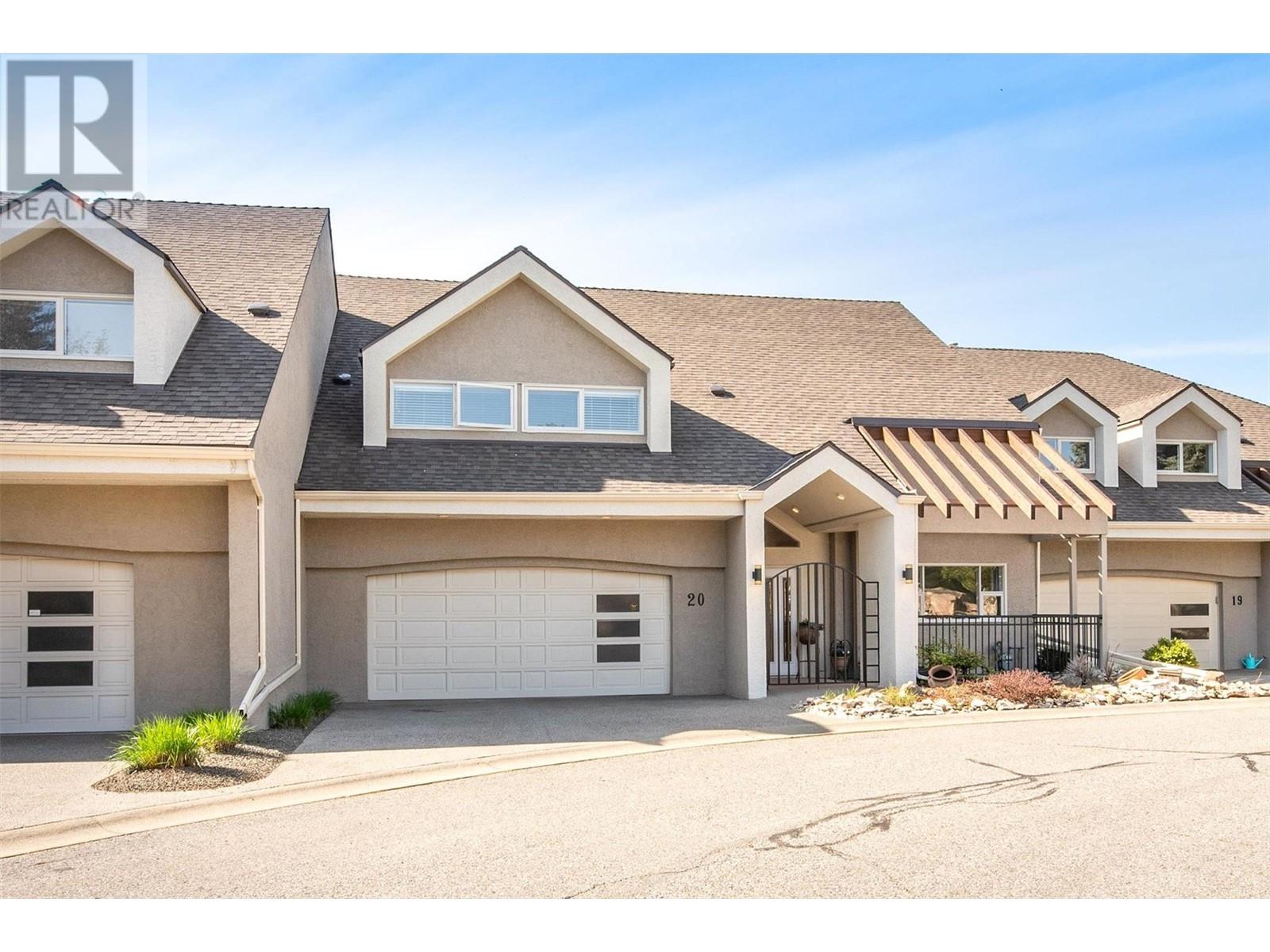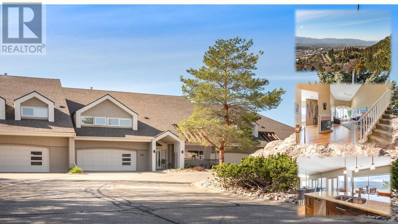 WELCOME to #20 – 880 Christina Place & the serenity of Dilworth Mountain! Nestled between the trees & rocks in the private gated community of Monashee Peaks. This 4-bed 4-bath original Show Home has been in the family since new. Enjoy the panoramic views of the mountains, city & lake. This lovely home is truly made for both entertaining & everyday living. There is plenty of space, FABULOUS views & an abundance of natural light. The gated entry opens to a peaked foyer, which opens to the grand staircase & living room. The oversized living room windows, the corner gas fireplace, the high vaulted ceilings & the beautiful Alder wood flooring (throughout the main floor), are both warm and welcoming. The “heart of the home” is the Kitchen. This includes an eating nook, a dining room area, lots of cupboard space, a large piano-style granite counter peninsula (ideal for gatherings), & a Viking Proline Dual Gas Stove/oven. Walk directly outdoors to the double deck with gas BBQ hook up, electric awning & some of the most spectacular views in Kelowna! There is also a bedroom, a full bathroom, laundry & wet bar on the main floor. The home is currently set up with 2 primary bedrooms both with ensuite bathrooms & walk-in closets. The walkout basement offers a bedroom, full bathroom, storage & utility rooms, plus a massive rec room that opens to an enclosed sunroom. The large double garage has a secondary staircase. This home has been well cared for & is ready for new owners. Welcome Home. (id:22211)