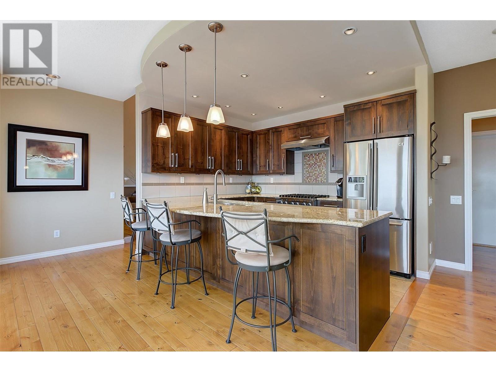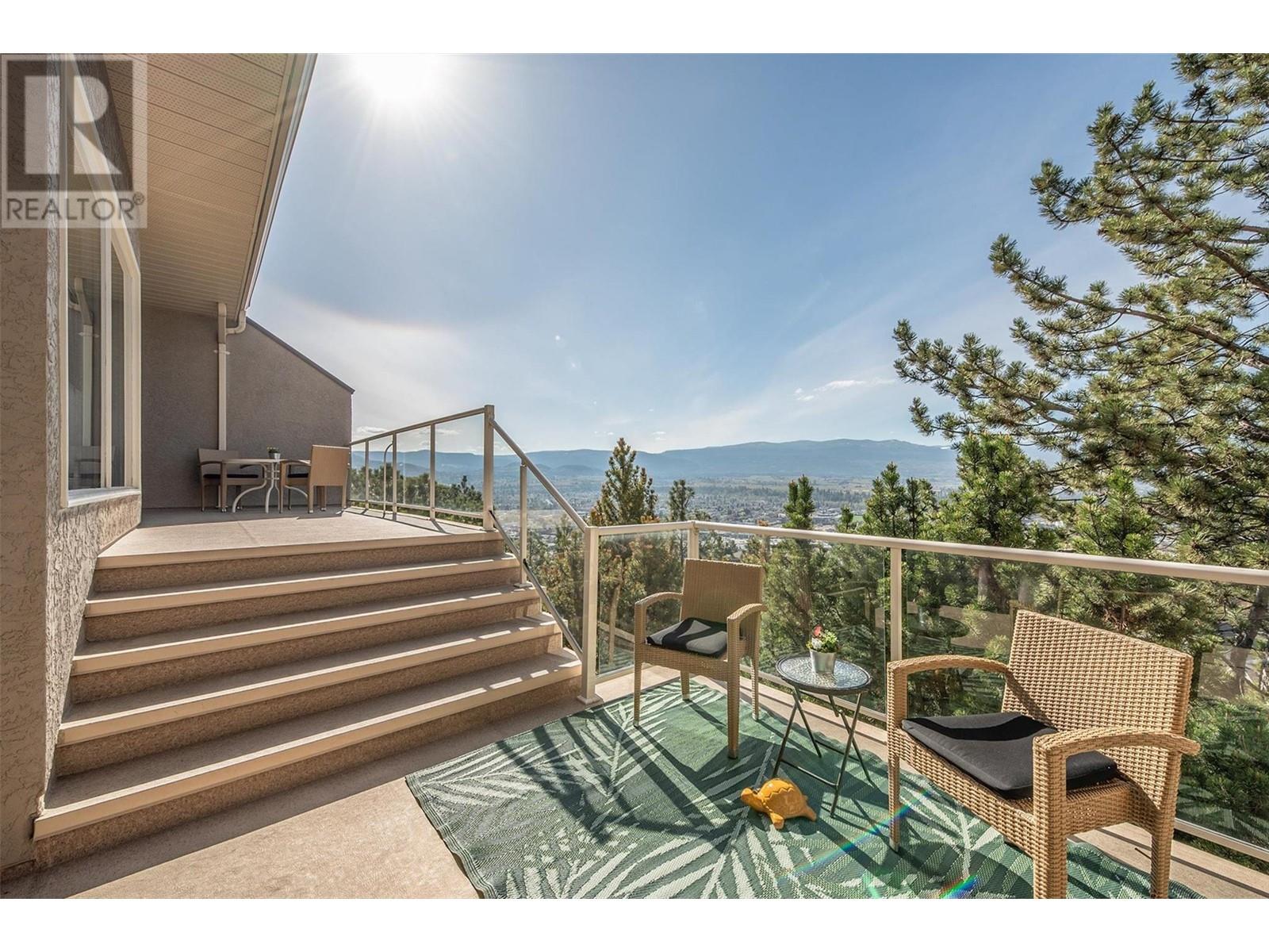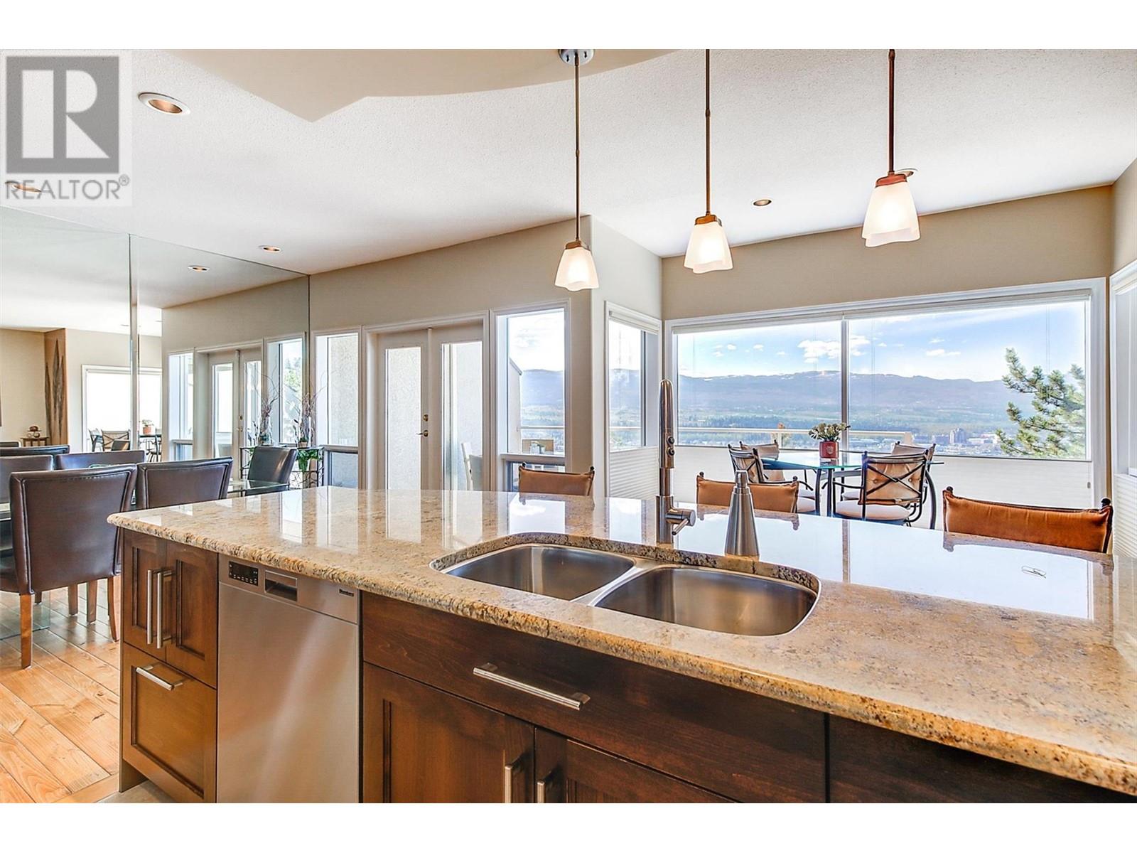 WELCOME to #20 – 880 Christina Place & the serenity of Dilworth Mountain! Nestled between the trees & rocks in the private gated community of Monashee Peaks. This 4-bed 4-bath original Show Home has been in the family since new. Enjoy the panoramic views of the mountains, city & lake. This lovely home is truly made for both entertaining & everyday living. There is plenty of space, FABULOUS views & an abundance of natural light. The gated entry opens to a peaked foyer, which opens to the grand staircase & living room. The oversized living room windows, the corner gas fireplace, the high vaulted ceilings & the beautiful Alder wood flooring (throughout the main floor), are both warm and welcoming. The “heart of the home” is the Kitchen. This includes an eating nook, a dining room area, lots of cupboard space, a large piano-style granite counter peninsula (ideal for gatherings), & a Viking Proline Dual Gas Stove/oven. Walk directly outdoors to the double deck with gas BBQ hook up, electric awning & some of the most spectacular views in Kelowna! There is also a bedroom, a full bathroom, laundry & wet bar on the main floor. The home is currently set up with 2 primary bedrooms both with ensuite bathrooms & walk-in closets. The walkout basement offers a bedroom, full bathroom, storage & utility rooms, plus a massive rec room that opens to an enclosed sunroom. The large double garage has a secondary staircase. This home has been well cared for & is ready for new owners. Welcome Home. (id:22211)