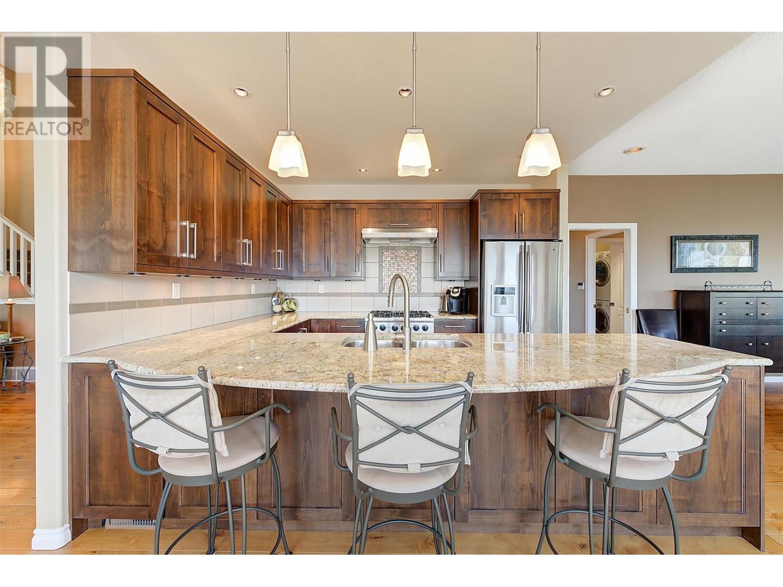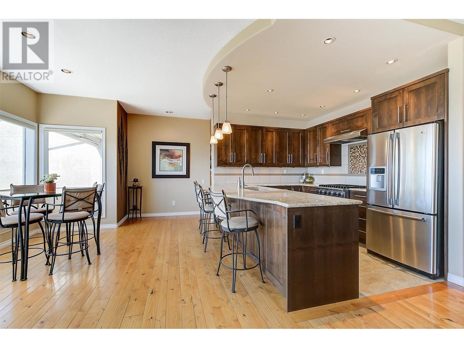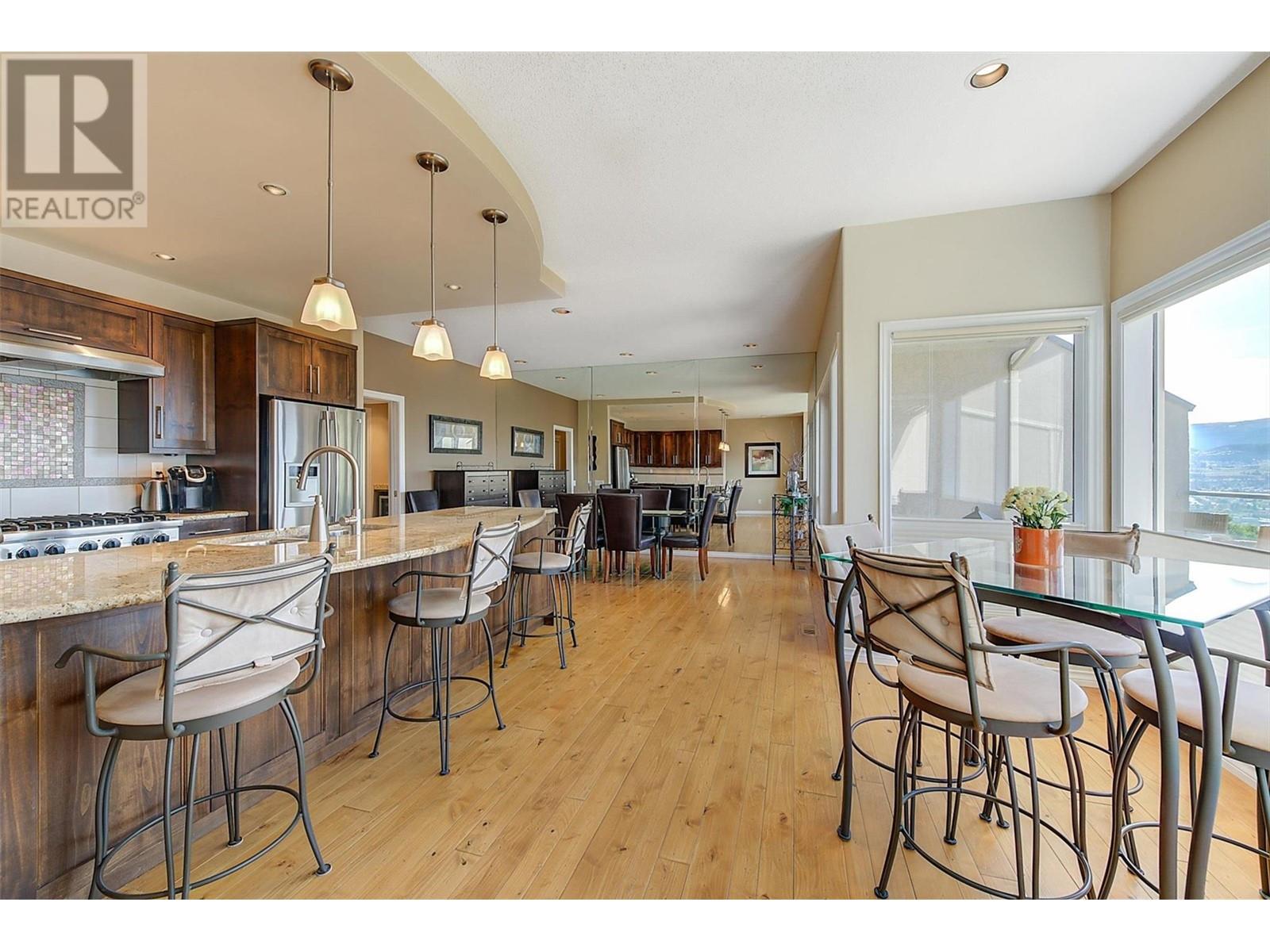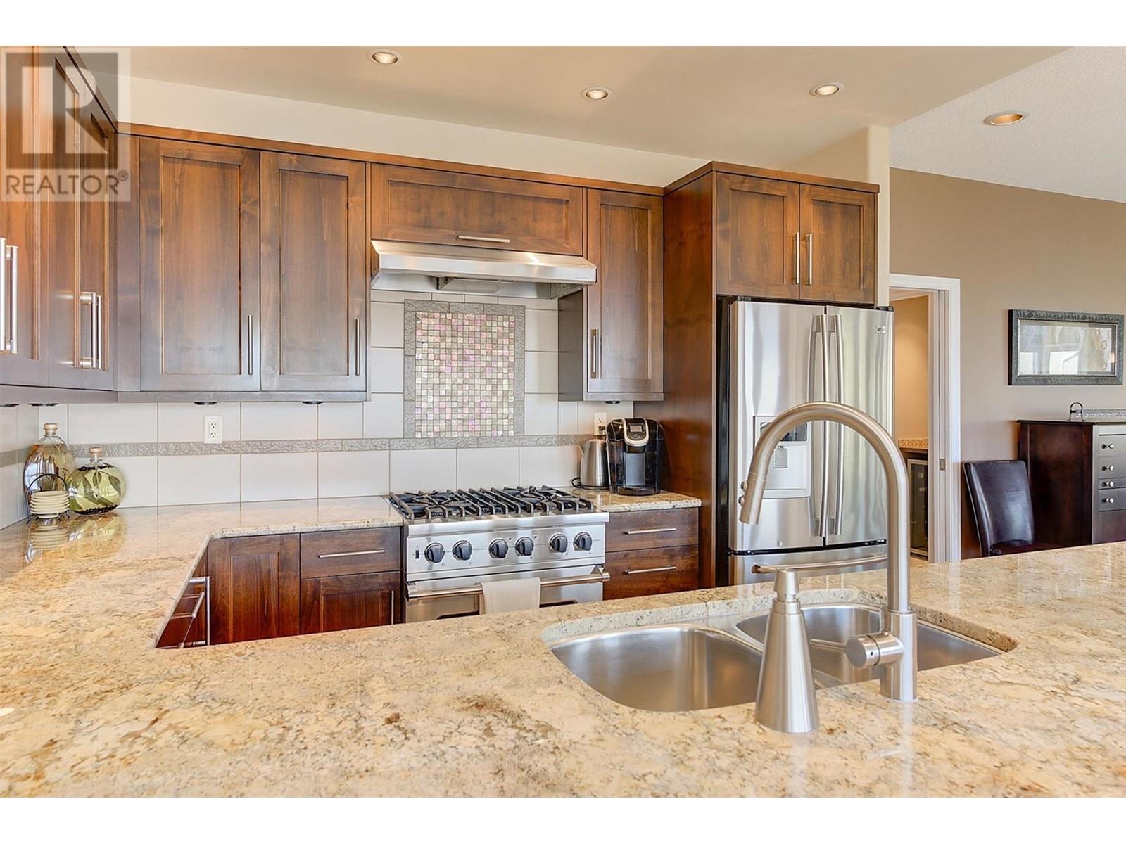WELCOME to #20 – 880 Christina Place & the serenity of Dilworth Mountain! Nestled between the trees & rocks in the private gated community of Monashee Peaks. This 4-bed 4-bath original Show Home has been in the family since new. Enjoy the panoramic views of the mountains, city & lake. This lovely home is truly made for both entertaining & everyday living. There is plenty of space, FABULOUS views & an abundance of natural light. The gated entry opens to a peaked foyer, which opens to the grand staircase & living room. The oversized living room windows, the corner gas fireplace, the high vaulted ceilings & the beautiful Alder wood flooring (throughout the main floor), are both warm and welcoming. The “heart of the home” is the Kitchen. This includes an eating nook, a dining room area, lots of cupboard space, a large piano-style granite counter peninsula (ideal for gatherings), & a Viking Proline Dual Gas Stove/oven. Walk directly outdoors to the double deck with gas BBQ hook up, electric awning & some of the most spectacular views in Kelowna! There is also a bedroom, a full bathroom, laundry & wet bar on the main floor. The home is currently set up with 2 primary bedrooms both with ensuite bathrooms & walk-in closets. The walkout basement offers a bedroom, full bathroom, storage & utility rooms, plus a massive rec room that opens to an enclosed sunroom. The large double garage has a secondary staircase. This home has been well cared for & is ready for new owners. Welcome Home. (id:22211)