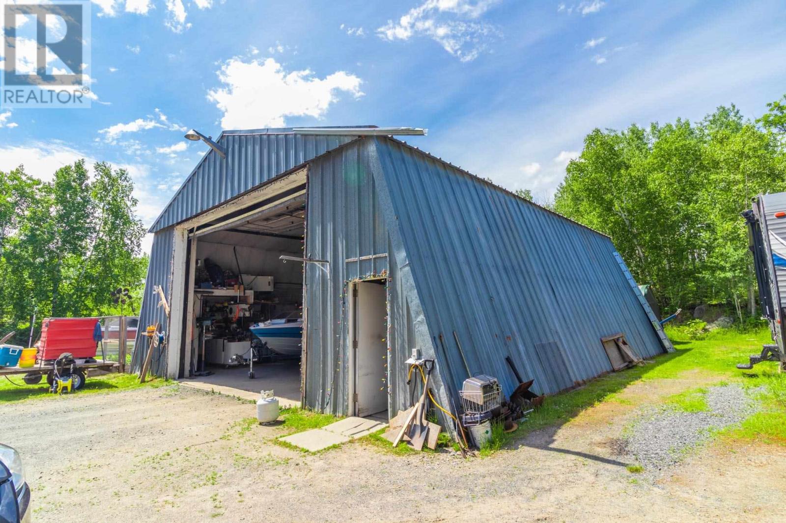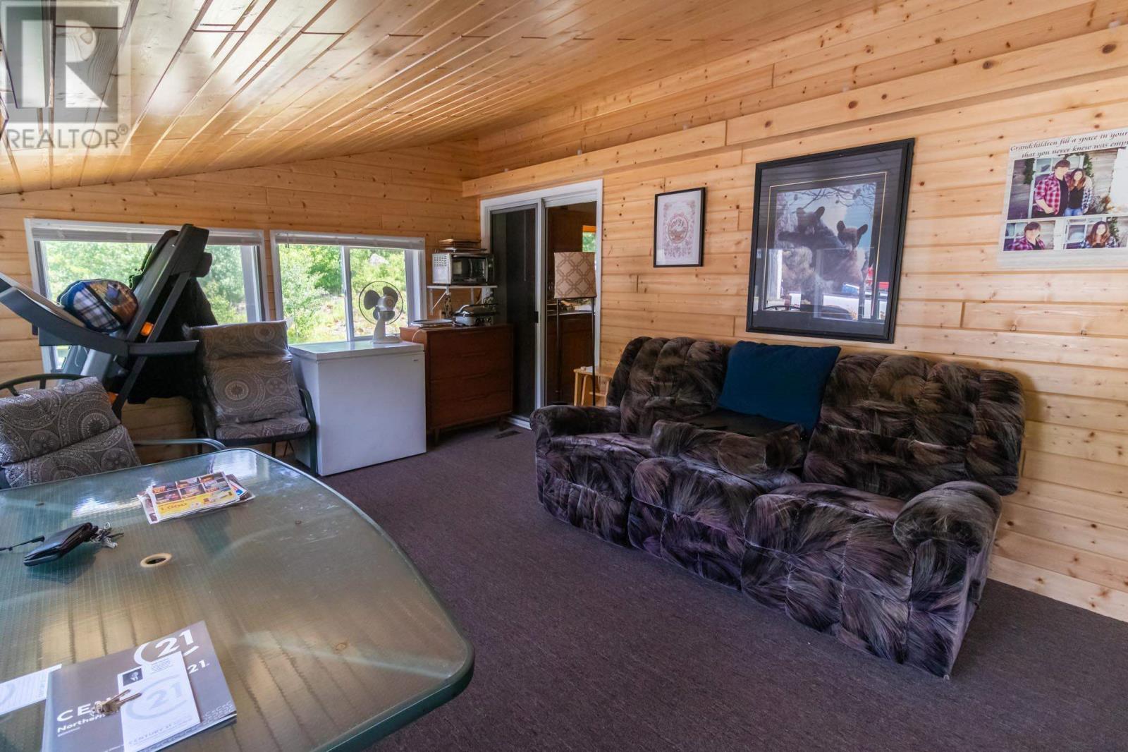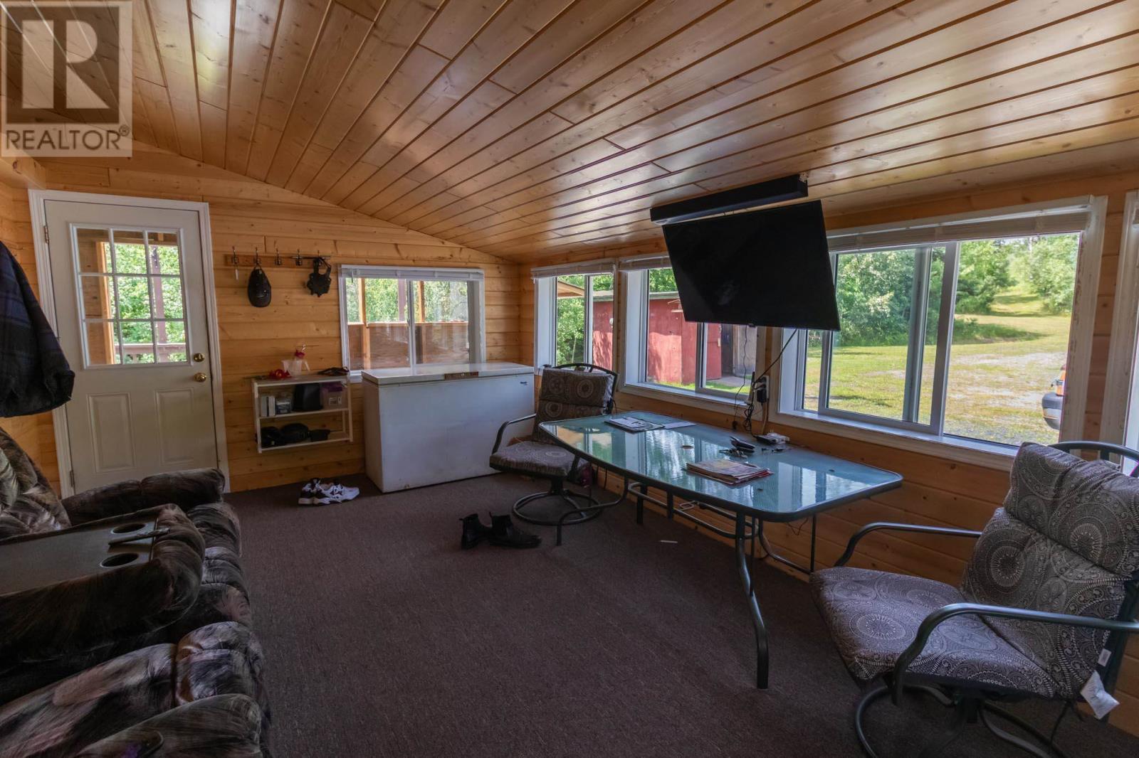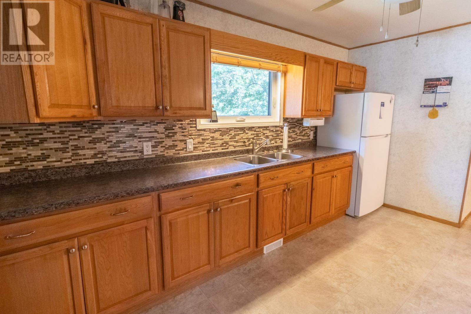 Just outside of city limits, this country home is zoned unorganized with ample space for your enjoyment. With over an acre in size, landscaped lot, and privacy. The home offers 2 bedrooms, both with closet space. Updated 3 pc bathroom and separate laundry area. The living room gives a open feel to the dining and kitchen, with cathedral ceilings. The kitchen has been updated with oak cabinets, ample storage, and access to a spacious 3 seasons room set up for everyday relaxation. The exterior is low maintenance and updated windows. There is a deck area off the side.The bonus is the 38 x 40 insulated powered shop with vehicle lift. if you have a passion for the hands on trades, this is where you will be. (id:22211)
