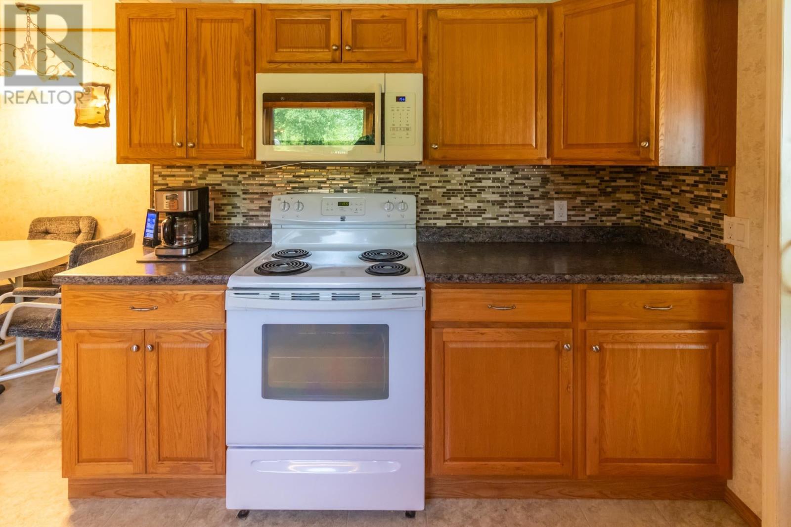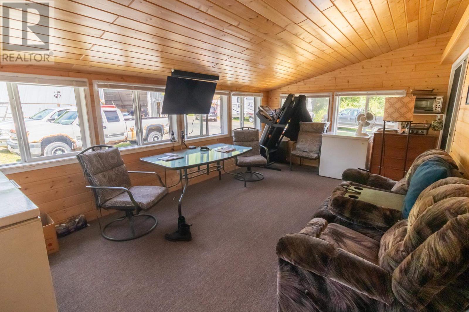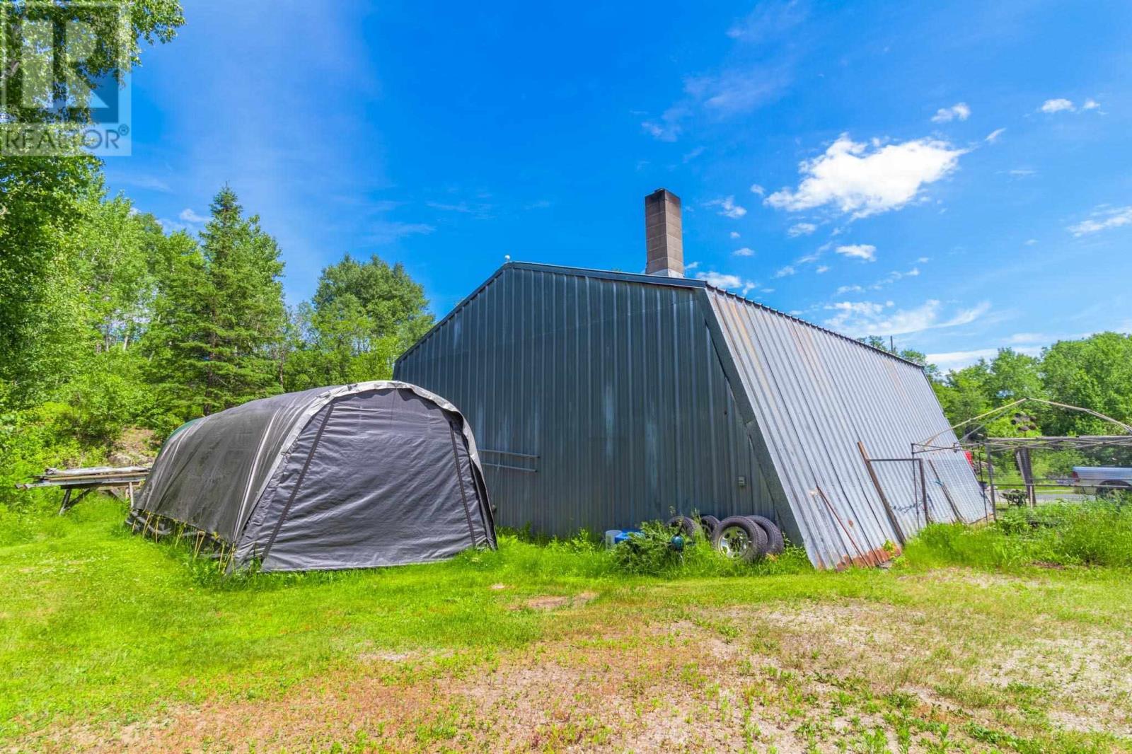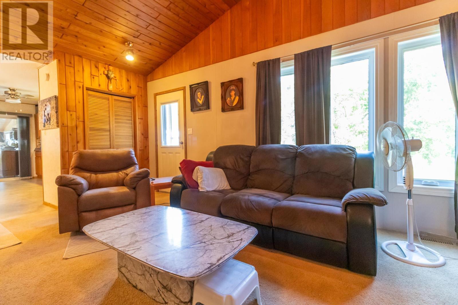 Just outside of city limits, this country home is zoned unorganized with ample space for your enjoyment. With over an acre in size, landscaped lot, and privacy. The home offers 2 bedrooms, both with closet space. Updated 3 pc bathroom and separate laundry area. The living room gives a open feel to the dining and kitchen, with cathedral ceilings. The kitchen has been updated with oak cabinets, ample storage, and access to a spacious 3 seasons room set up for everyday relaxation. The exterior is low maintenance and updated windows. There is a deck area off the side.The bonus is the 38 x 40 insulated powered shop with vehicle lift. if you have a passion for the hands on trades, this is where you will be. (id:22211)