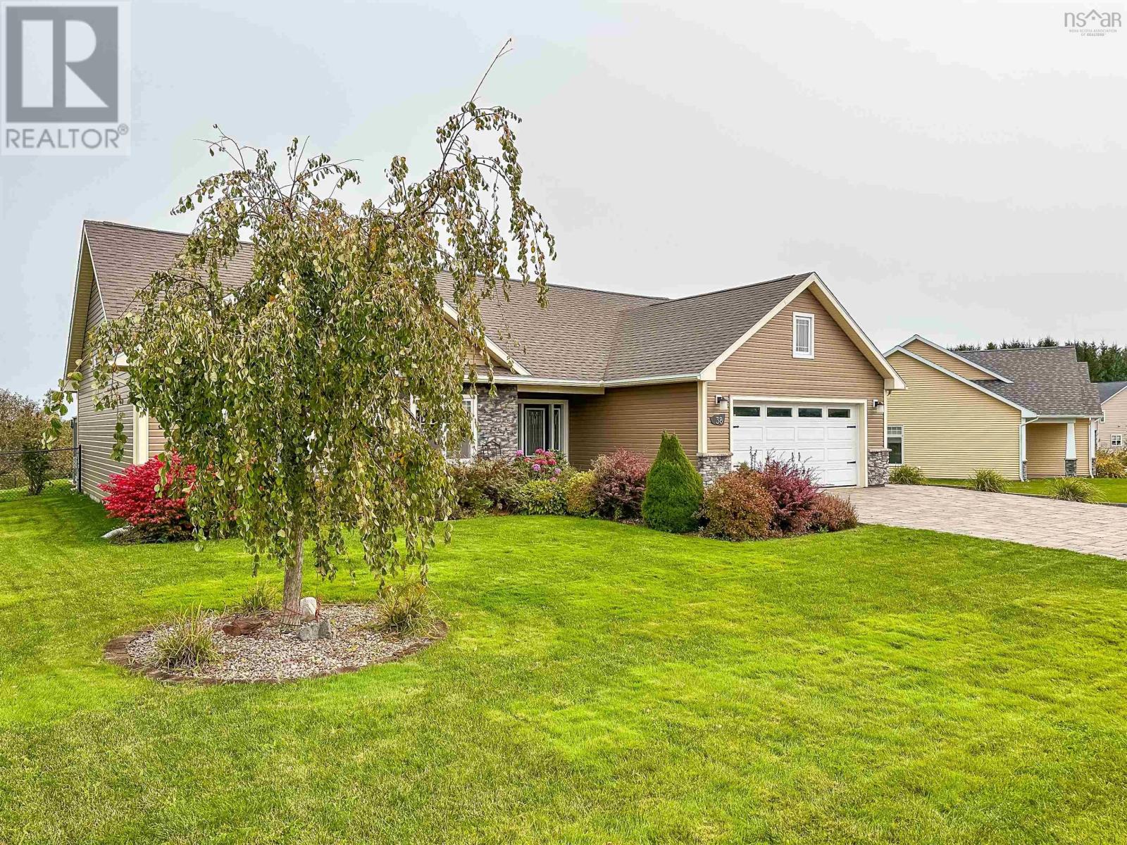 Gorgeous, upscale 3 bed, 2 bath bungalow in desirable Deer Haven subdivision in Kentville! Perfect executive downsize on a beautiful landscaped lot with irrigation, lovely perennials and a fenced in back yard. Complete main floor living with a functional layout, an open concept design and nicely appointed higher end finishings. The kitchen, dining area and living room are perfect for entertaining and hosting family and friends. Ample cabinetry, a centre island with eat up bar and Corian countertops in the kitchen. Laundry/mudroom lead into a double car garage, heated and wired. The primary suite is spacious with a walk in closet and a luxurious spa like ensuite bath with soaker tub, walk in shower and radiant heated floor. Energy efficient ductless heat pump provide comfortable heating and cooling. Ample natural light throughout the home. Fantastic location, close to town amenities and quick highway access. Call today for more information and to book a private showing! (id:22211)