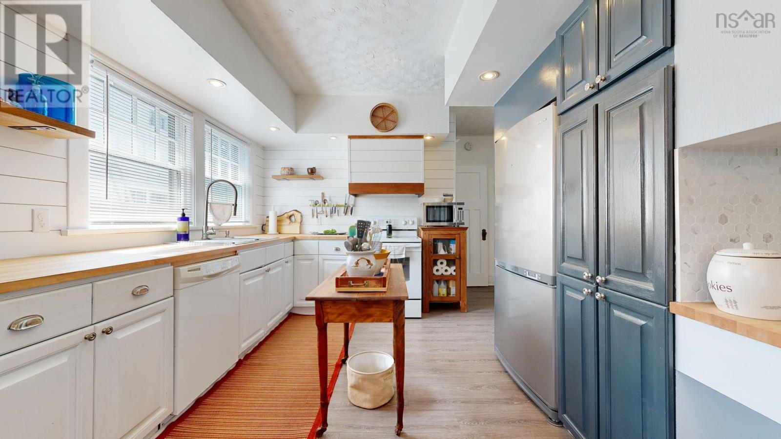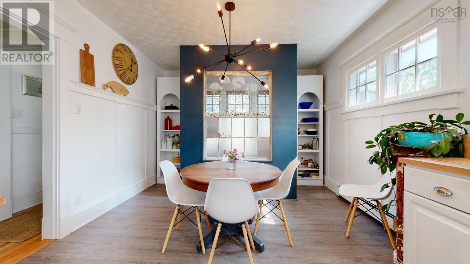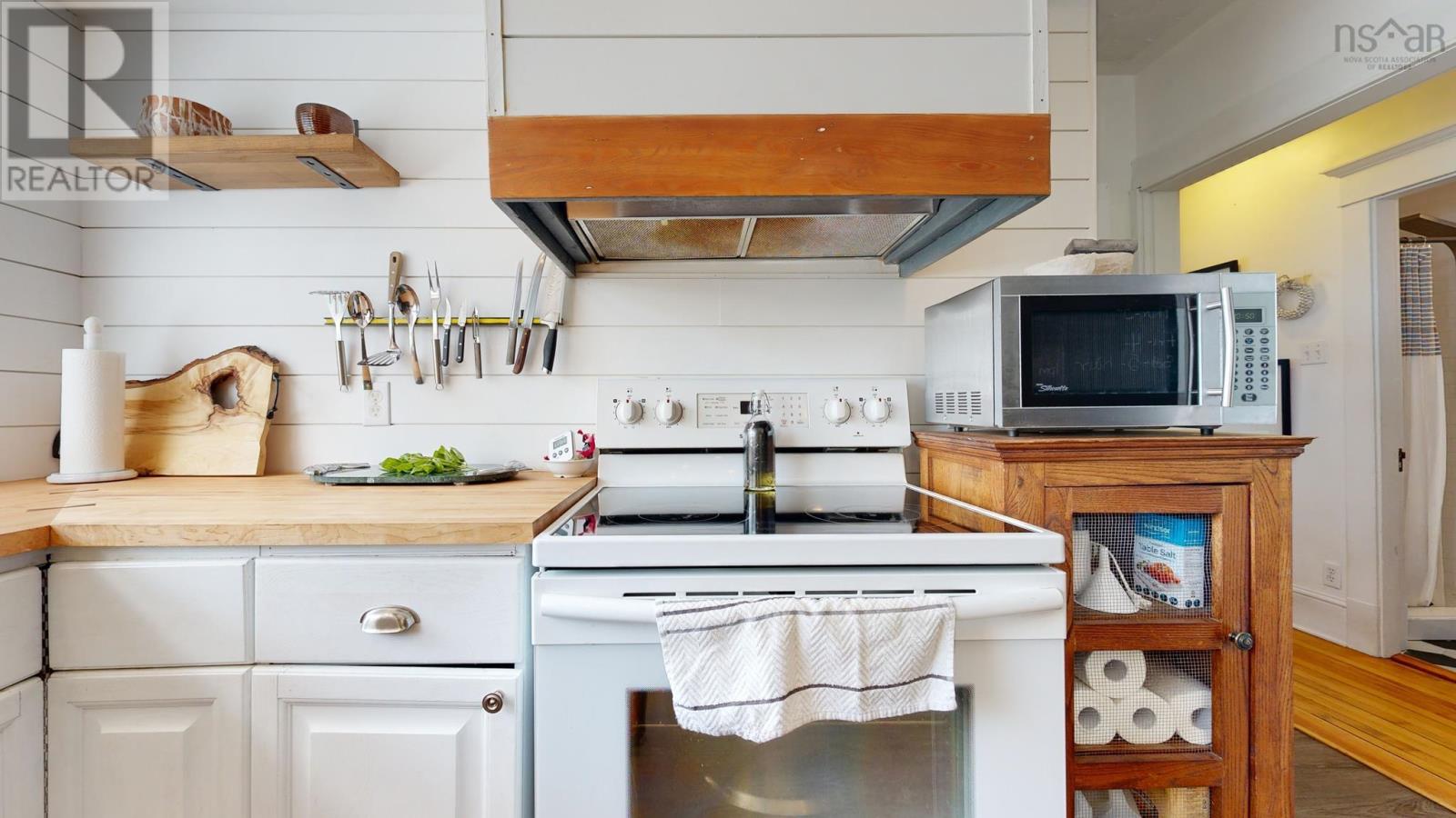 Gorgeously renovated century home in the heart of Kentville, easy walking distance to the town center, with all the character and charm intact. Original trim around doors and windows blend with modern accents around the wood stove insert, the fully renovated kitchen. the bathrooms, and more. This 4 bedroom (2 up and 2 main), 2 bathroom (1 up and 1 main) home has been meticulously updated in the last 3 years by the owner and professional tradespeople alike. The main living spaces of the Kitchen, Dining, and Living Rooms have all been improved and both bathrooms completely renovated with premium finishes. Signature tilework around the woodstove, and in the bathrooms, blends seamlessly with the vintage hardwood floors. Oil furnace forced air and ductless heat pumps, along with the woodstove, offer versatility and function and provide multiple heating choices. Full undeveloped basement has been used by the current owner for crafting, furniture restoration, and storage, offering plenty of space for all. Roof recently redone (half in 2020 and half in 2023). Move in ready and a quick closing can be accommodated. (id:22211)