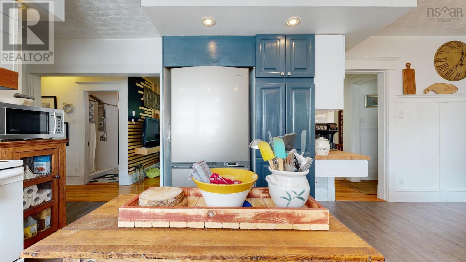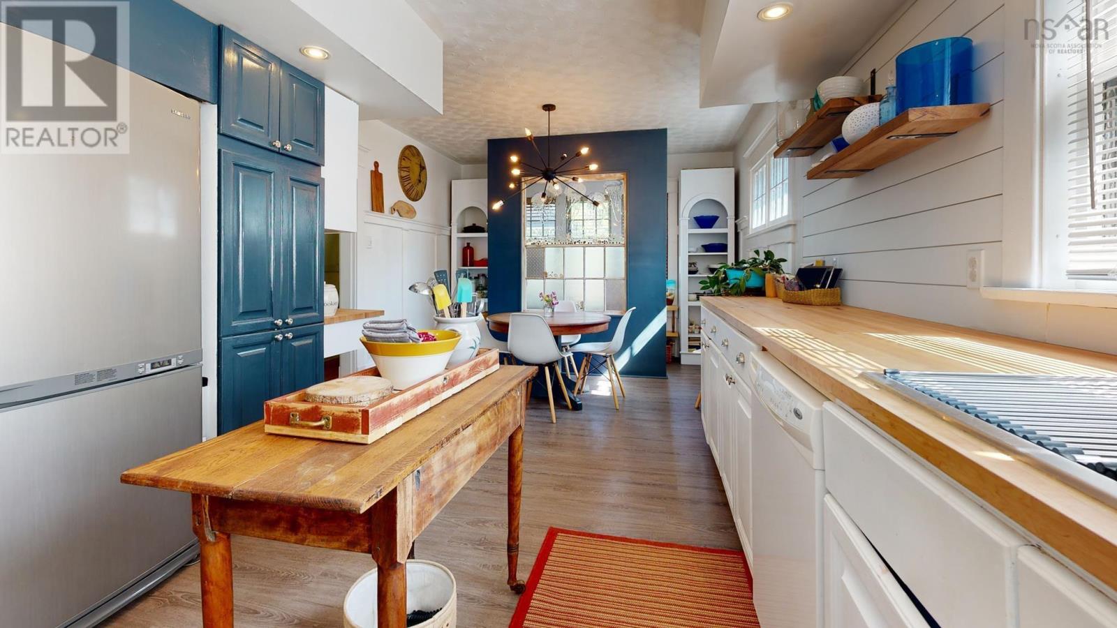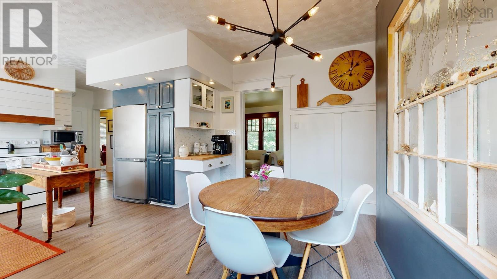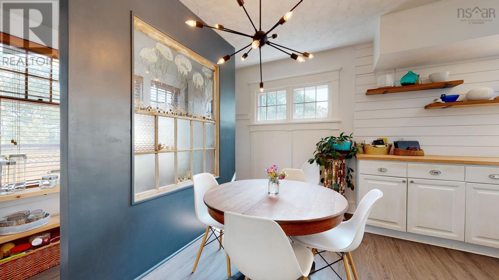 Gorgeously renovated century home in the heart of Kentville, easy walking distance to the town center, with all the character and charm intact. Original trim around doors and windows blend with modern accents around the wood stove insert, the fully renovated kitchen. the bathrooms, and more. This 4 bedroom (2 up and 2 main), 2 bathroom (1 up and 1 main) home has been meticulously updated in the last 3 years by the owner and professional tradespeople alike. The main living spaces of the Kitchen, Dining, and Living Rooms have all been improved and both bathrooms completely renovated with premium finishes. Signature tilework around the woodstove, and in the bathrooms, blends seamlessly with the vintage hardwood floors. Oil furnace forced air and ductless heat pumps, along with the woodstove, offer versatility and function and provide multiple heating choices. Full undeveloped basement has been used by the current owner for crafting, furniture restoration, and storage, offering plenty of space for all. Roof recently redone (half in 2020 and half in 2023). Move in ready and a quick closing can be accommodated. (id:22211)
