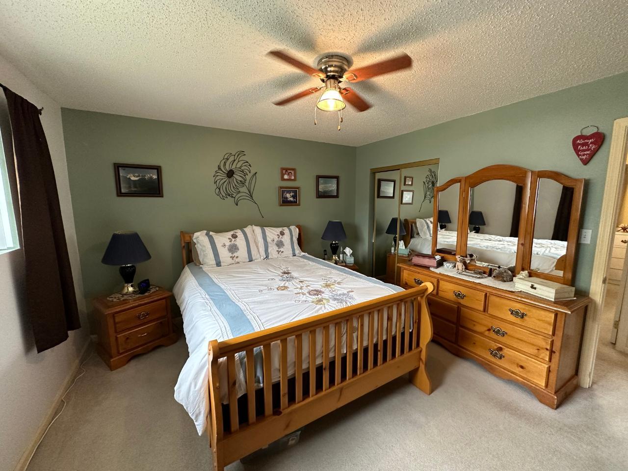 Welcome to this gorgeous 3 bedroom, 3 bathroom home located in a desirable area. This home boasts a spacious master bedroom with not one, but two closets for ample storage. Enjoy a private backyard oasis complete with a garden, perfect for relaxing or entertaining guests. The lot is .25 acres, providing plenty of space to enjoy the outdoors and take in the breathtaking view of the Bootleg Mountains. The kitchen and dining room are bright and airy, with patio doors leading out to a deck with a view. The basement is also bright and spacious, with a large laundry room and plenty of room for storage. This home features a new roof installed in 2014, new siding, and a 20'10" x 24'9" attached double garage with a walkout to the backyard and walk-in access to the basement. Don't miss out on the opportunity to make this house your dream home! (id:22211)