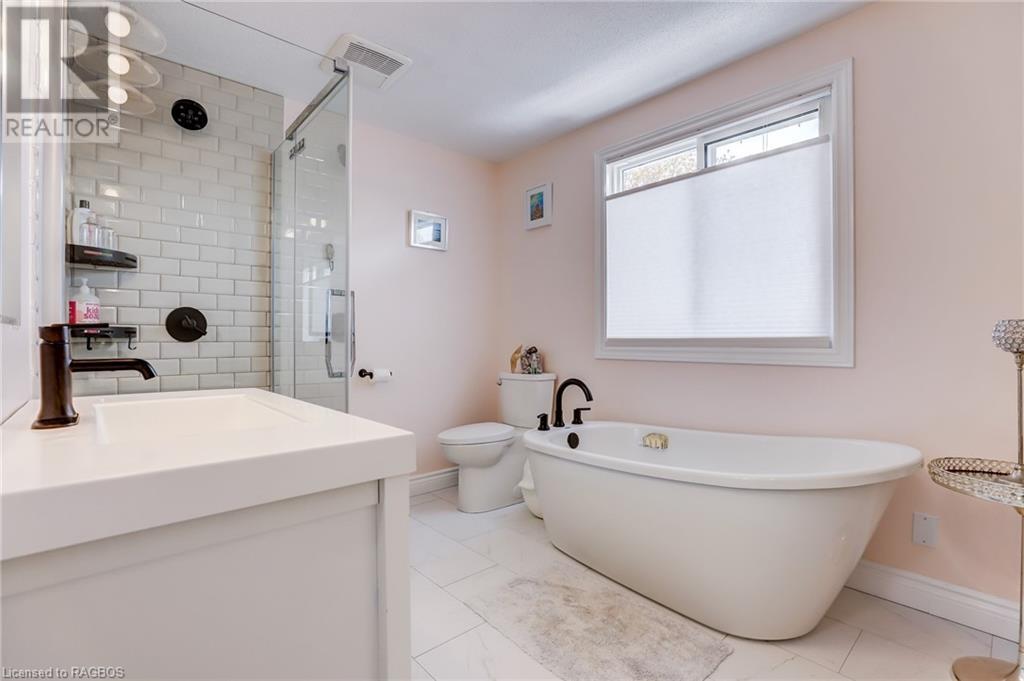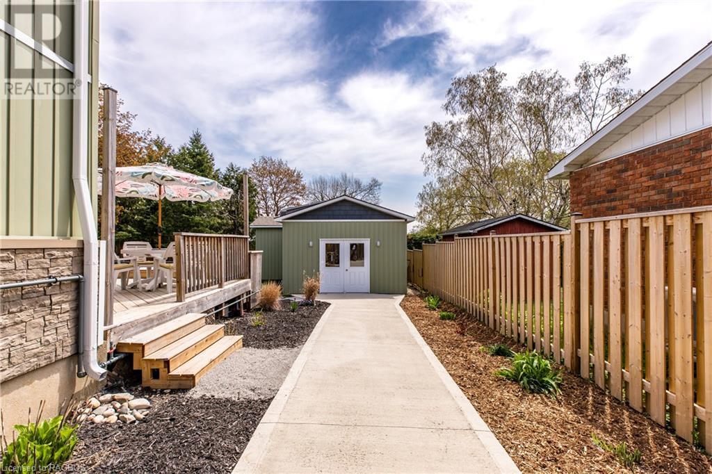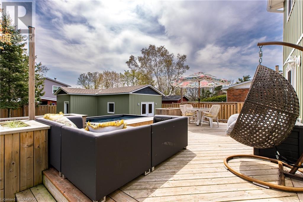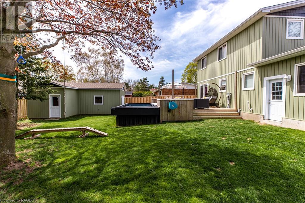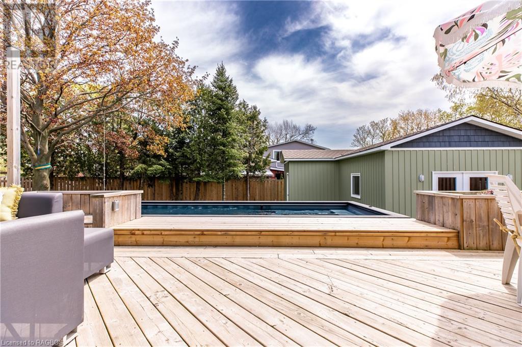 Welcome to this immaculate home in the heart of a family-friendly neighbourhood. This well kept 2-storey, 3 bedroom home is situated on a treed, landscaped lot, just a 2 minute walk to a greenspace and park, with access to walking and ski trails right in your backyard. The property has undergone several upgrades over recent years, including a new double car garage, spacious back deck and covered front porch, as well as a new gas furnace. The backyard is truly an oasis, beautifully landscaped, fenced and complete with a new year round Modpool (2022) that can be utilized as both a pool and a spa/hot tub. The pool is equipped with an electric child safety cover and features a natural gas heater to complement its year round design. A standout feature of the property is the insulated, heated backyard bunkie, with 100 amp electrical service. This versatile space has many potential uses including a family room, gym, man cave or guest room. The main floor of the home features an open concept kitchen with quartz countertops, new cabinetry, stainless steel appliances and a patio door leading to the large deck and pool/hot tub. The living room, dining area and a convenient 2-piece bathroom complete the main floor. Upstairs, you will find three bedrooms, a small office area, which could be converted to a laundry room and a beautifully renovated 4-piece bathroom. The basement level offers even more living space, with a family room and an additional room that is currently being used as a bedroom but could serve as a play area or home office. A roughed-in bathroom has been started in the utility area. Don't miss out on the opportunity to make this home your forever home! (id:22211)