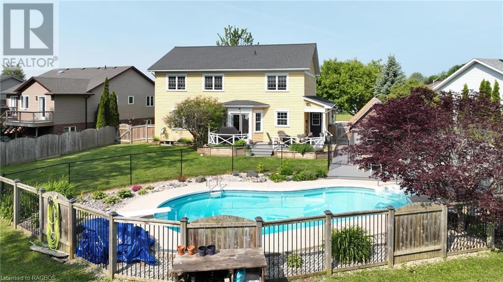Welcome to 433 Murray Blvd! Located in Willow West, a long time sought after subdivision, w/mature trees backing onto the Penetangore River which provides miles of stunning walking trails all through the beautiful town of Kincardine! Just a short stroll to sandy beach, downtown, shopping, schools, & so much more! This is a private & safe, close knit, family friendly neighbourhood w/an updated park just 4 houses down. This traditional, 2 storey, family home has so much to offer; 3327 sq ft (including the basement), a spacious welcoming foyer, a formal dining room, a main floor two piece bath, a bright living room w/cozy gas fireplace, an open concept kitchen w/large island, large pantry & a breakfast nook overlooking an impressive backyard w/deck, an in-ground pool, a pool shed and patio, fully fenced, w/gorgeous landscaping & extensive vegetable gardens all backing onto Penetangore River, providing so much privacy! The 2nd floor is accessed by a wide staircase & includes a primary bedroom w/a walk-in closet, a 5 piece ensuite w/jacuzzi tub, 3 additional bedrooms & a 4 piece bath. The basement offers a large family room, a 'bonus room' (unfinished used as a gym) and loads of storage space. The attached double car garage accesses the mud room area & main floor laundry. Natural gas; furnace, bbq hook up, fireplace, water heater (owned) and pool heater. Brand new gas furnace in Nov 2023. Nothing left to do but to move in and take advantage of all this home has to offer! (id:22211)