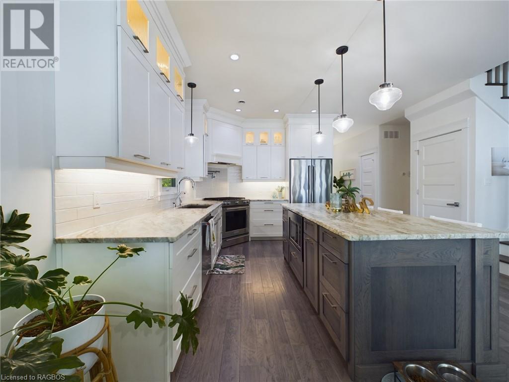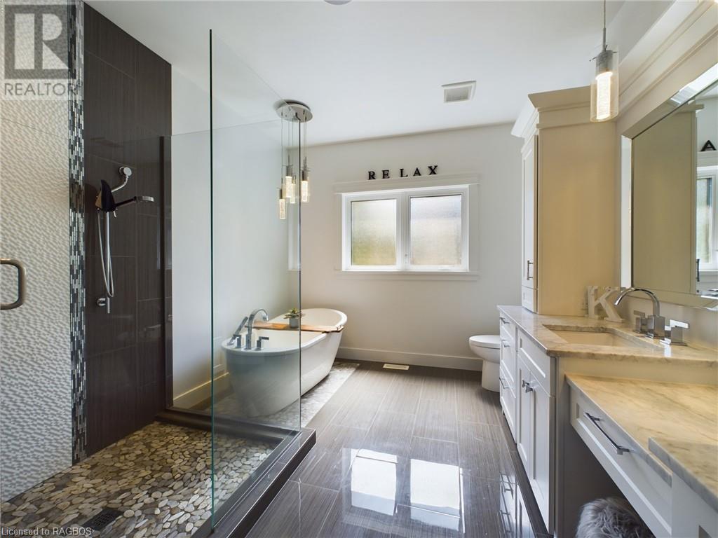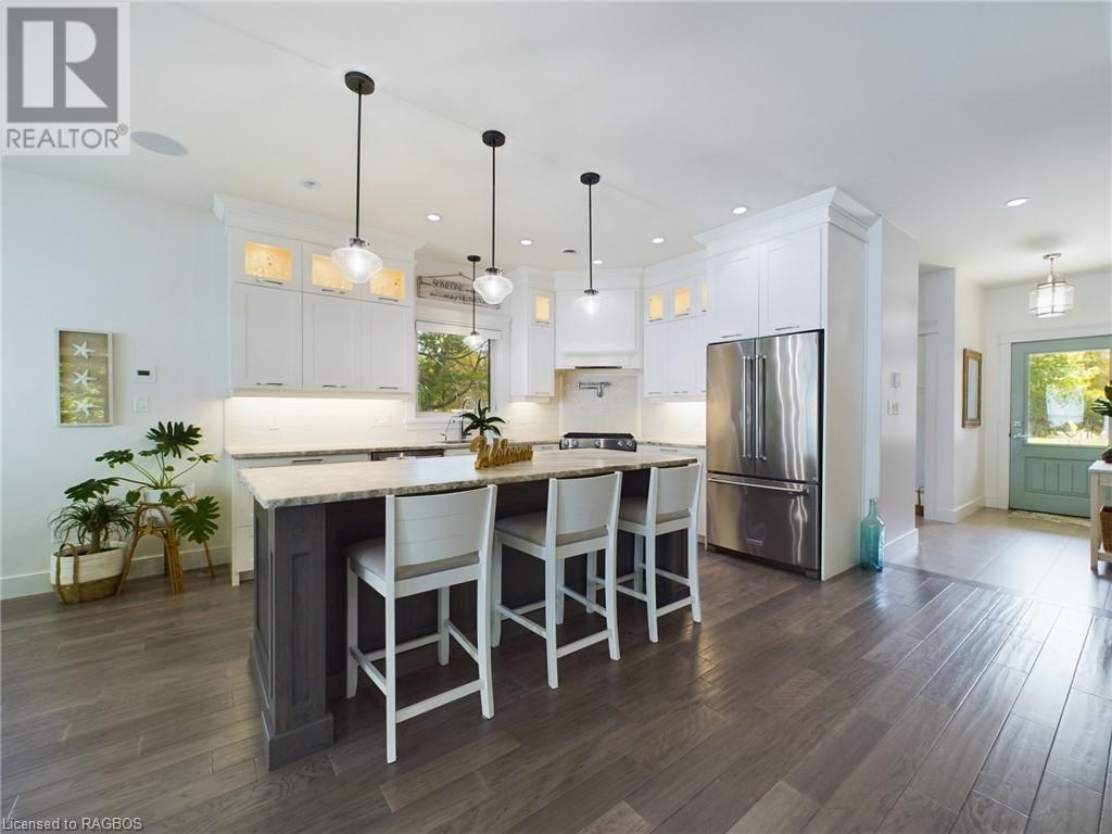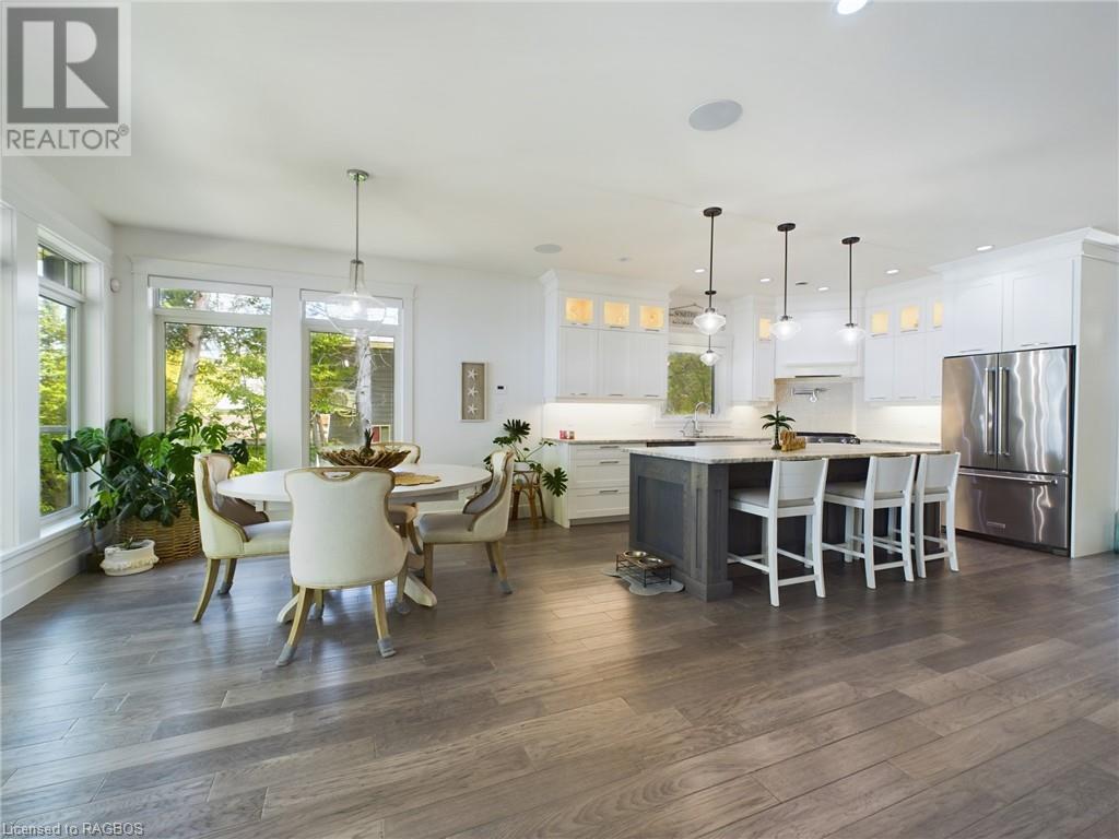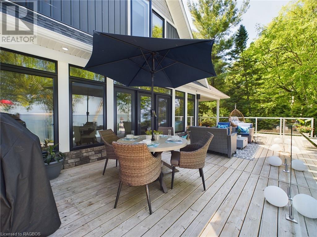 The perfect blend of luxury, lifestyle & of course the spectacular view; welcome to 53 Whipporwill Lane. This is a property you didn't know you were looking for. Conveniently located only a short drive, bike ride on the new KIPP trail system, or a quick trip on the boat/seadoo, just north of Kincardine. The stunning custom designed home offers more than 1800 sf of finished living space on two levels. Enter the main floor and find a charming laundry room, powder room, spacious primary bedroom with large walk-in closet & 4pc ensuite bathroom with custom shower & soaker tub, a magazine worthy kitchen with gas range stove, pot filler, large island & pantry, and an open concept living room/dining room highlighted by the wall of windows offering a panoramic view of Lake Huron. Head upstairs and find two additional spacious bedrooms which could be an office space or reading room, and a full bathroom. The home consists of many upgraded features including leather granite counter tops, engineered hardwood floors, charming light fixtures, upgraded appliances, built-in bluetooth surround sound in every room & much more. The home also has another 1300+sf of partially finished living space in the basement which could be the future location for a large rec room. Walk outside and enjoy the peace & quiet this setting offers, as well the detached 24'x28' heated garage, or spending time on the expansive back patio with loved ones, whether enjoying the morning coffee watching the sail boats go by, soaking in the afternoon sun, or enjoying a romantic dinner watching the sun set over the water. Other highlights include interlocking stone pathways, landscaping, the fire pit area overlooking the lake and of course the access to the sandy beach right outside your back door. Head down to the beach where you find the cherry on top to this oasis; a boathouse which offers an extremely rare opportunity to enjoy the ultimate beach lifestyle.Come experience the vibes! (id:22211)